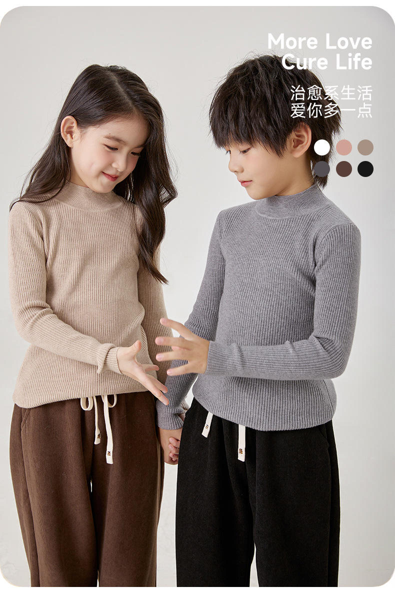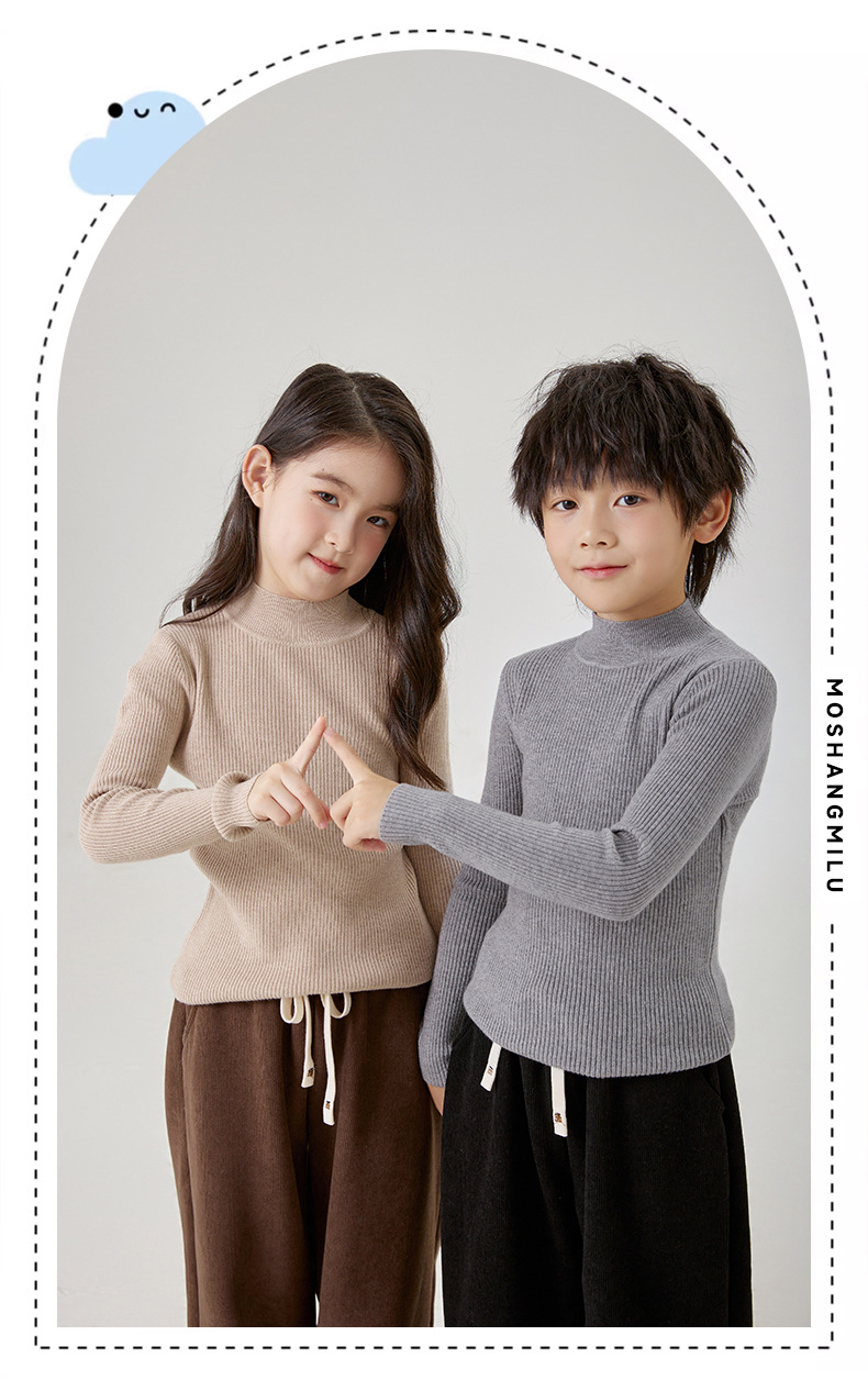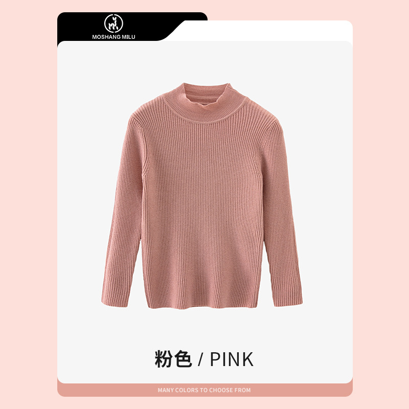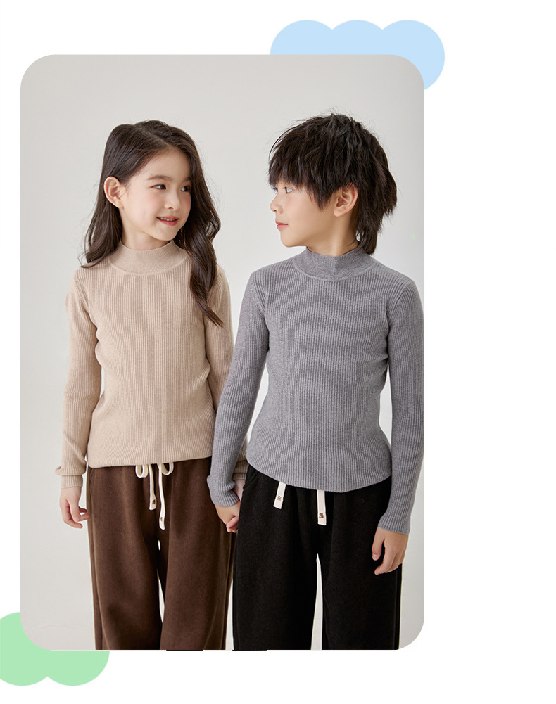 여아 스웨터 2025 가을 겨울 아동용 단색 다용도 니트 스웨터 하프 터틀넥 풀오버 울 베이스 레이어 라운드넥스토어 가기