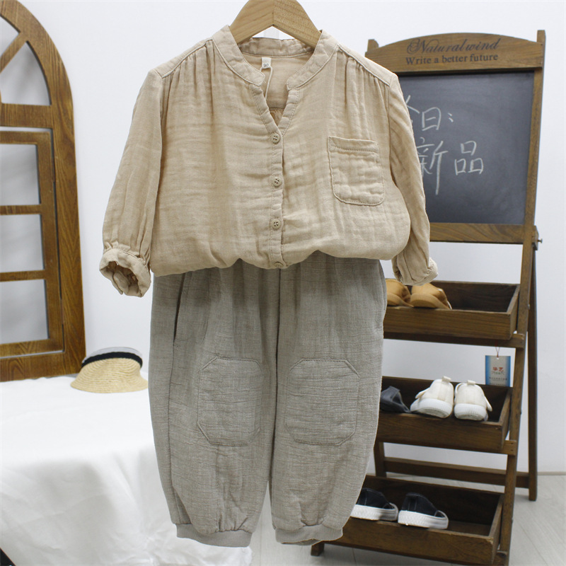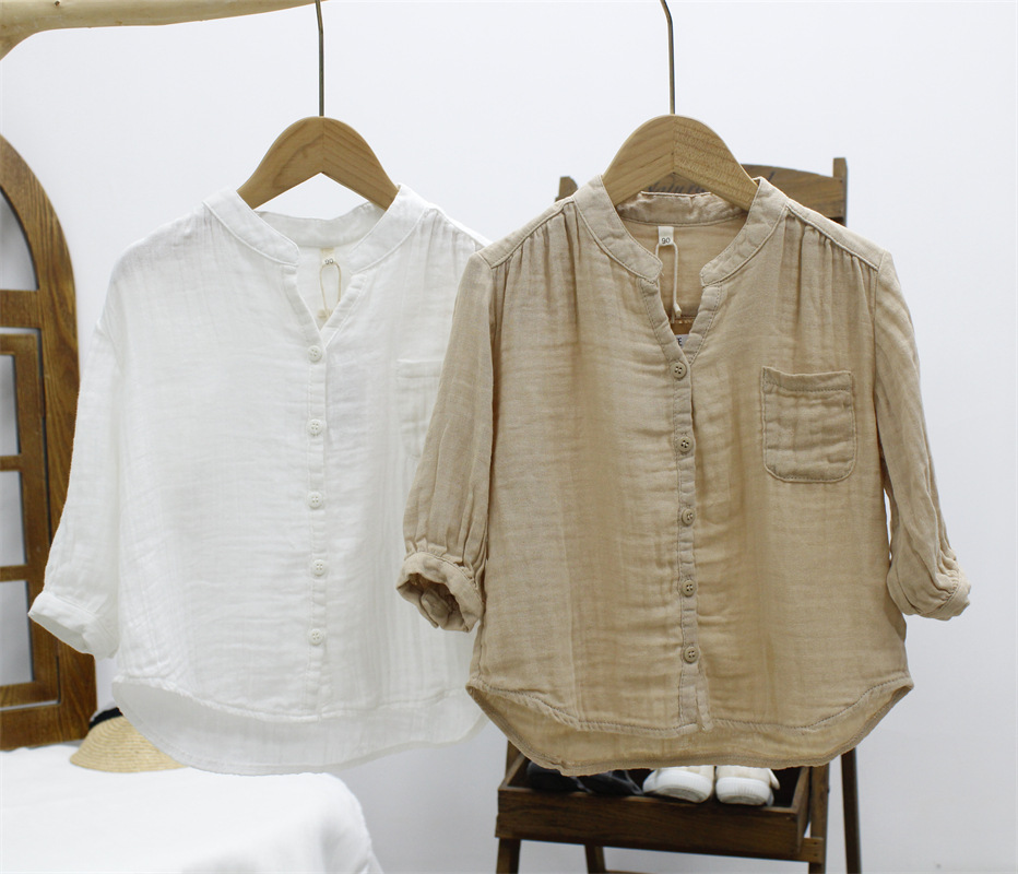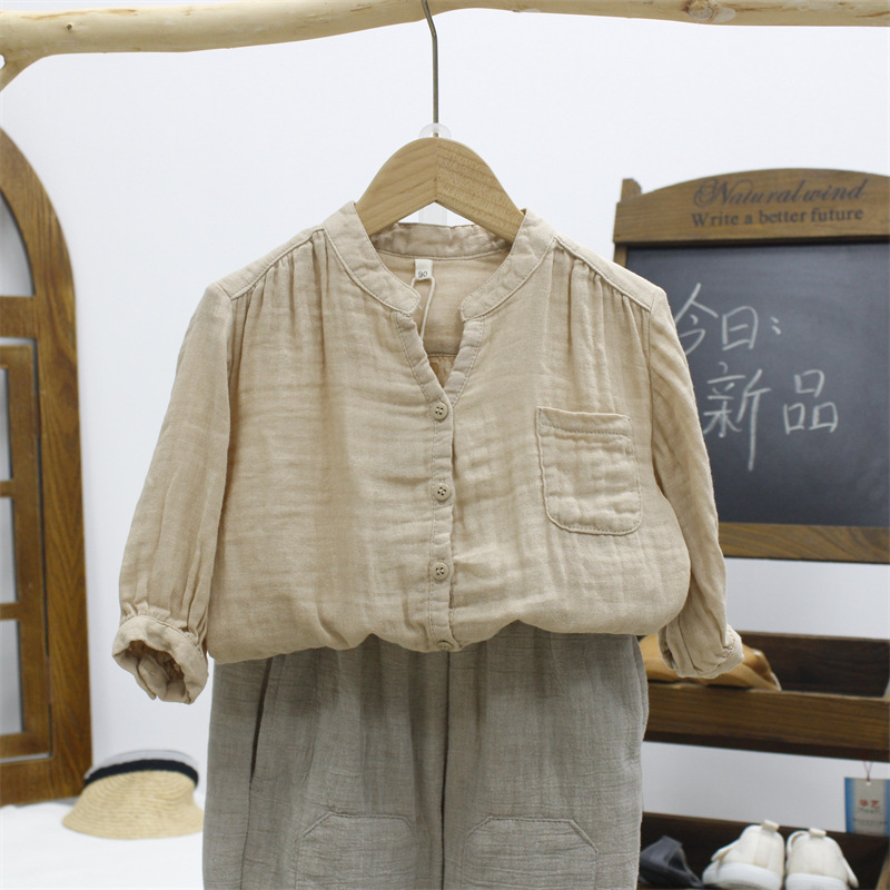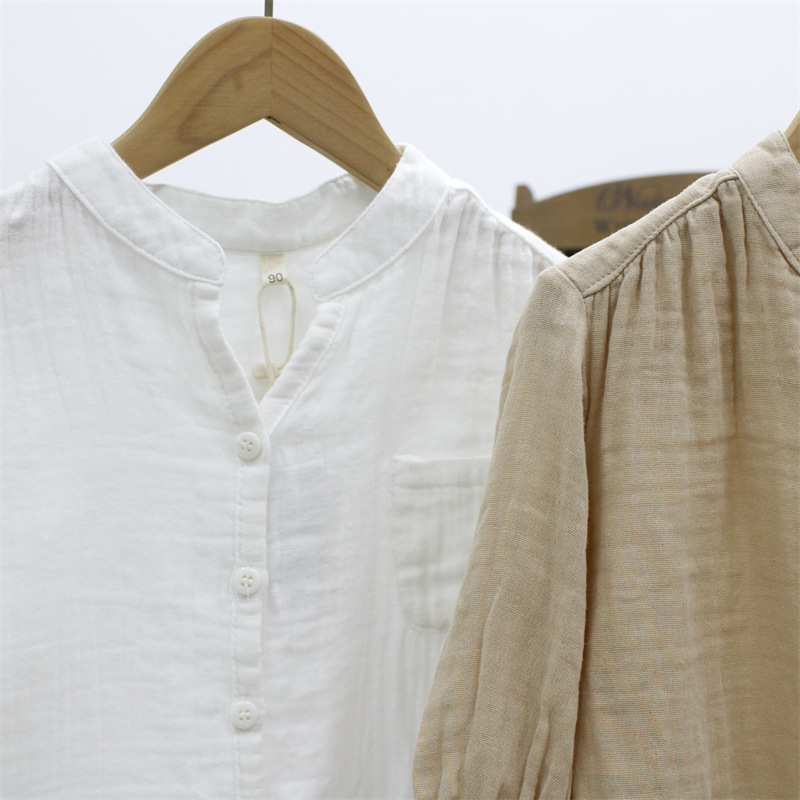 가을 신상품 아동 셔츠 아기 가디건 한국 스타일 이중 거즈 단색 루즈핏 부드럽고 편안한 여아 셔츠