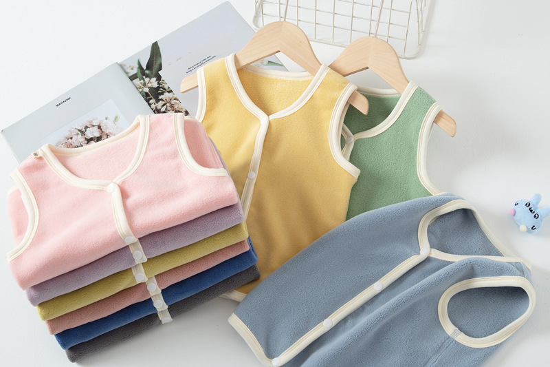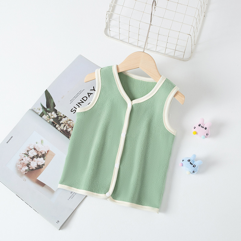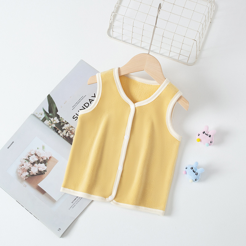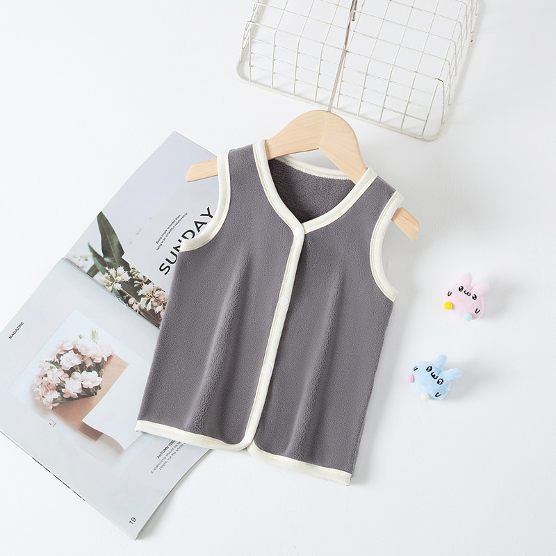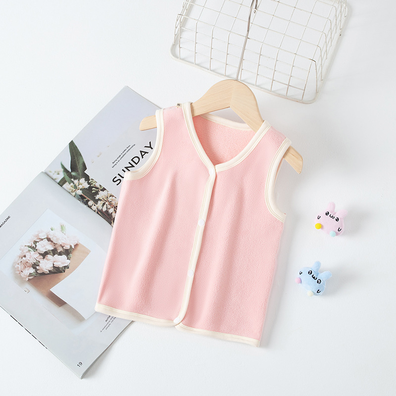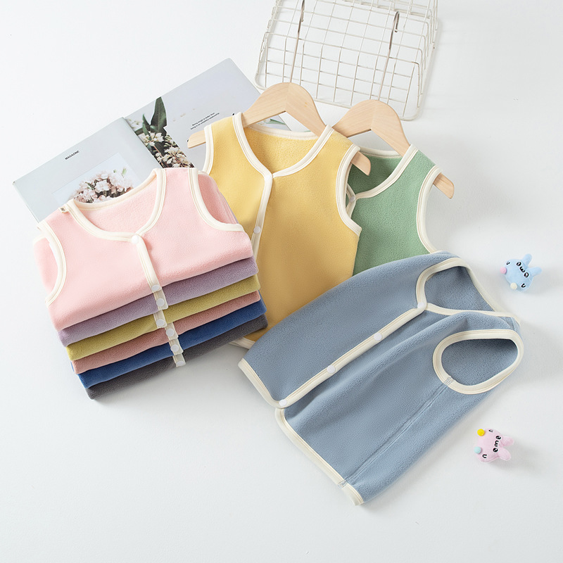 가을과 겨울 새로운 어린이 양복 조끼 뼈없는 카디건 조끼 소년 소녀 양면 벨벳 패딩 따뜻한 아기 민소매 양복 조끼