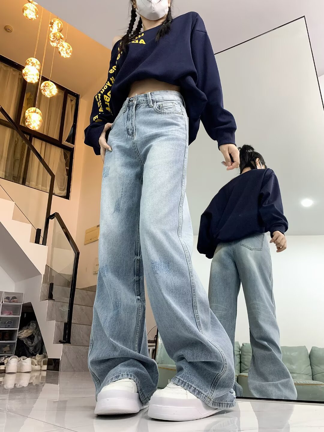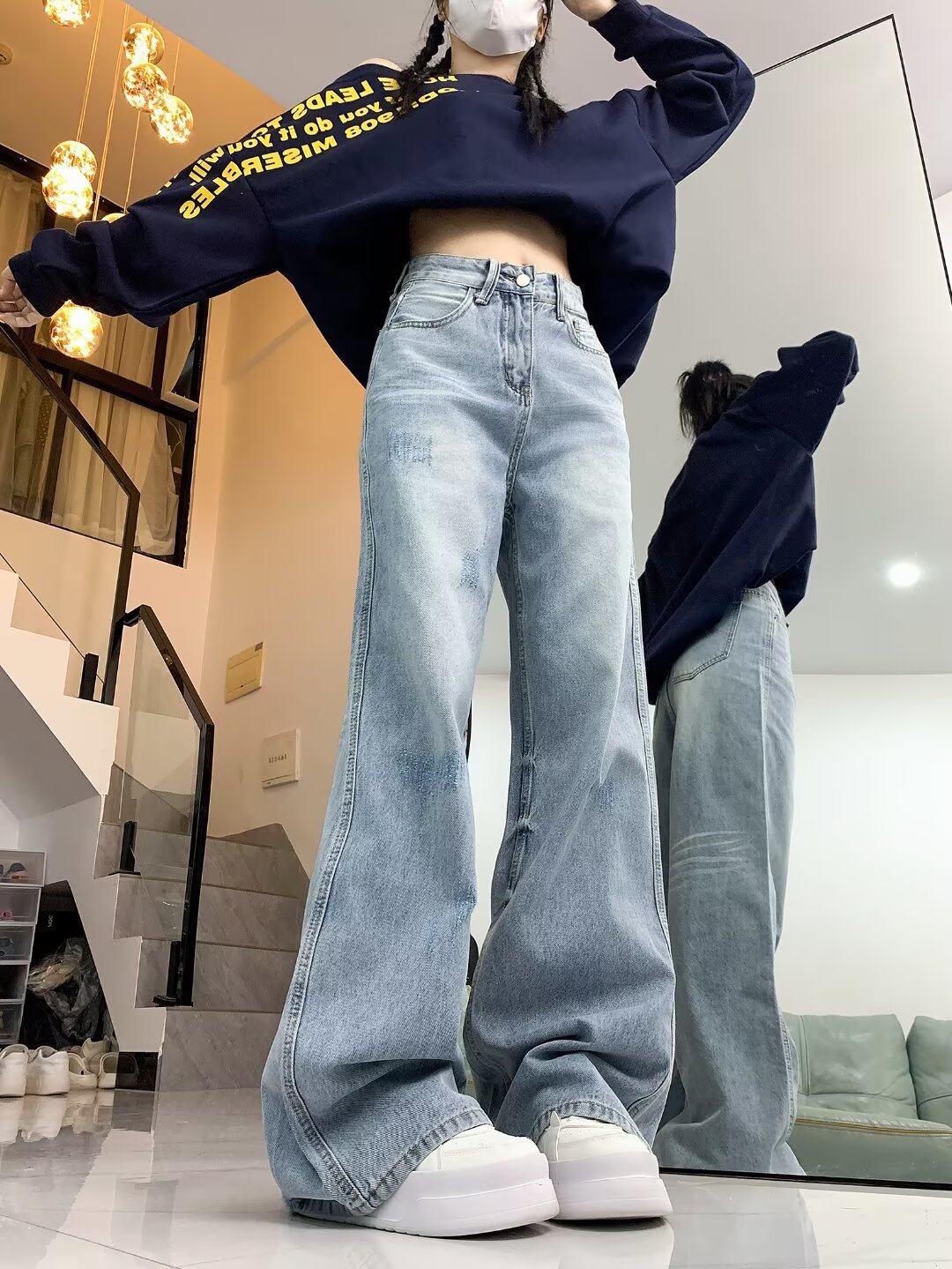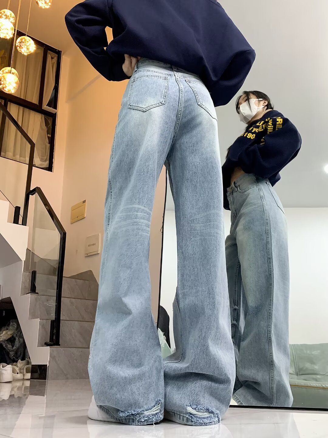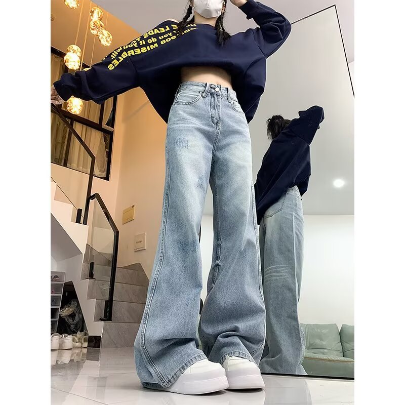 아메리칸 스타일 거리 씻은 오래된 약한 청바지 남성 봄과 가을 스트레이트 느슨한 유럽과 미국의 하이 스트리트 바이브 스타일 긴 바지