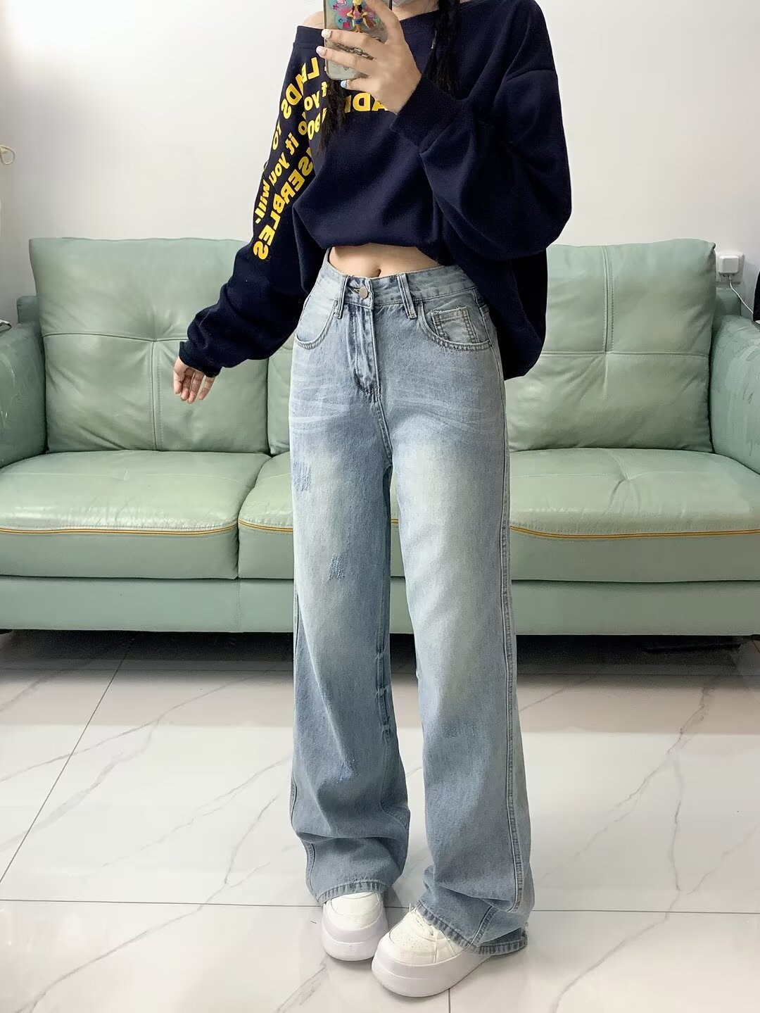 아메리칸 스타일 거리 씻은 오래된 약한 청바지 남성 봄과 가을 스트레이트 느슨한 유럽과 미국의 하이 스트리트 바이브 스타일 긴 바지스토어 가기