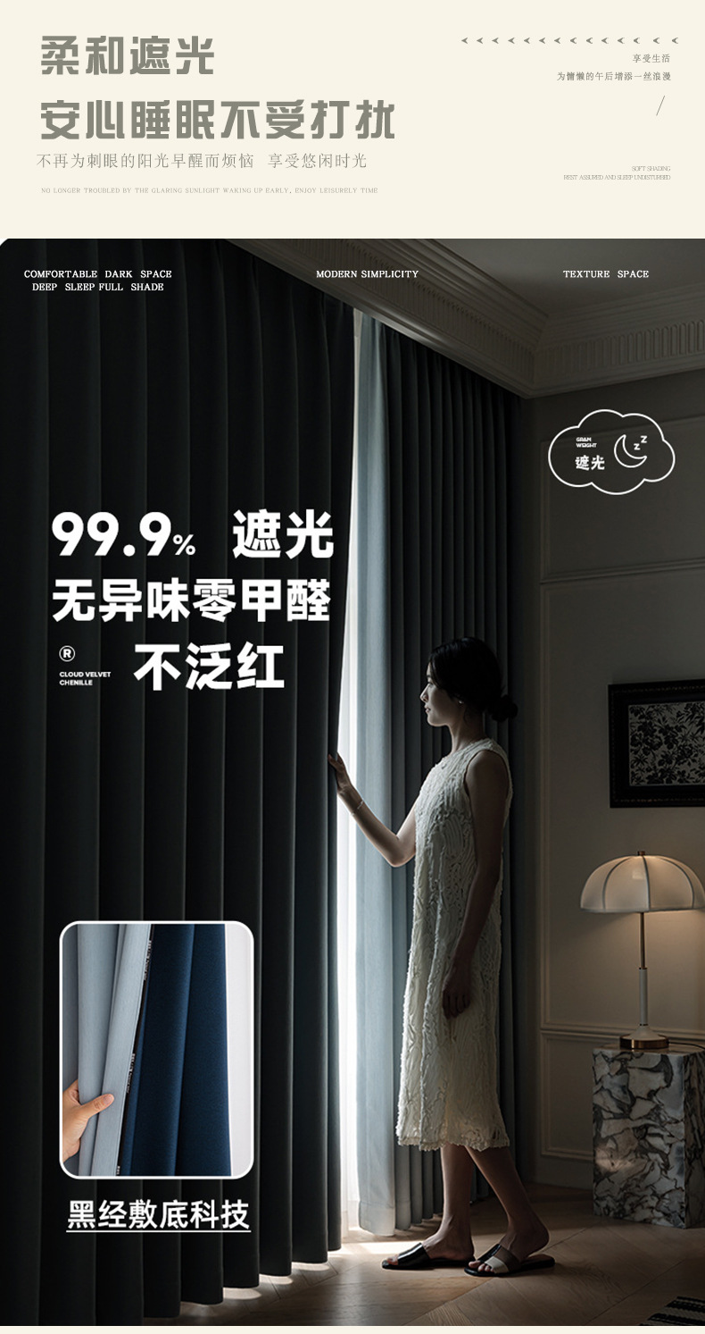 클라우드 센스 체닐 풀 정전 커튼 블랙 골드 레드 물리 정전 마스터 침실 소성 Keqiao 커튼 천스토어 가기