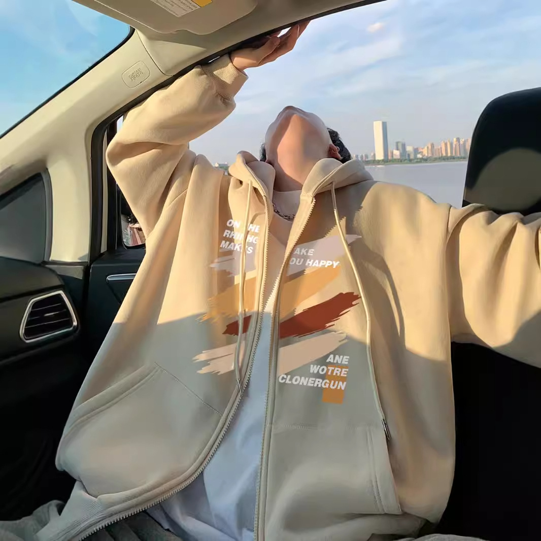 카디건 스웨터 남자의 가을과 겨울 느슨한 캐주얼 긴 소매 미국 스타일 십대 소년 커플 그레이 후드 재킷