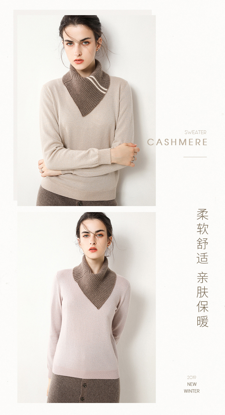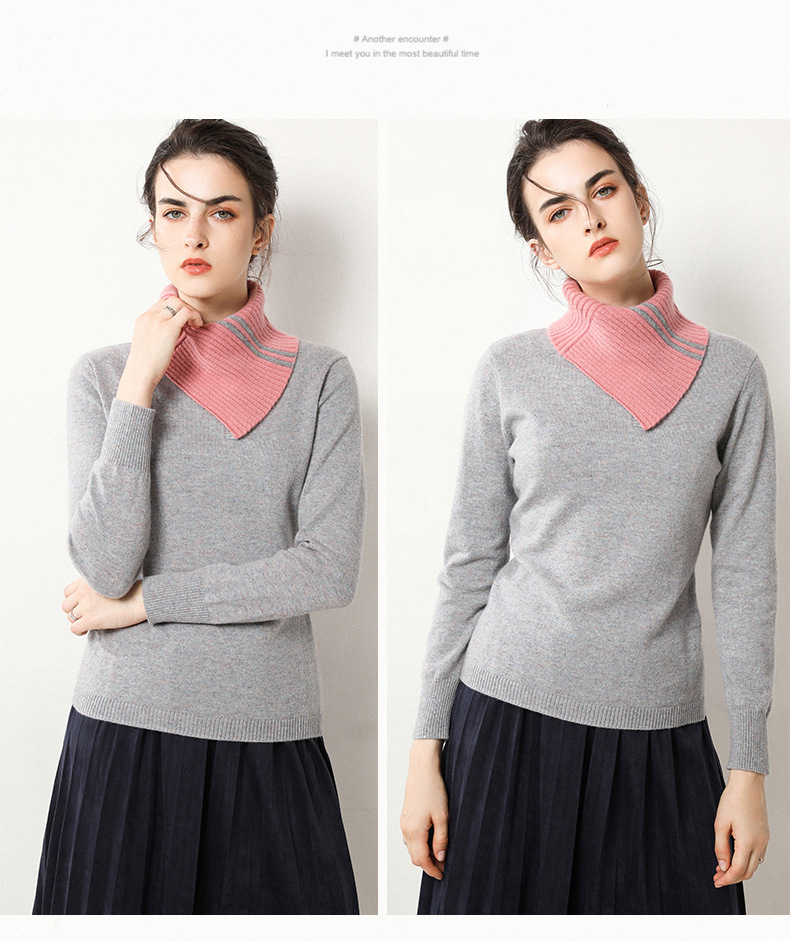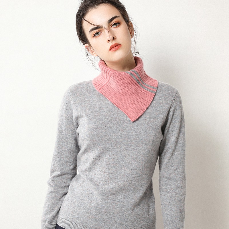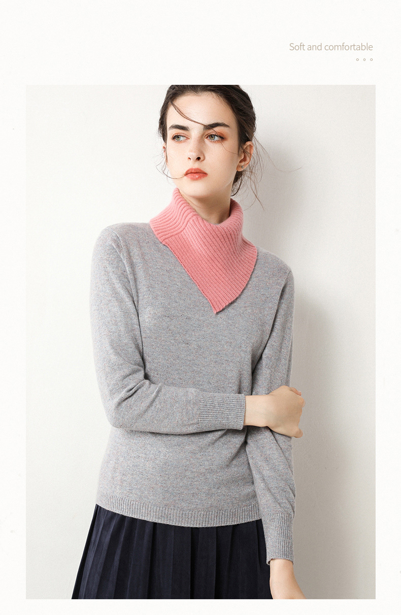 여성의 겨울 목 보호 작은 2024 새로운 풀오버 라이딩 따뜻한 삼각형 캐시미어 니트 자궁 경부 스폰디 로시스 목 소매