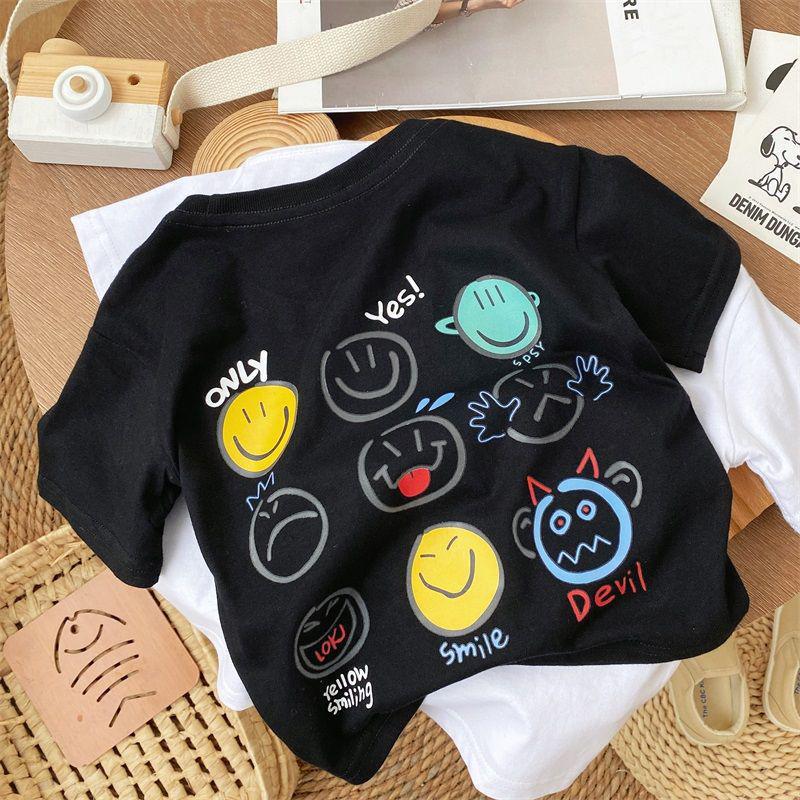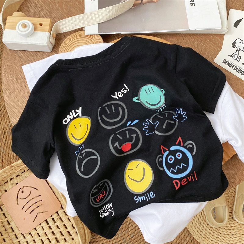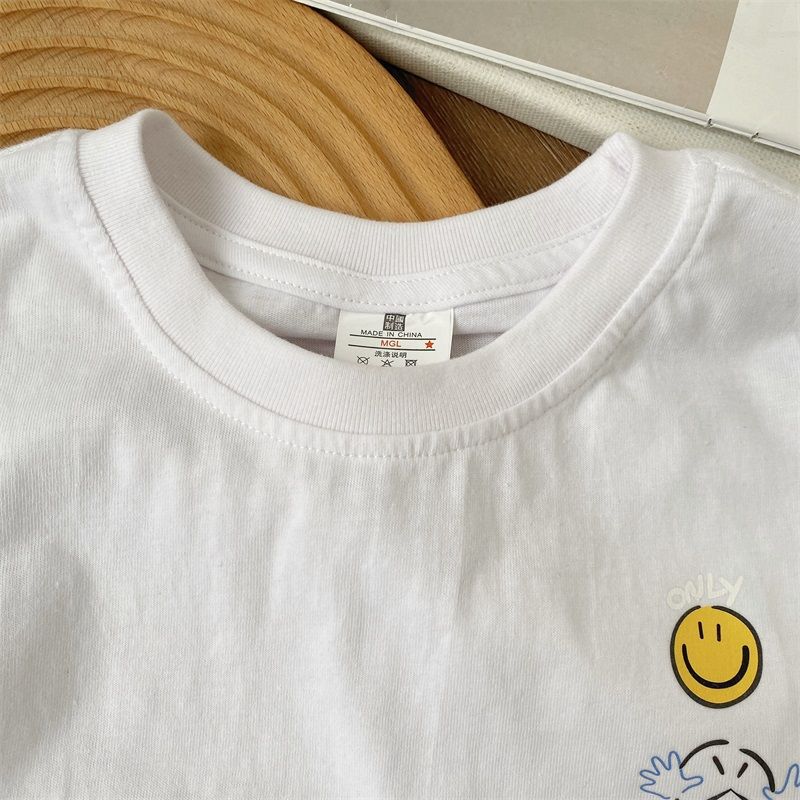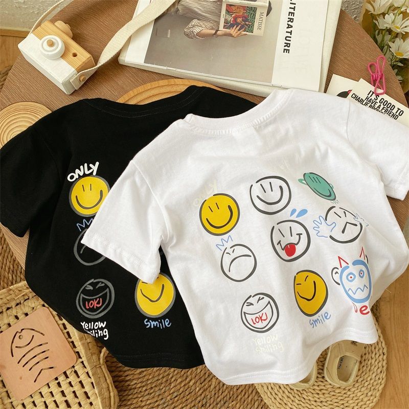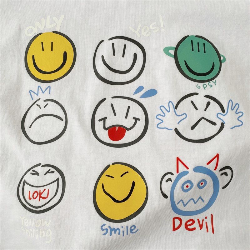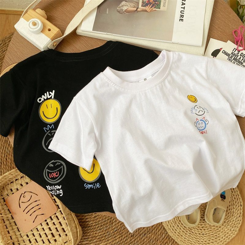 아동복 여름 어린이 새 만화 스마일리 순수 반팔 느슨한 스타일 티셔츠 소년 소녀 아기의 최고 트렌디 T