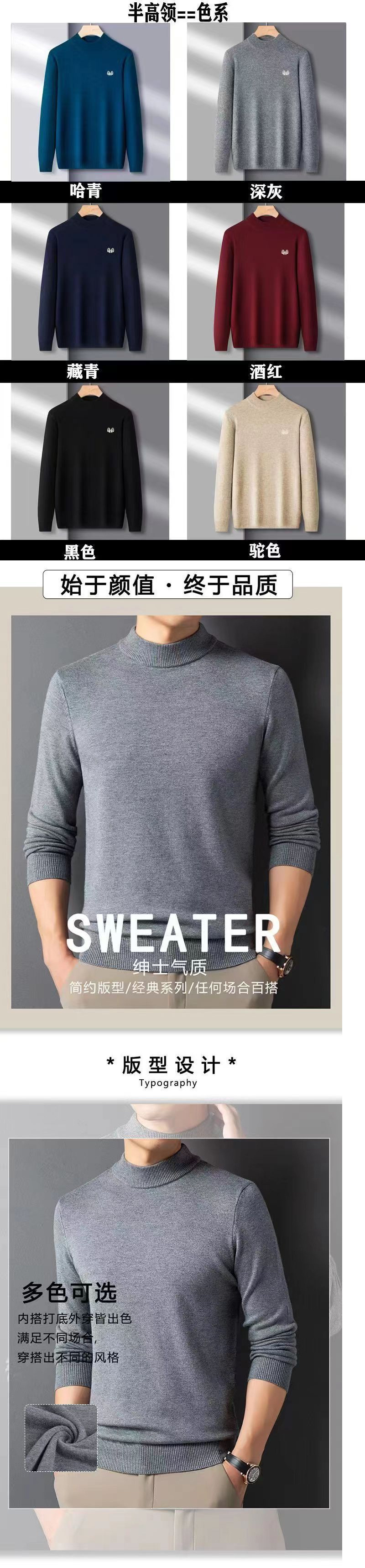 남성 세미 하이 칼라 스웨터 패딩 겨울 의류 중년 따뜻한 니트 라운드 핫 도매 크로스 보더 핫 제조 업체스토어 가기