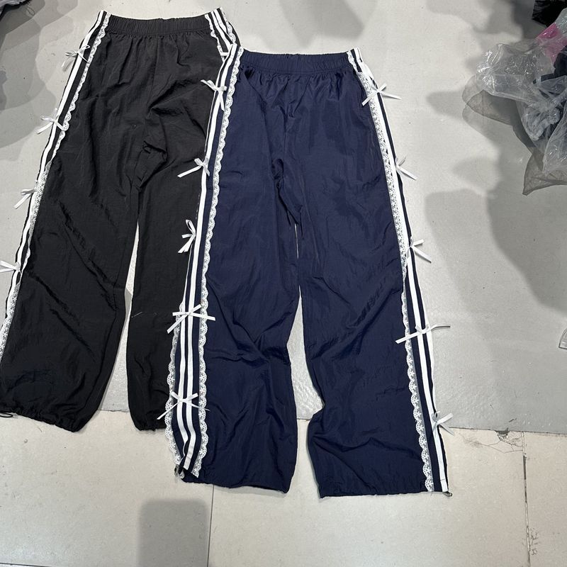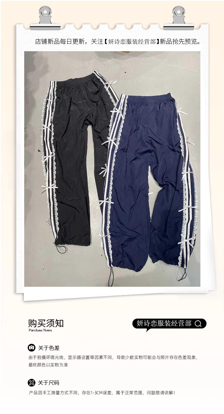 가을 세련된 허리 레이스 화이트 트림 나비 엔드 발 운동복 캐주얼 바지 슬리밍 스포츠 바지