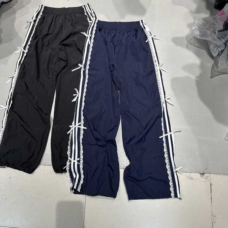 가을 세련된 허리 레이스 화이트 트림 나비 엔드 발 운동복 캐주얼 바지 슬리밍 스포츠 바지스토어 가기