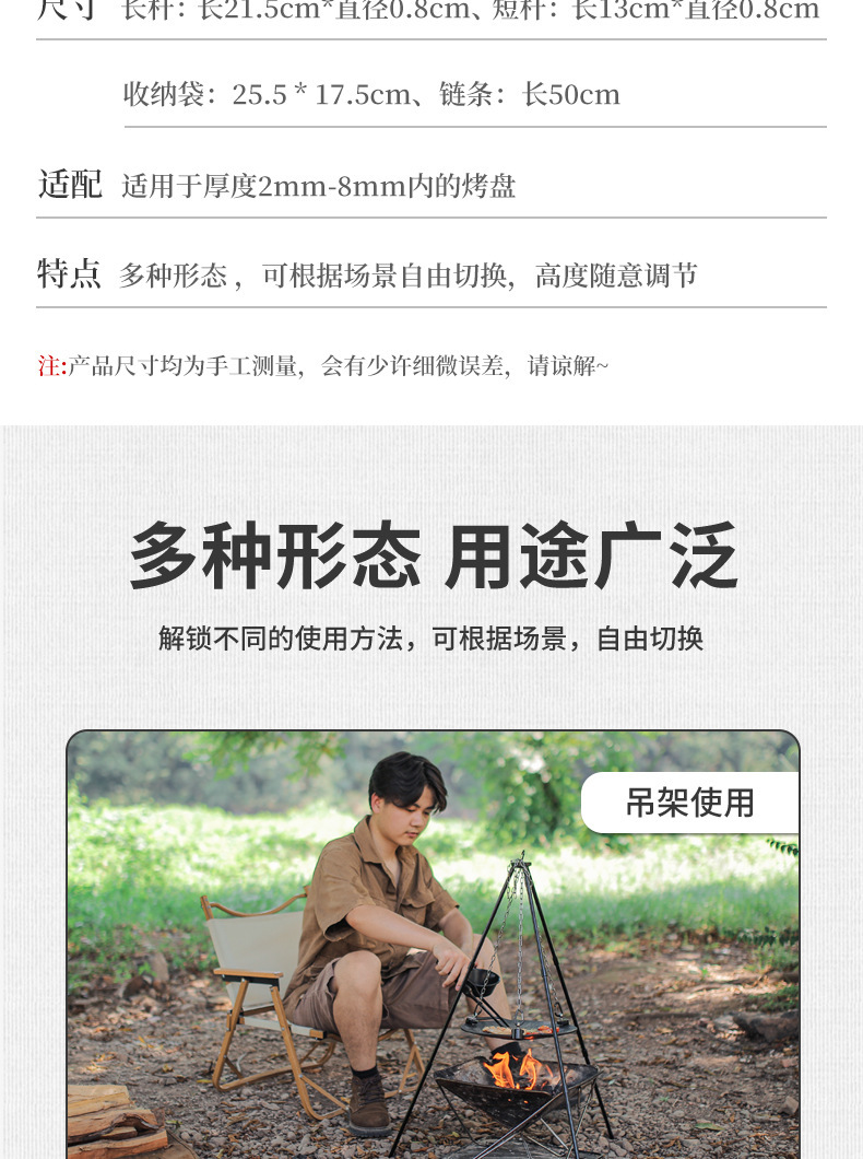 야외 알루미늄 합금 그릴 팬 포트 랙 걸이 삼각형 브래킷 휴대용 캠핑 다기능 조정 가능한 그릴 플레이트 브래킷