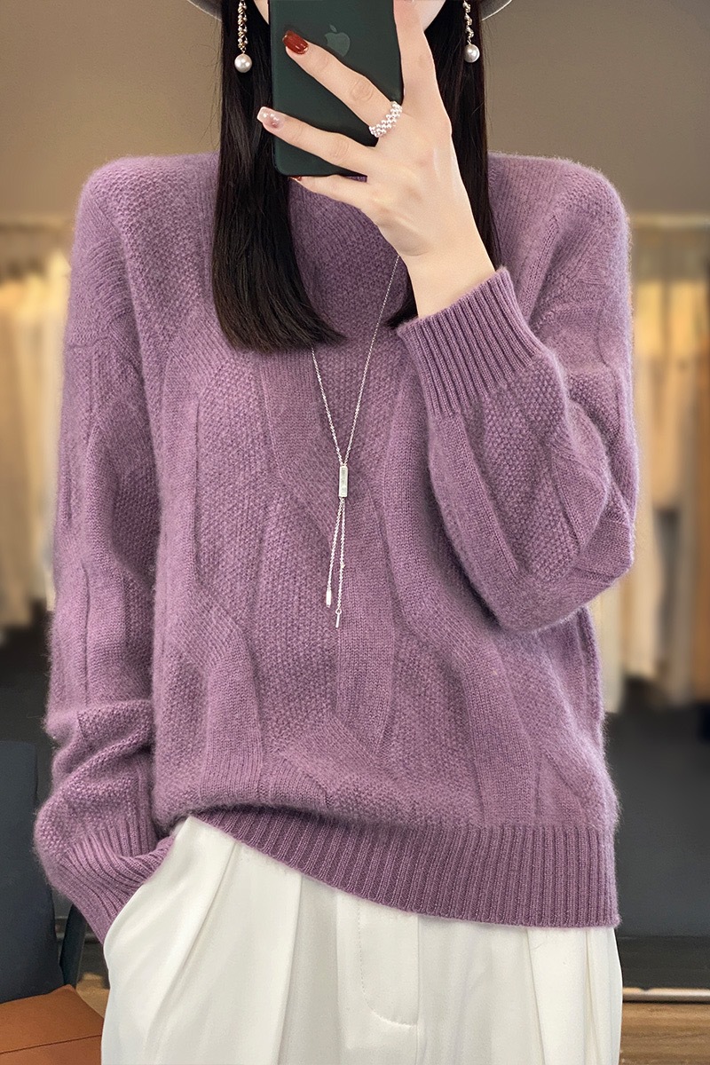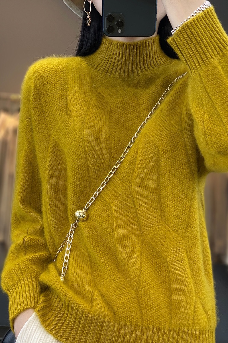 가을과 겨울을위한 두꺼운 트위스트 100 양모 스웨터 여성 모의 터틀넥 루즈베이스 니트 긴팔 스웨터스토어 가기