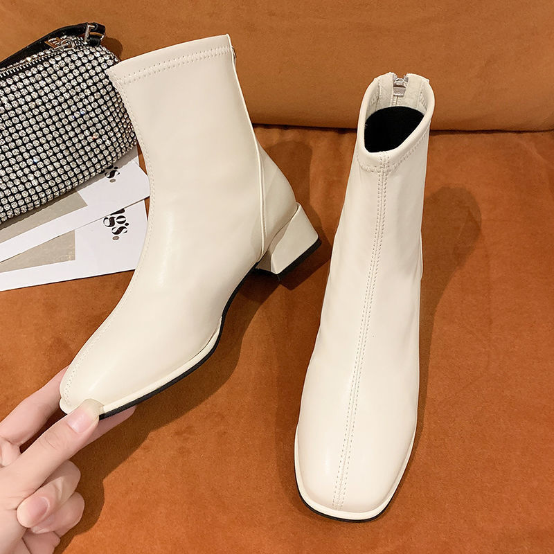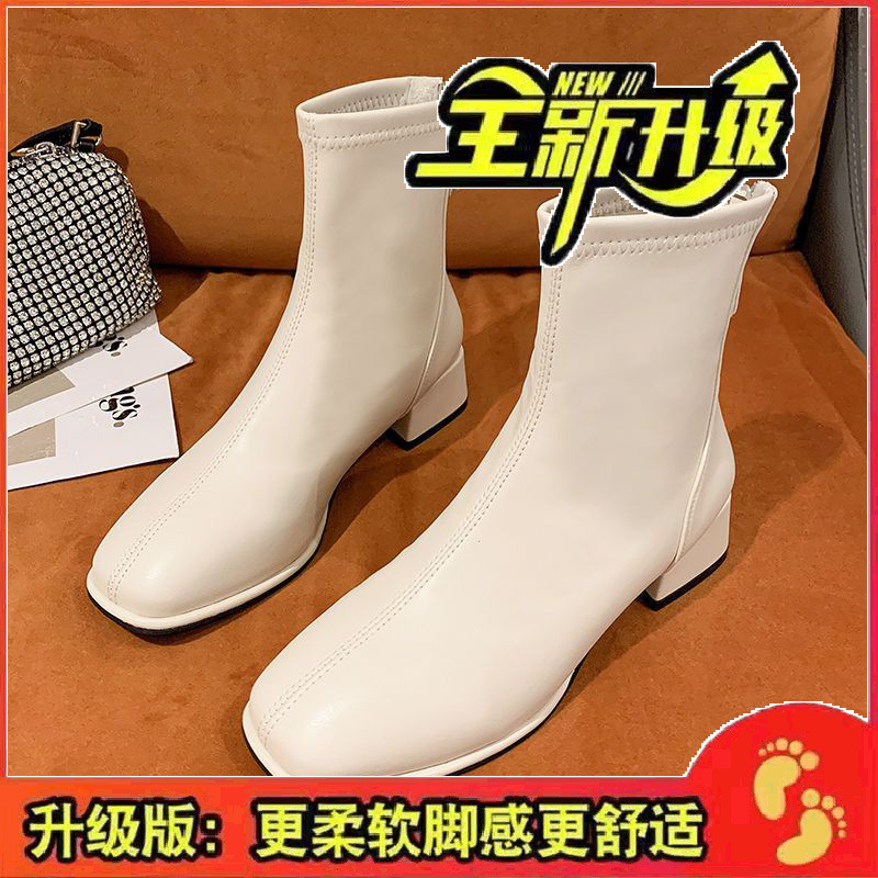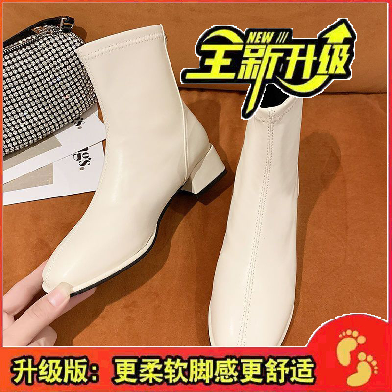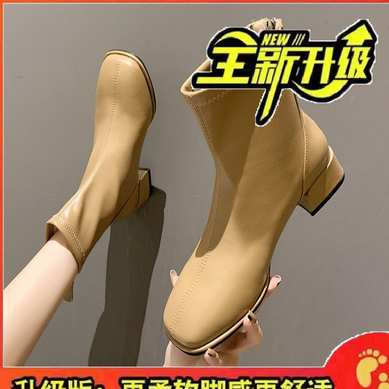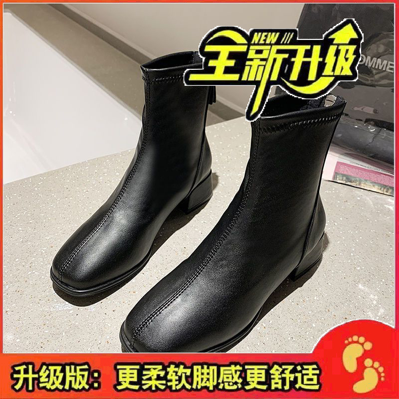 소프트 가죽 미드 힐 세련된 쇼트 부츠 여성의 2024 새로운 가을 및 겨울 올 매치 마틴 패션 세련된 두꺼운 힐 얇은 부츠스토어 가기