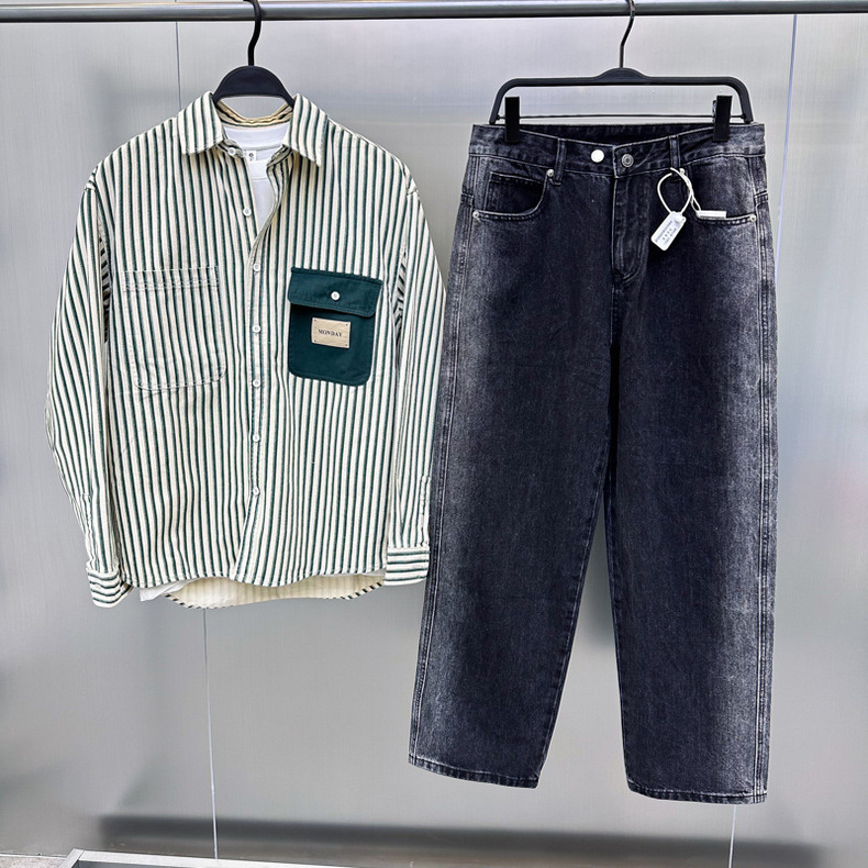 남자 가을 그라디언트 스트레이트 팬츠 청바지 편지 세탁 올드 데님 남자 바지 한국 유행 BWHAE3199스토어 가기