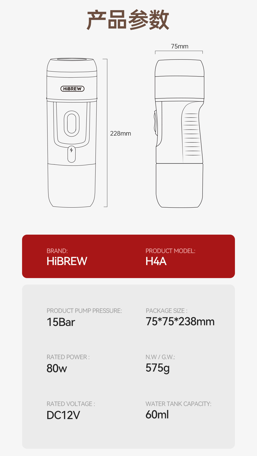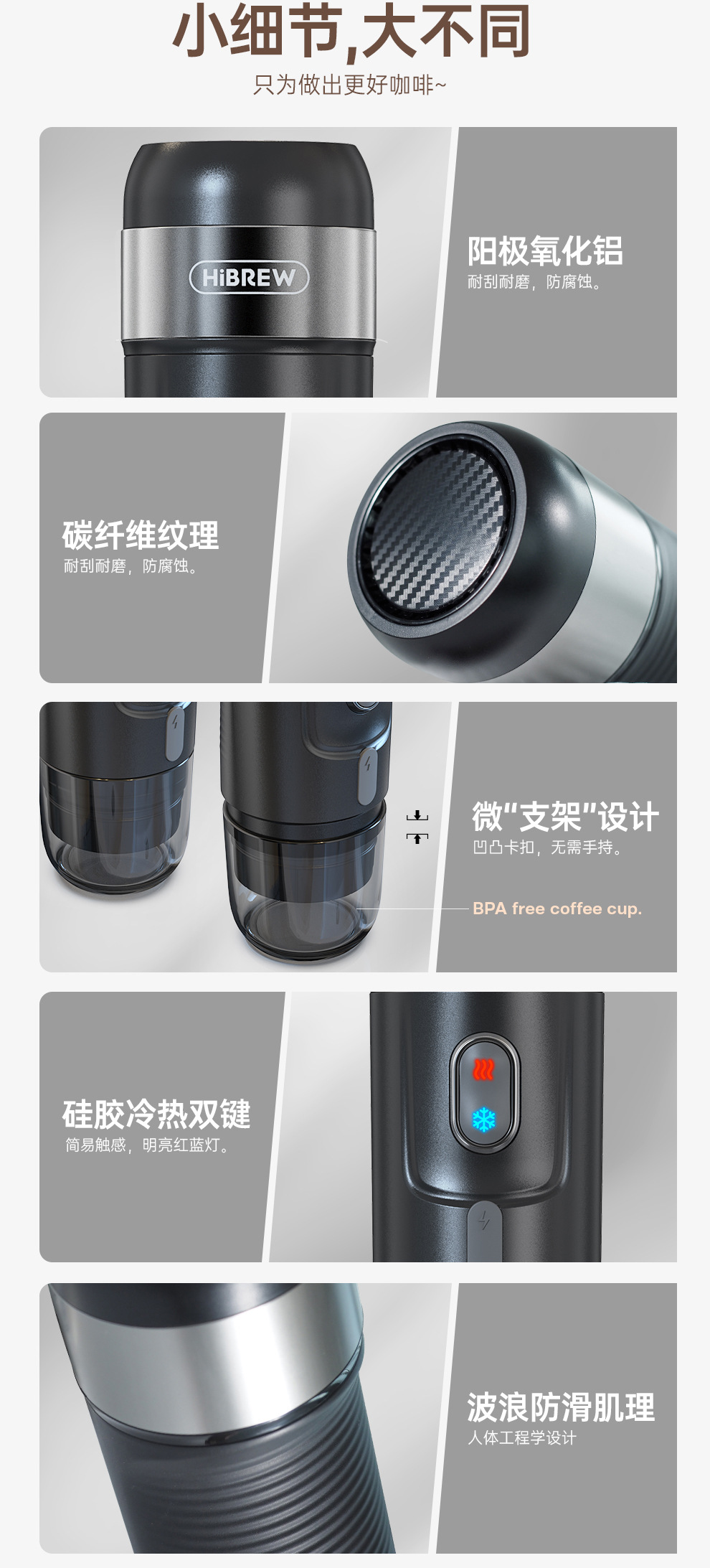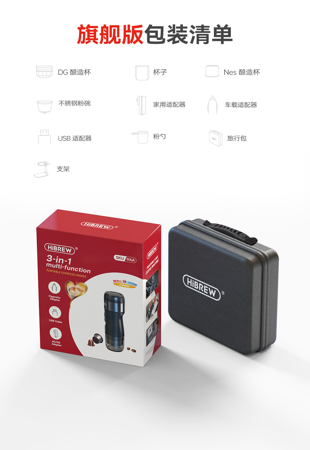 HiBREW Caxicui 휴대용 커피 머신 이탈리아 뜨겁고 차가운 추출 가정용 자동차 야외 캠핑 소형