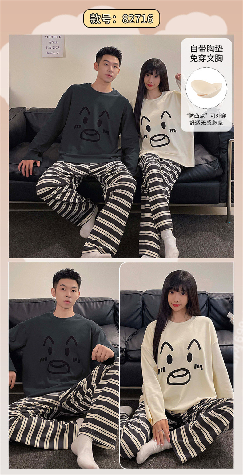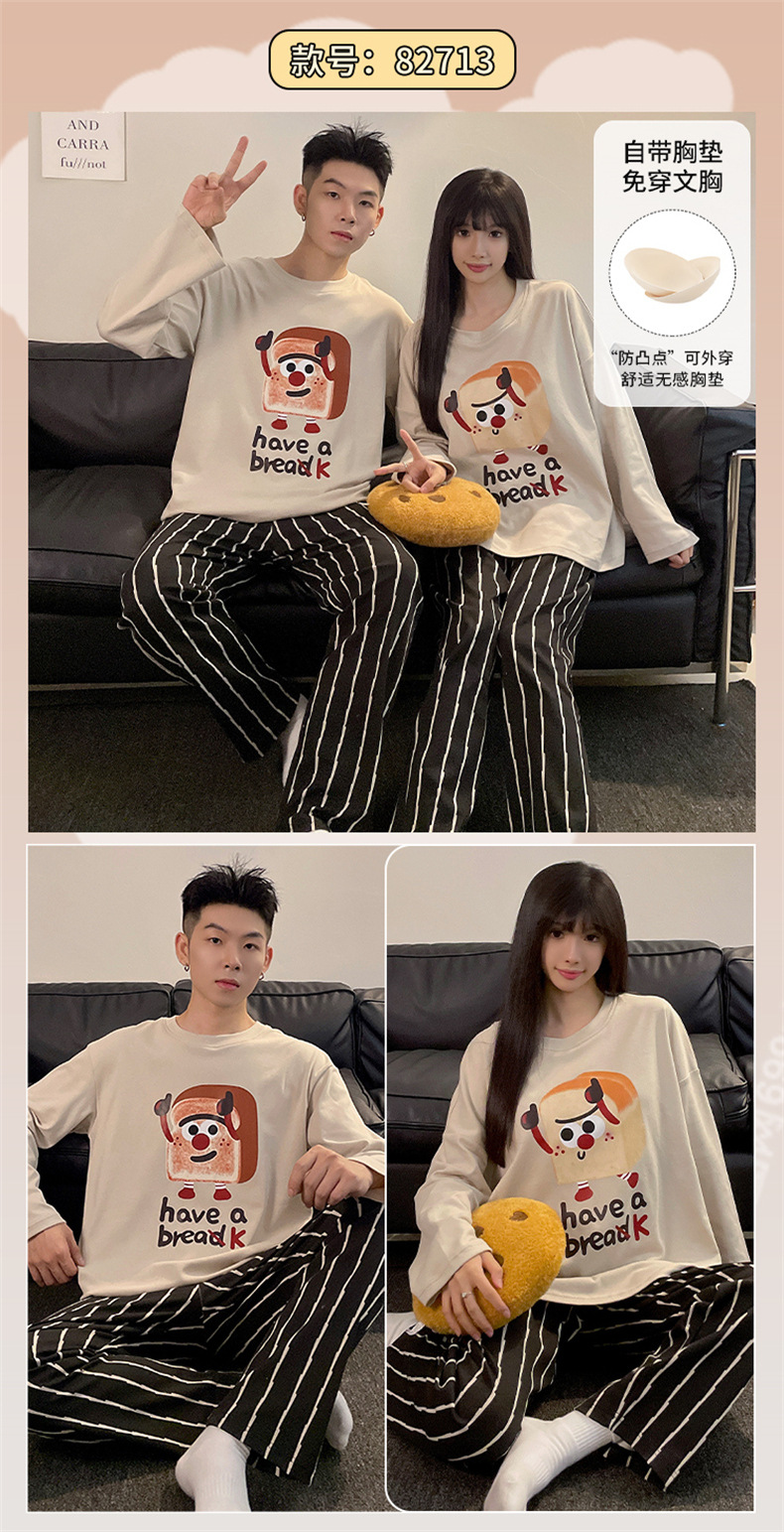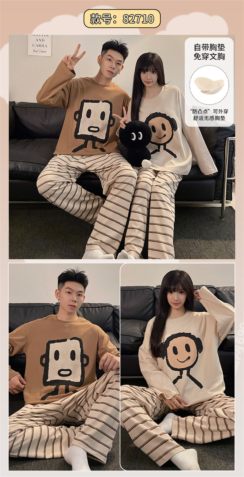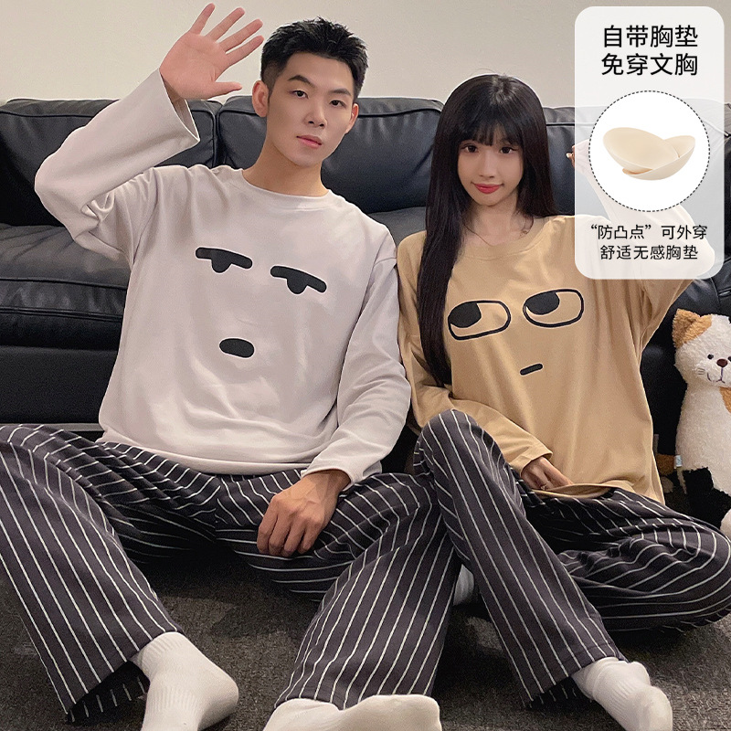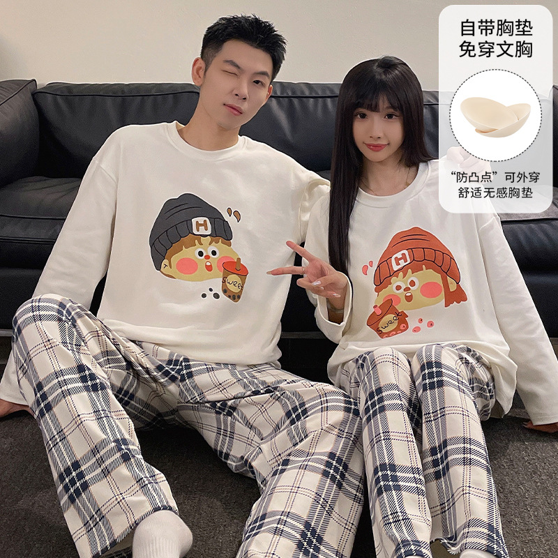 여자 커플 가슴 패드와 잠옷 가을과 겨울 한국식 긴팔 캐주얼 남성 만화 겉옷 홈 세트스토어 가기