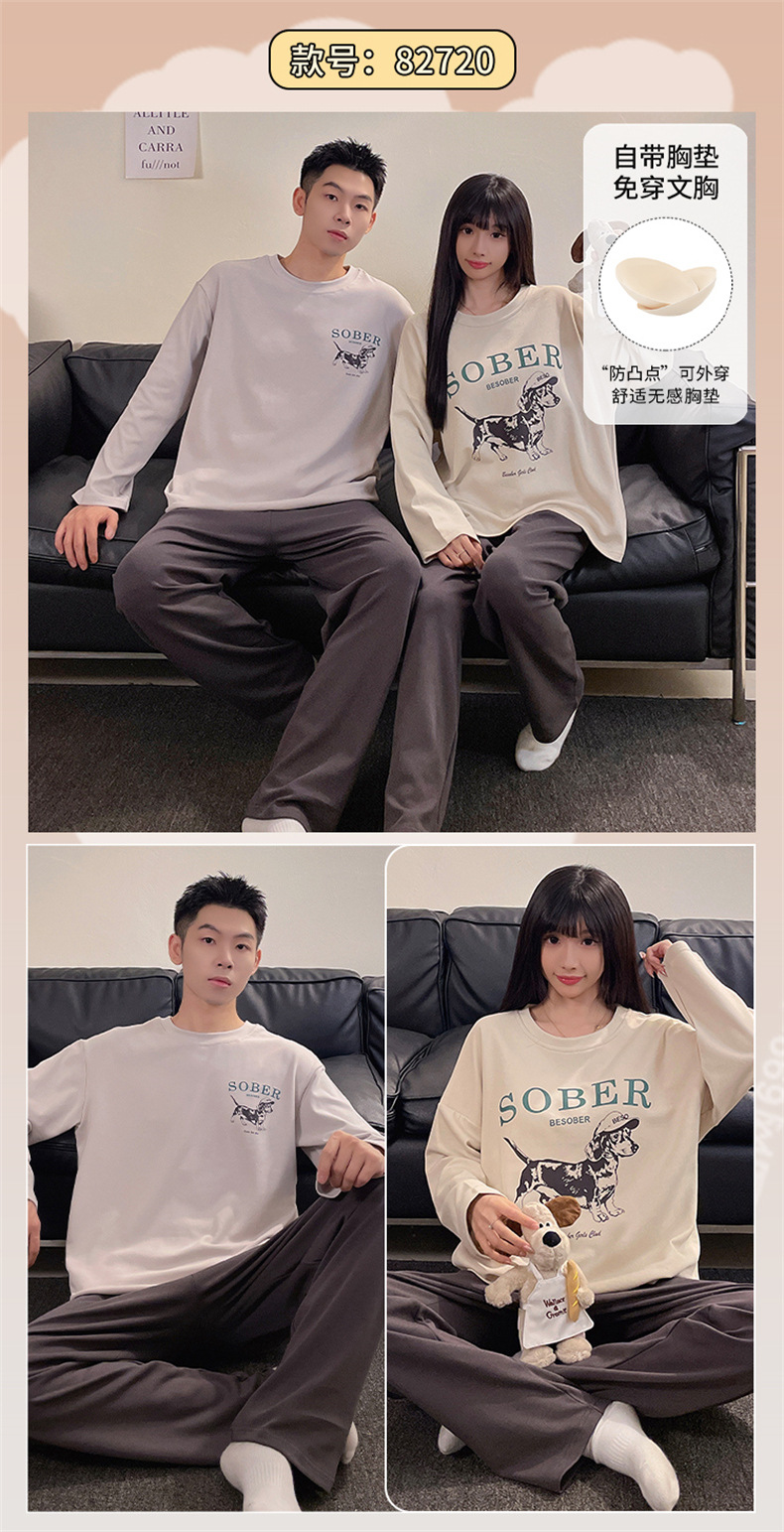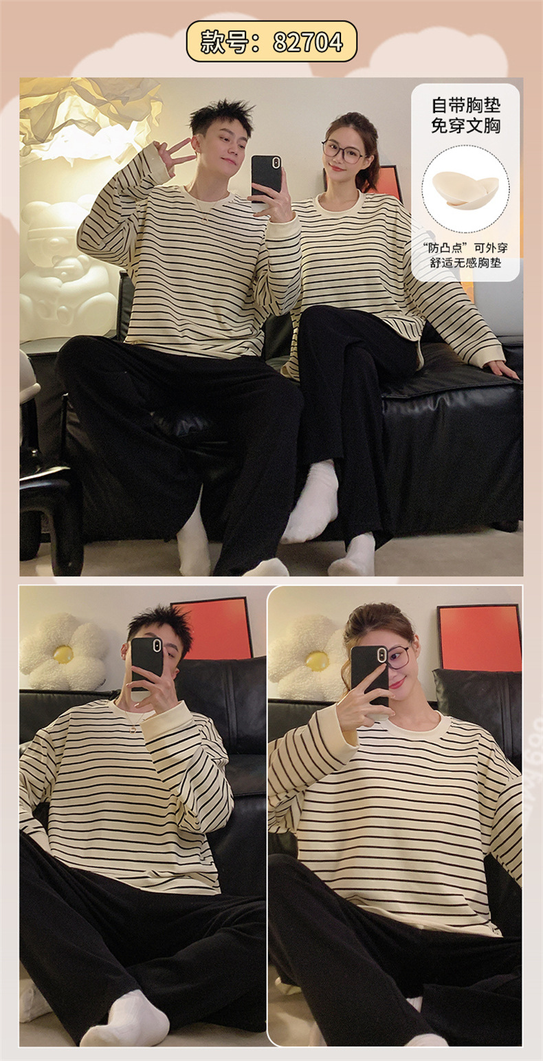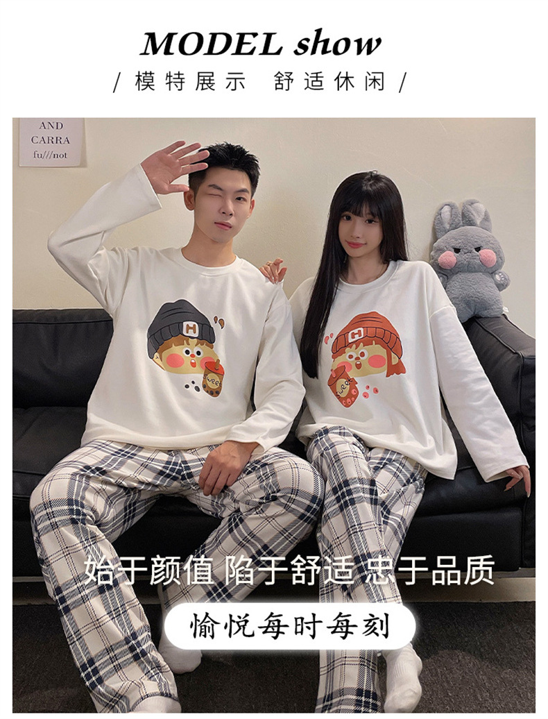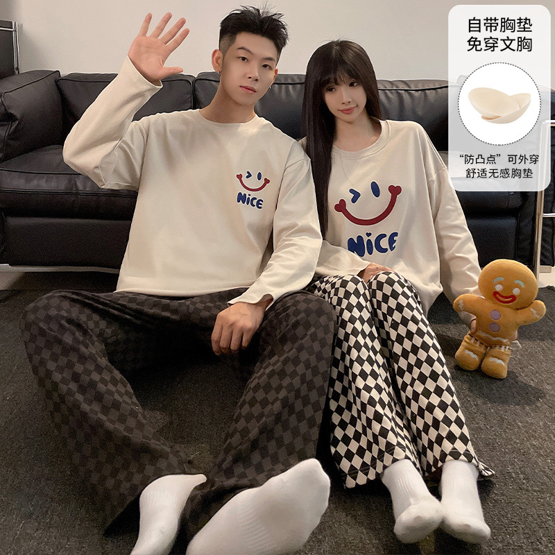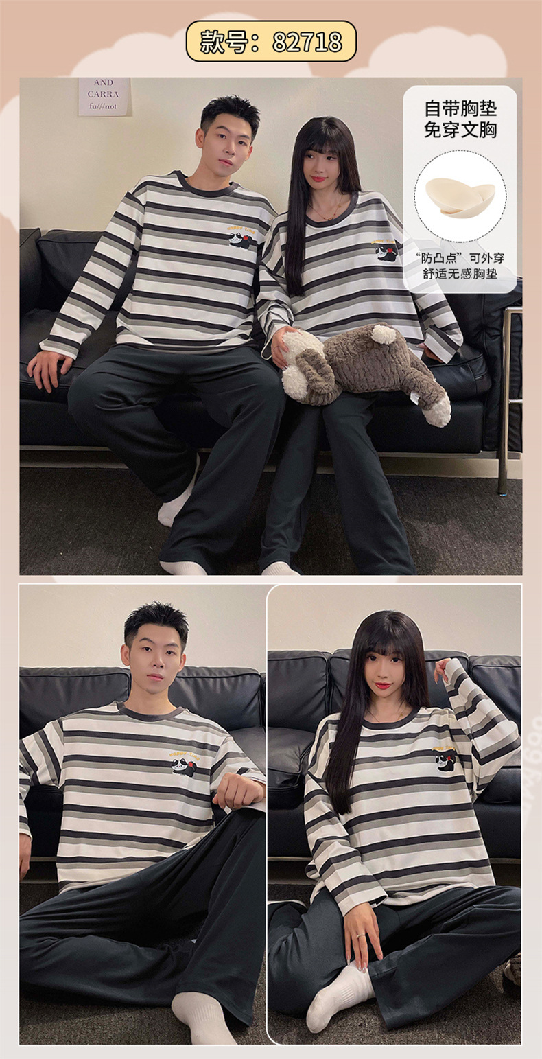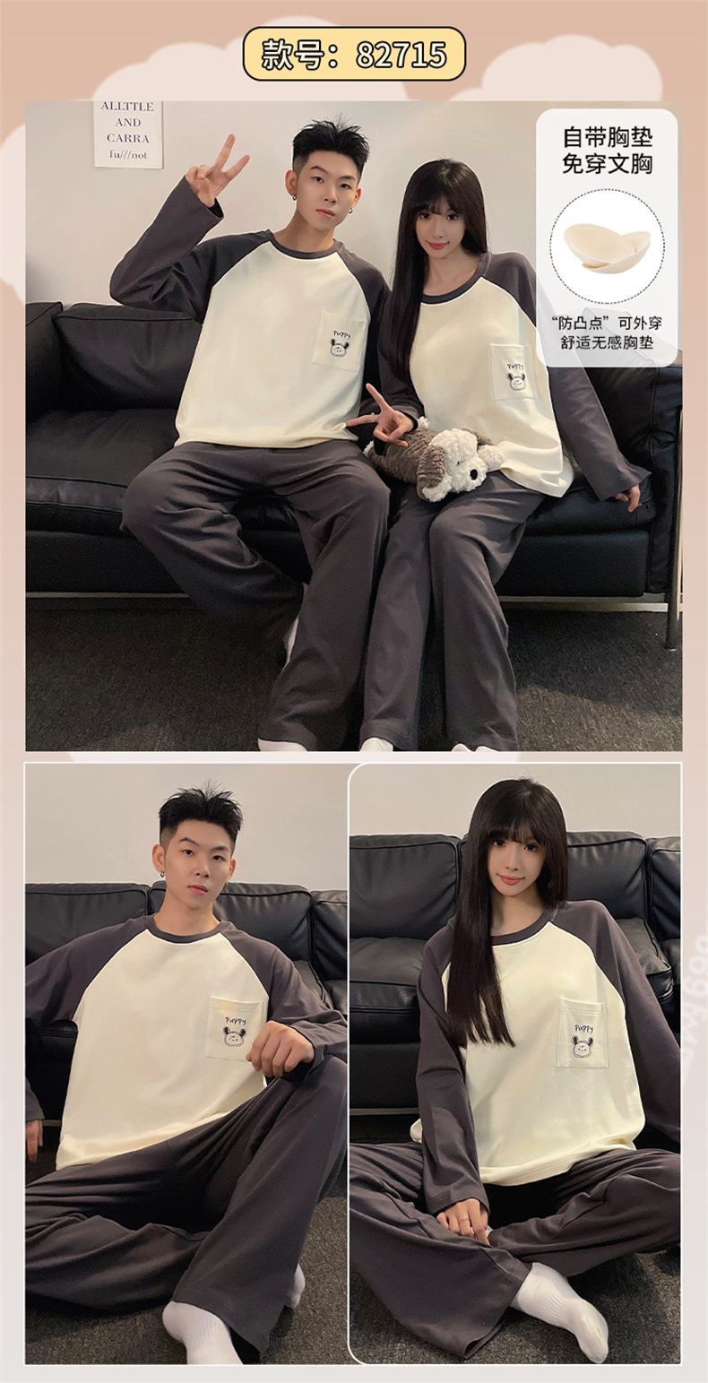 여자 커플 가슴 패드와 잠옷 가을과 겨울 한국식 긴팔 캐주얼 남성 만화 겉옷 홈 세트스토어 가기