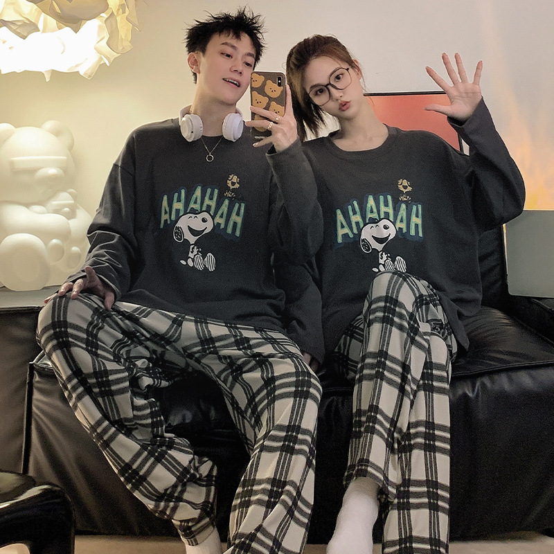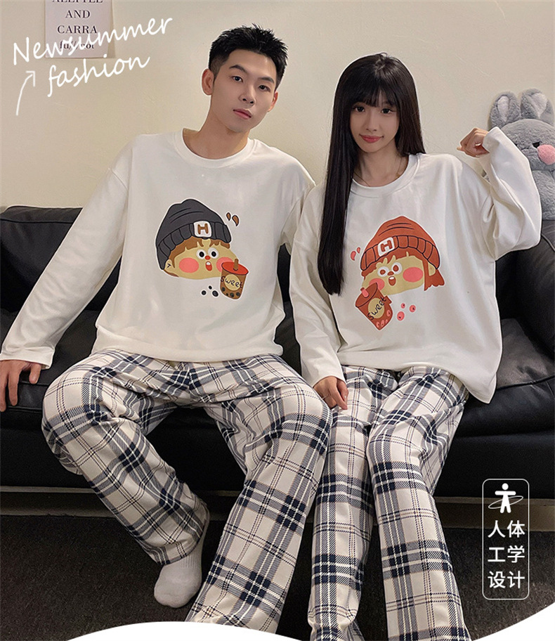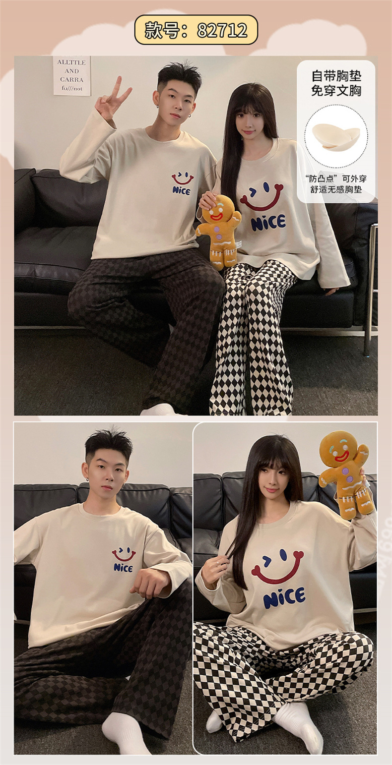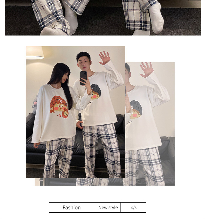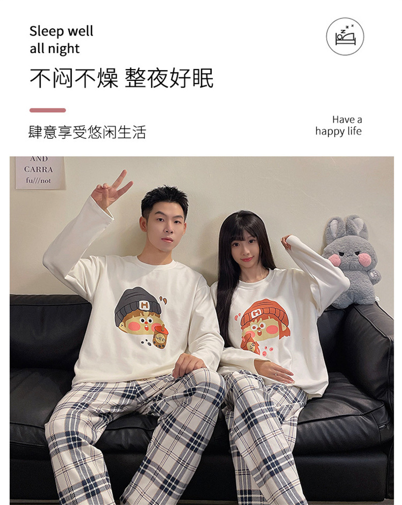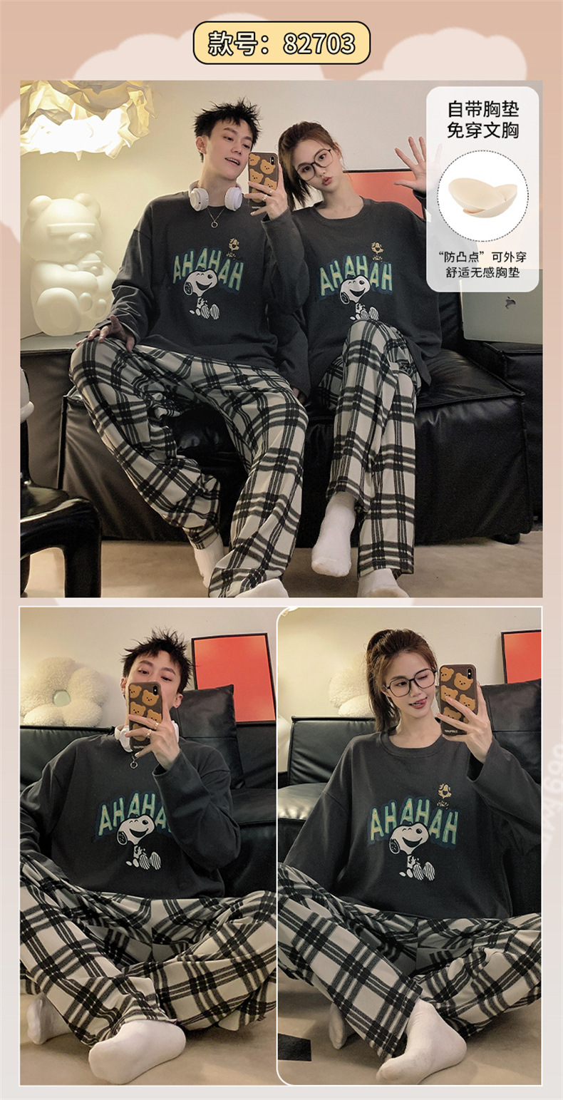 여자 커플 가슴 패드와 잠옷 가을과 겨울 한국식 긴팔 캐주얼 남성 만화 겉옷 홈 세트스토어 가기