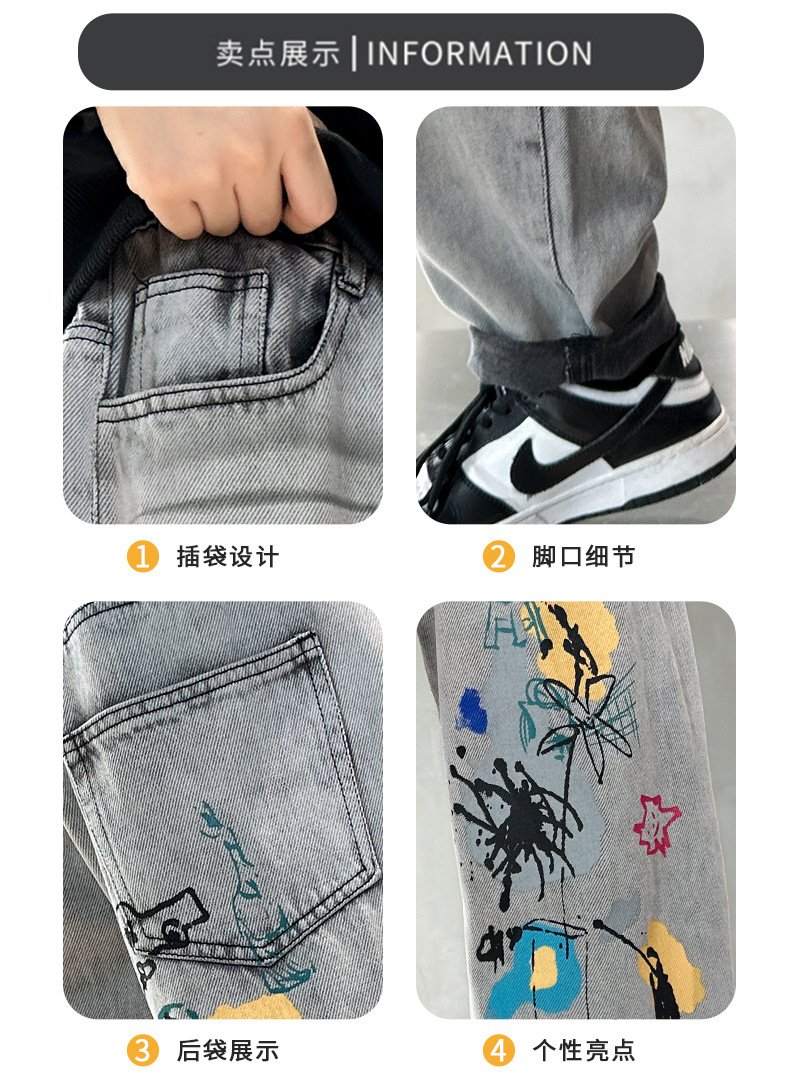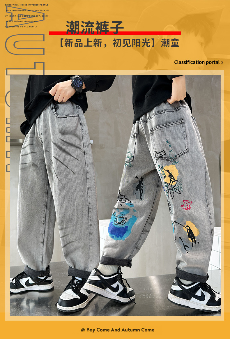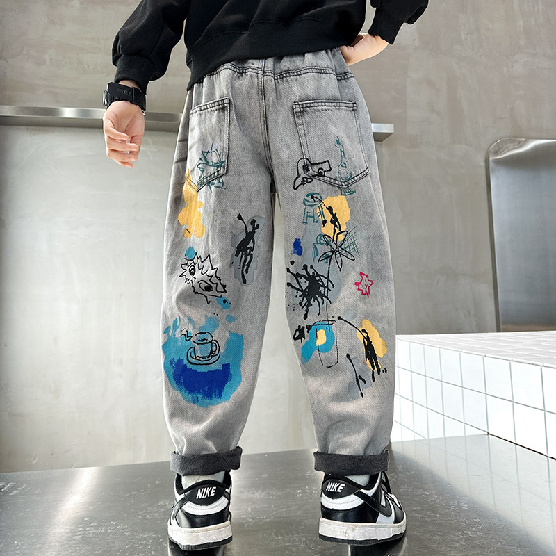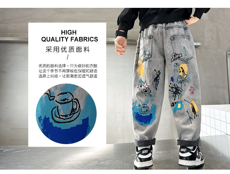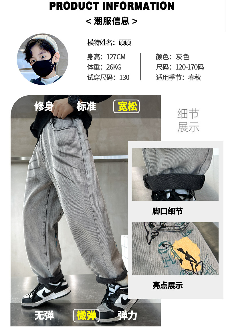 소년 청바지 가을 2024 새로운 어린이 봄과 가을 스트레이트 느슨한 바지 소년 가을 잘 생긴 바지스토어 가기