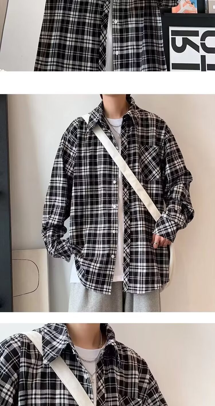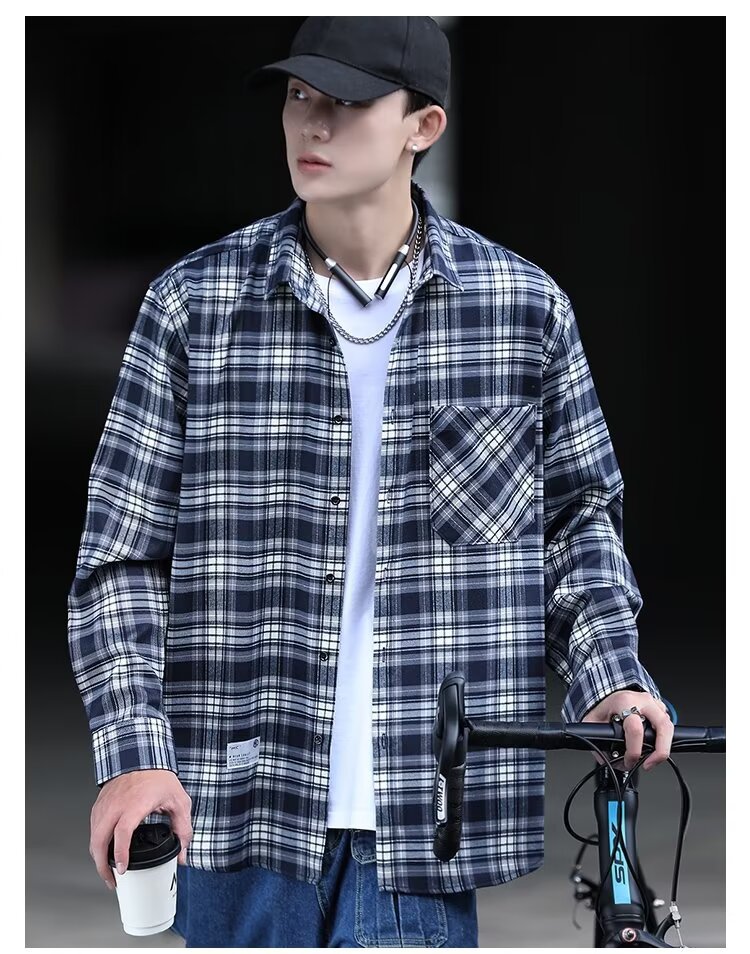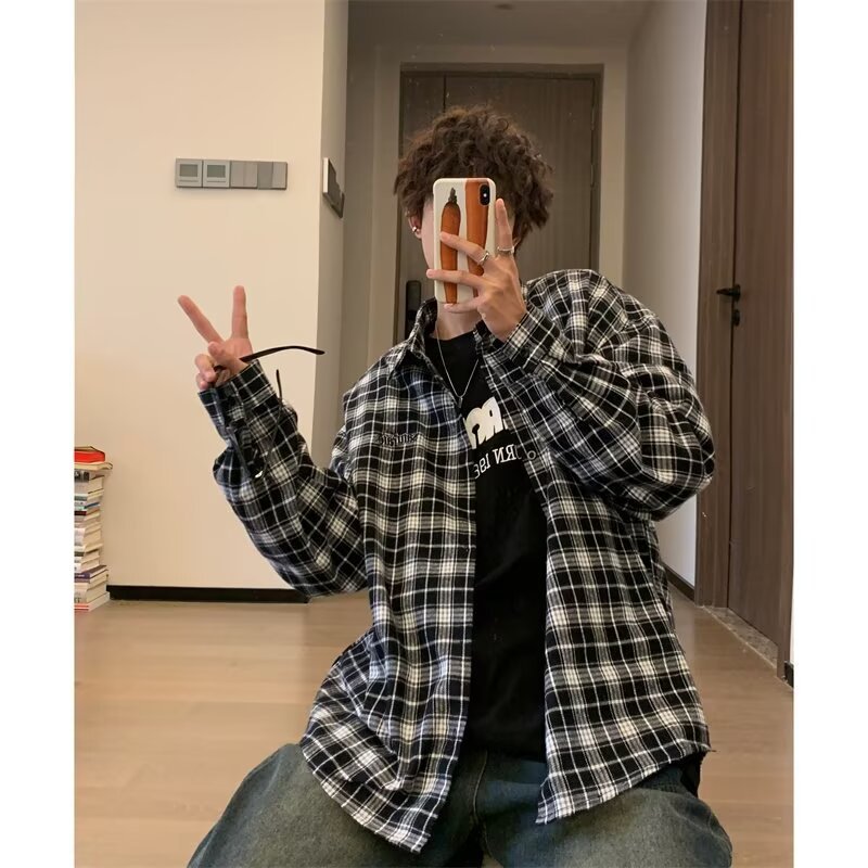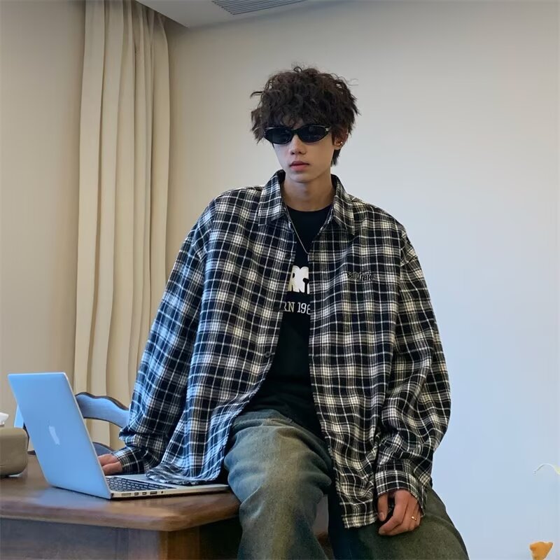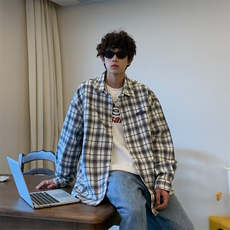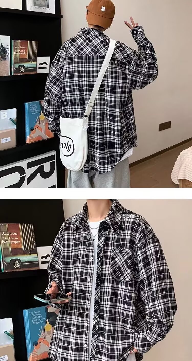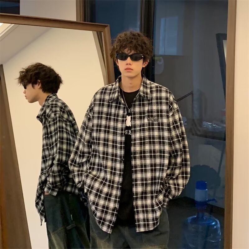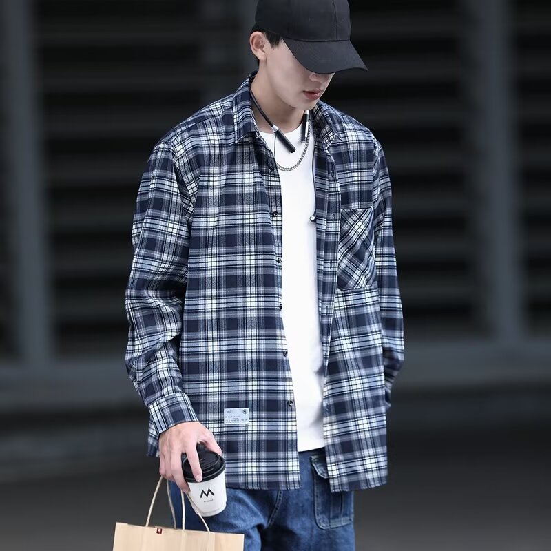 플러스 사이즈 남성 2024 봄, 가을 긴팔 격자 무늬 셔츠 뚱뚱한 남자 유행 잘 생긴 느슨한 플러스 지방 확대 셔츠스토어 가기