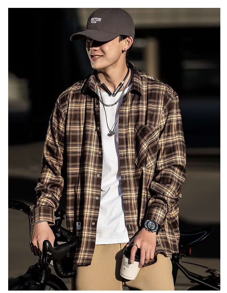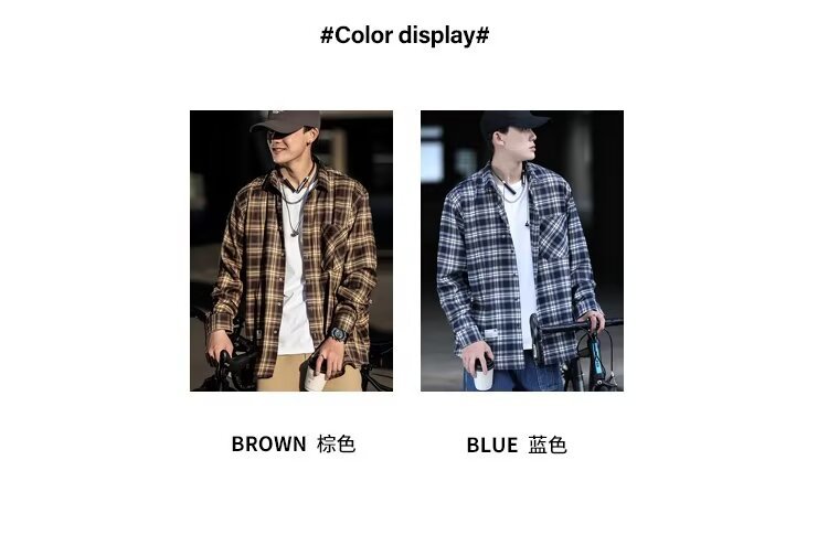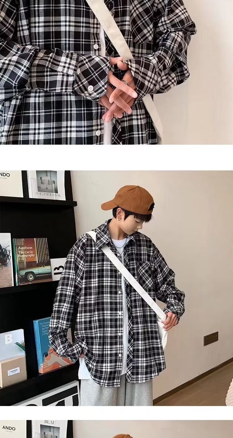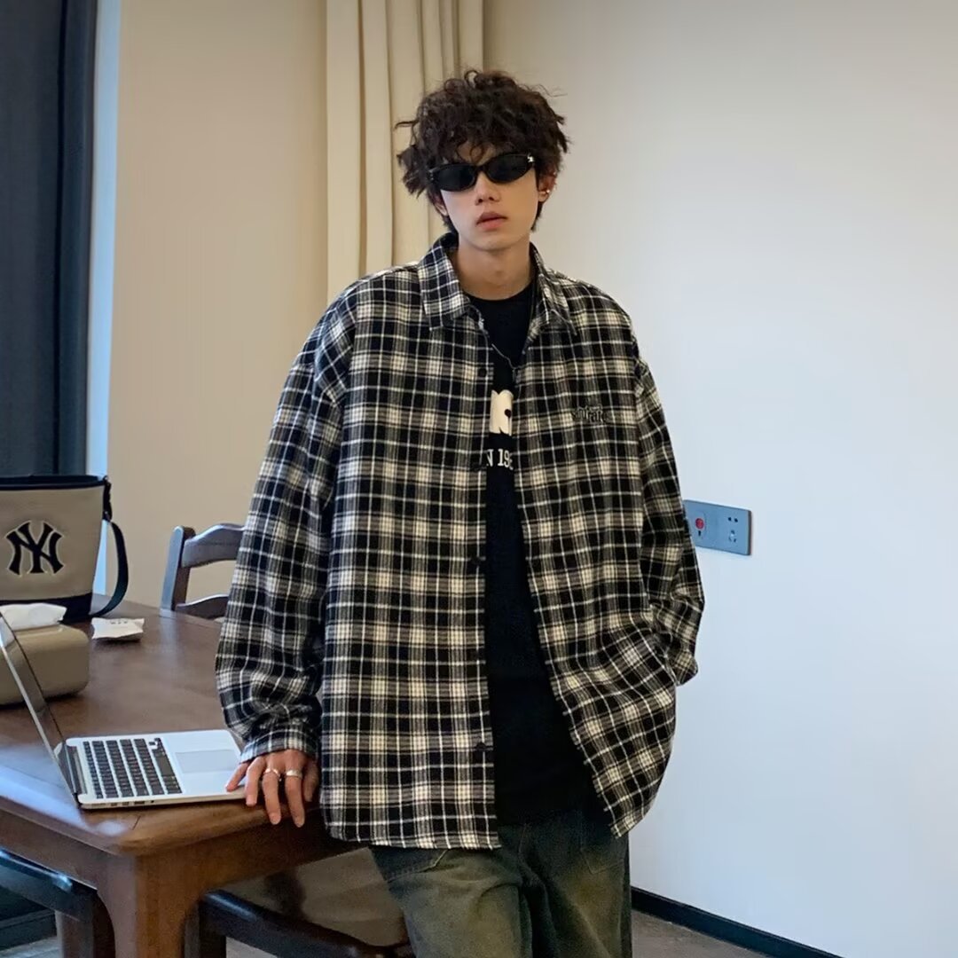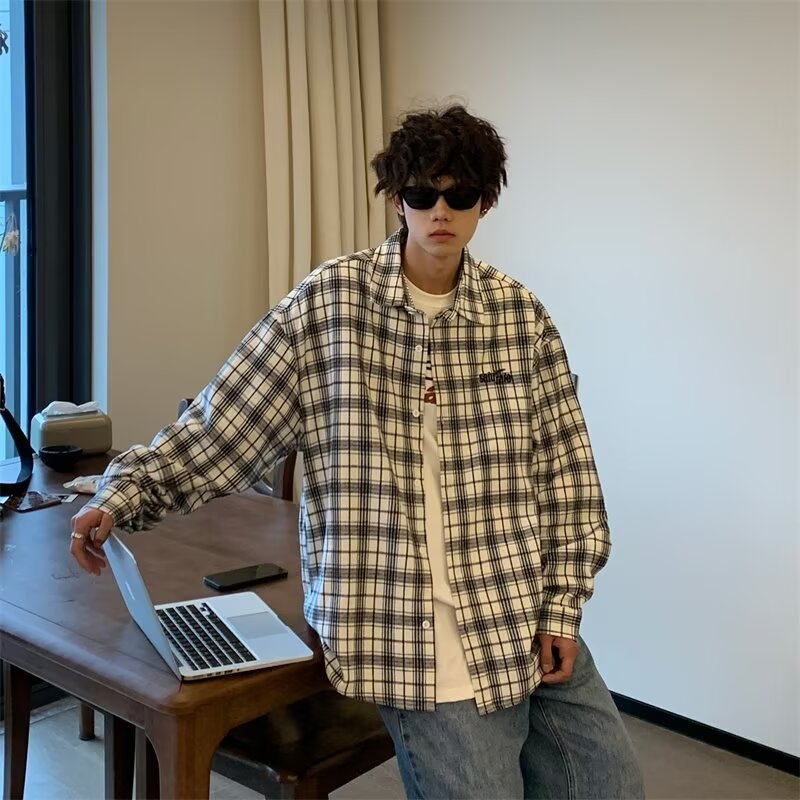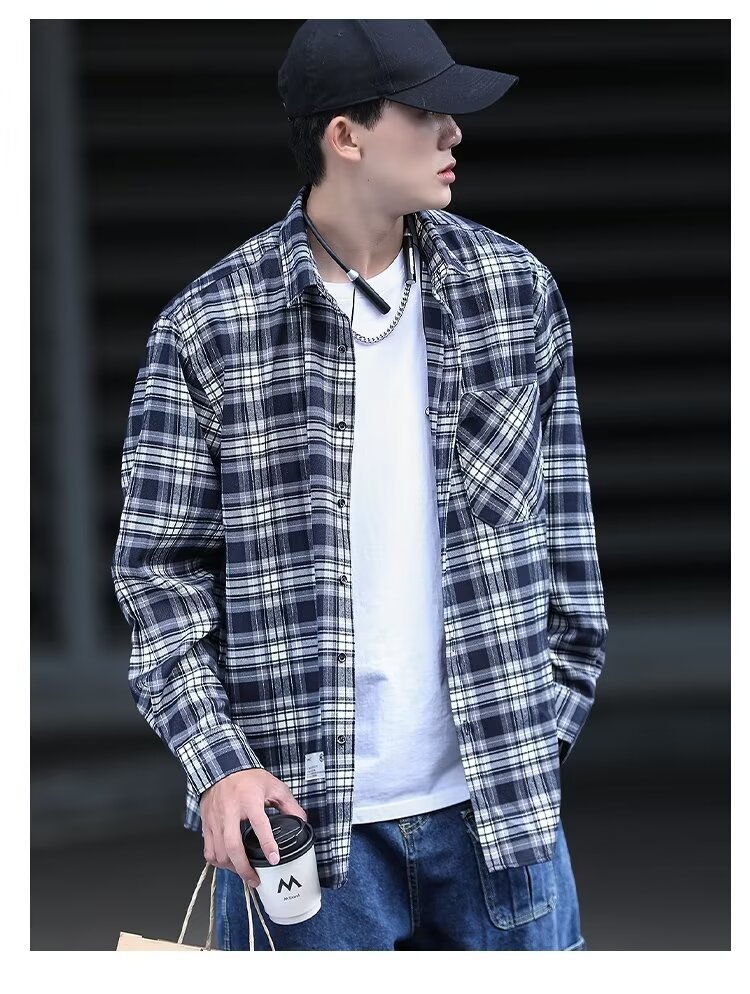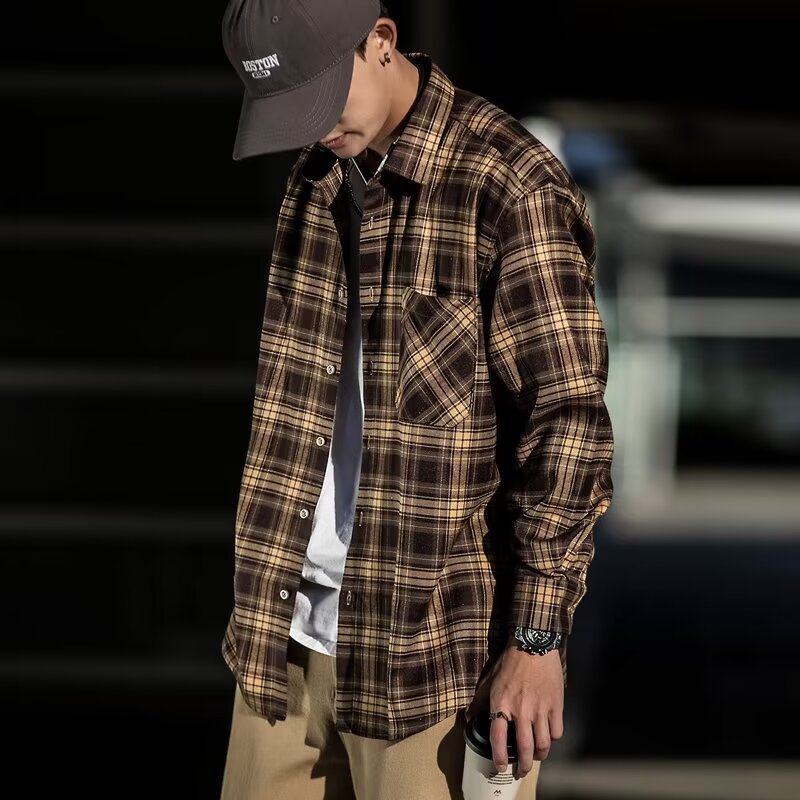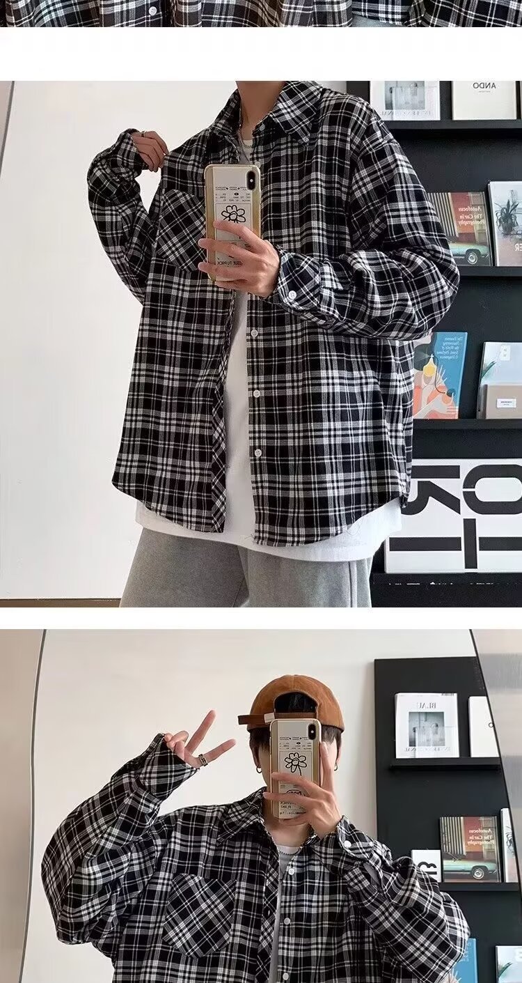 플러스 사이즈 남성 2024 봄, 가을 긴팔 격자 무늬 셔츠 뚱뚱한 남자 유행 잘 생긴 느슨한 플러스 지방 확대 셔츠스토어 가기