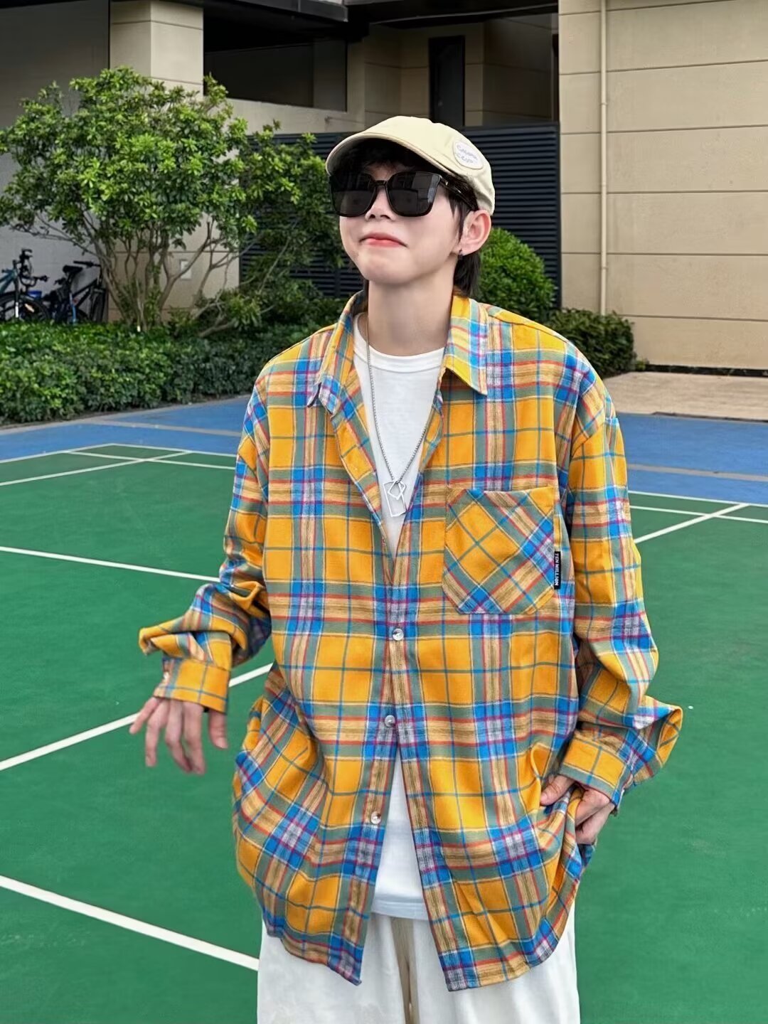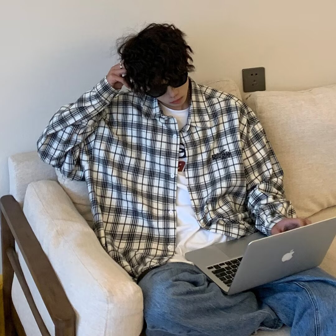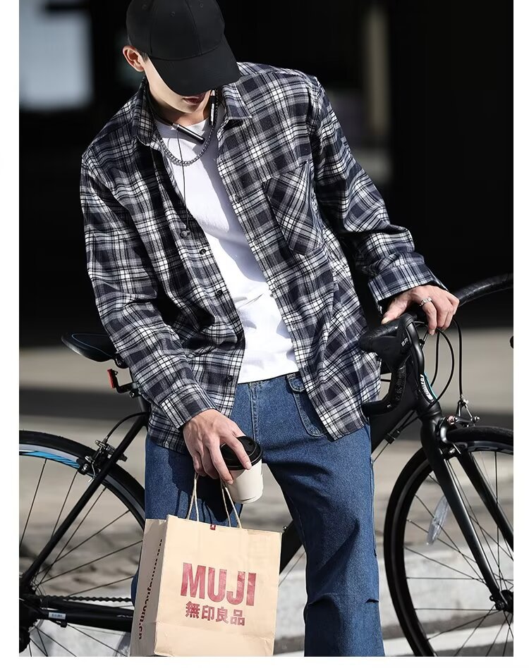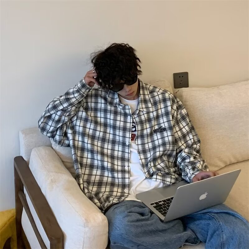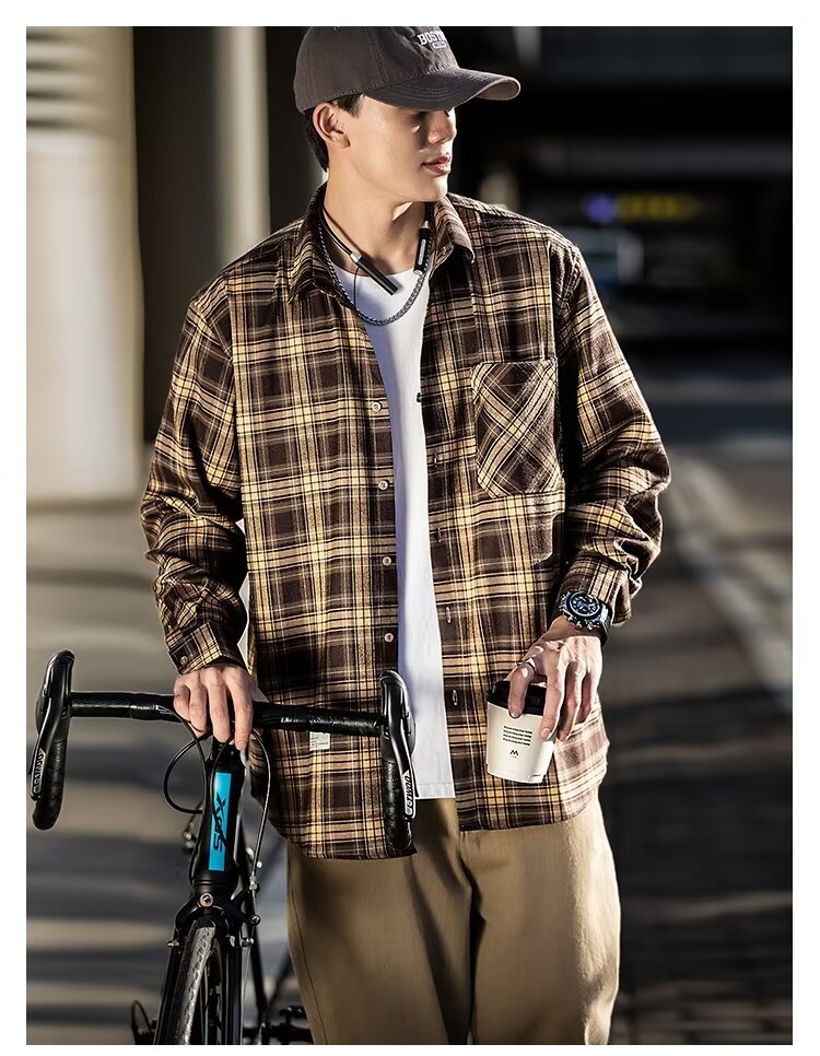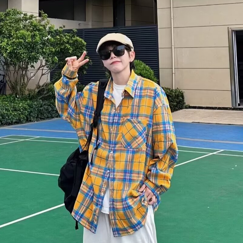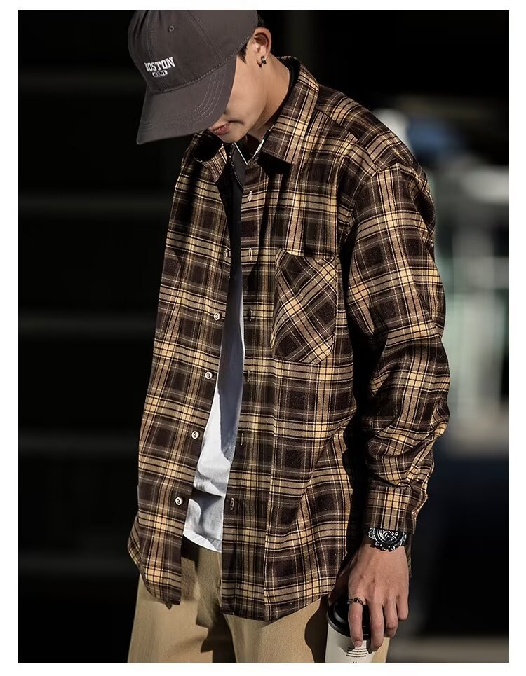 플러스 사이즈 남성 2024 봄, 가을 긴팔 격자 무늬 셔츠 뚱뚱한 남자 유행 잘 생긴 느슨한 플러스 지방 확대 셔츠스토어 가기