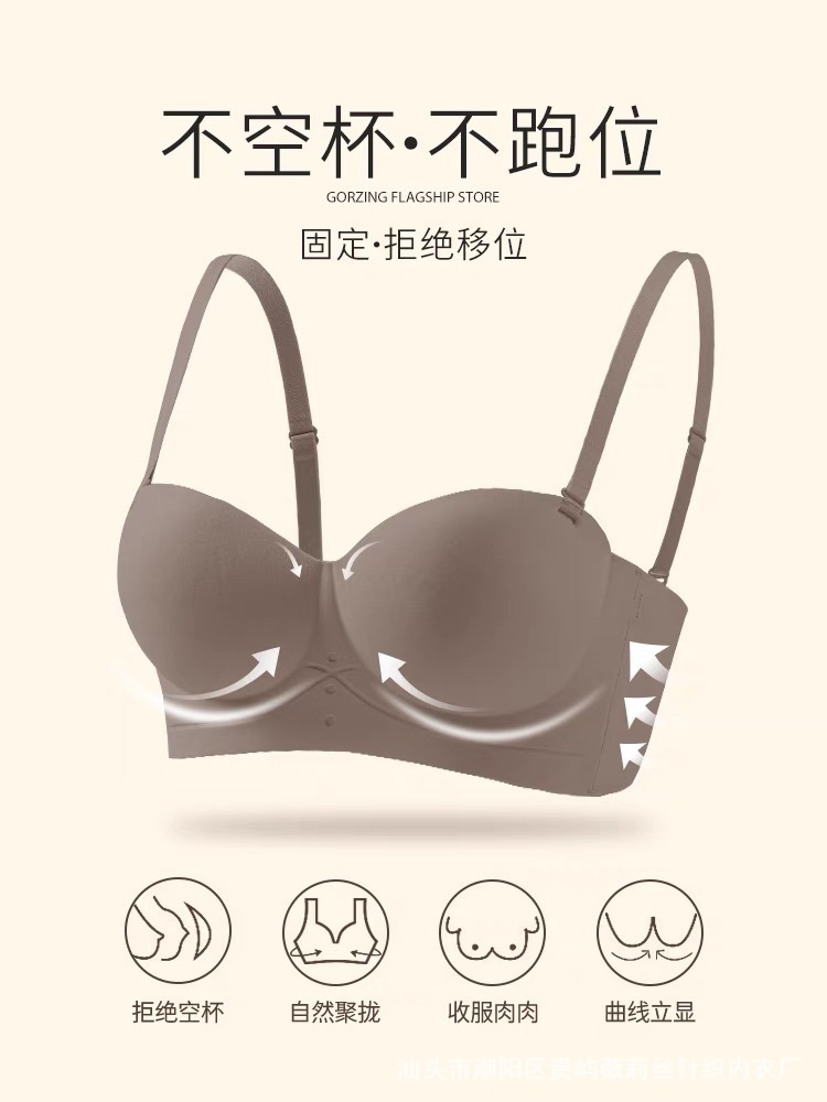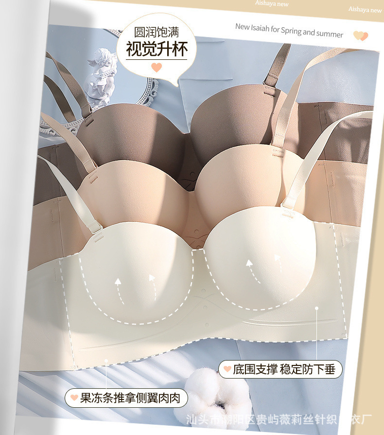 젤리 원활한 끈이없는 하프 컵 속옷 여성의 작은 가슴은 큰 무테 반 컵 브래지어를 모았습니다.스토어 가기