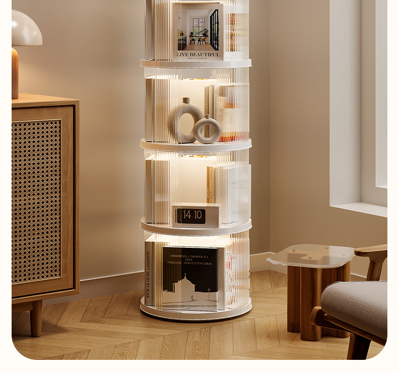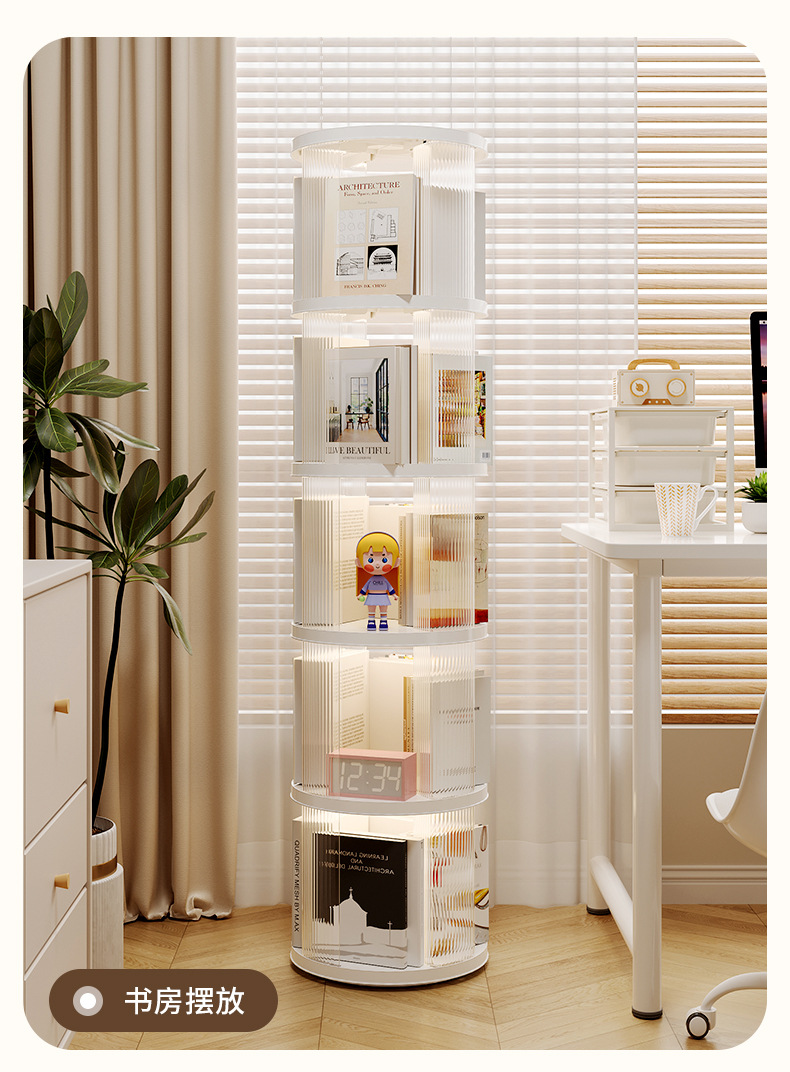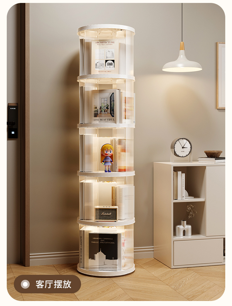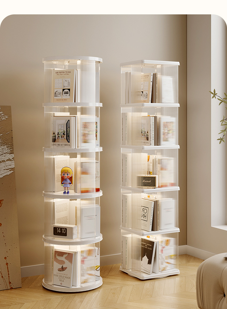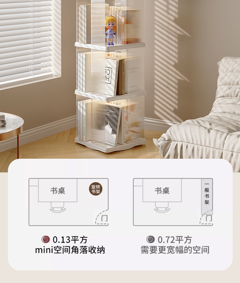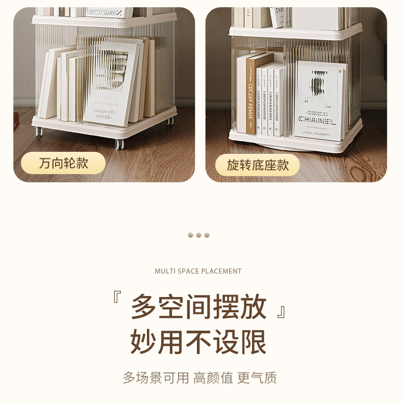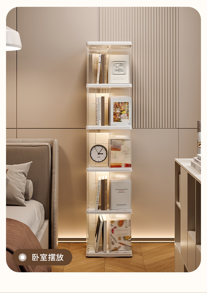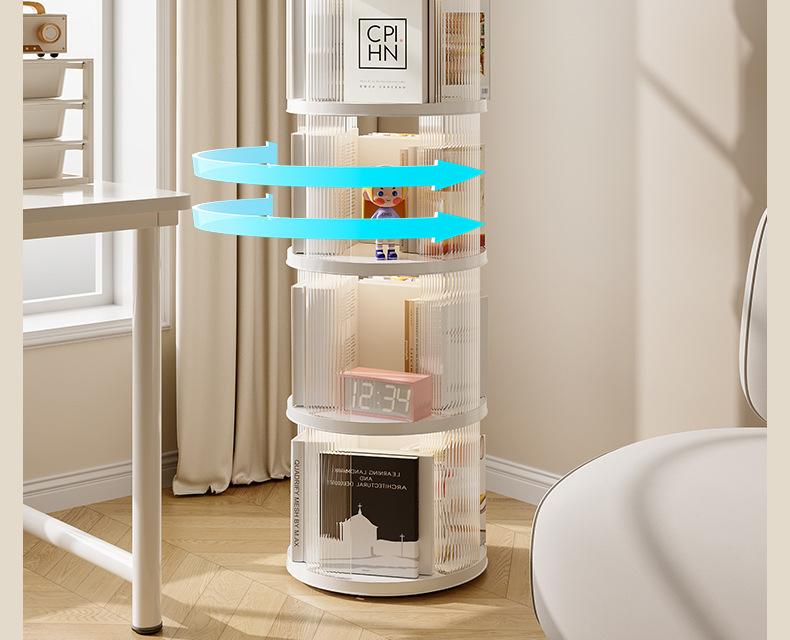 360 도 회전 책장 어린이 바닥 플라스틱 보관 랙 높은 투명 애완 동물 책장 간단한 가정용 간단한 보관 랙