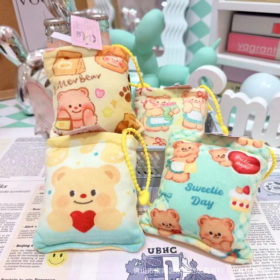 재고 만화 버터 곰 푸딩 가방 봉제 인형 인형 펜던트 키 체인 게임 도시 잡기 인형 기계스토어 가기