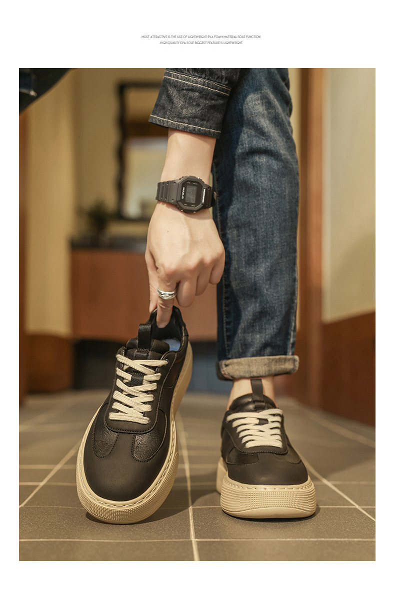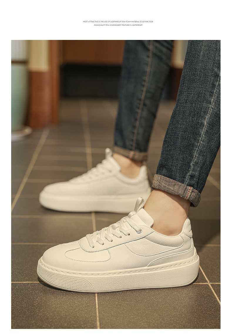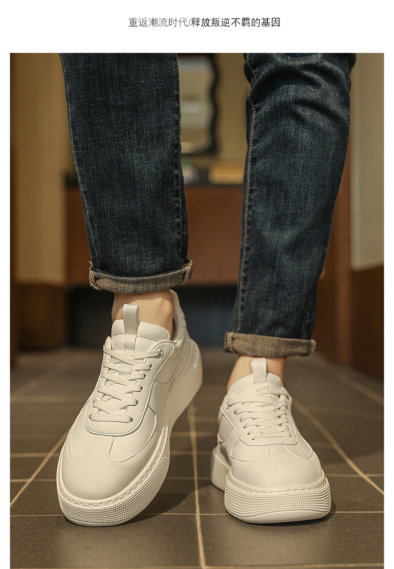 남성 신발 여름 흰색 신발 두꺼운 단독 증가 흰색 통기성 캐주얼 신발 유행 운동화 정품 가죽 올 매치 보드 신발