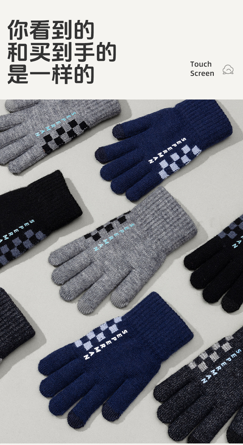 남성용 양모 겨울 배터리 자동차 방풍 따뜻한 터치 스크린 트렌디 한국 두꺼운 니트 장갑스토어 가기