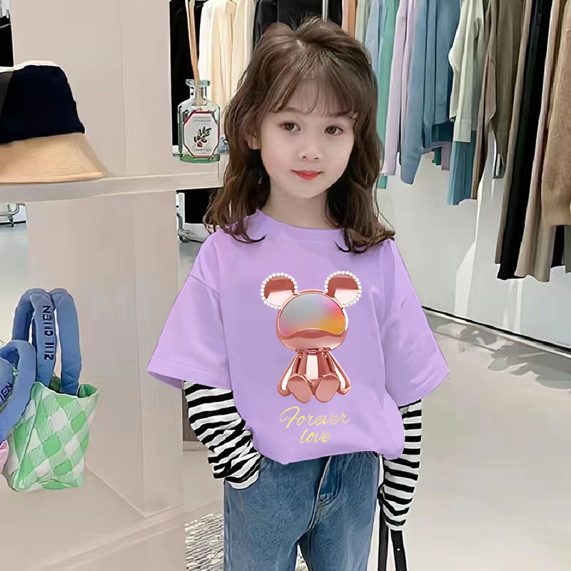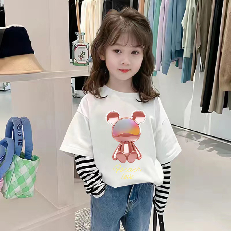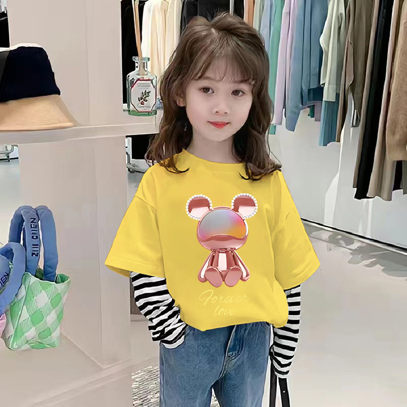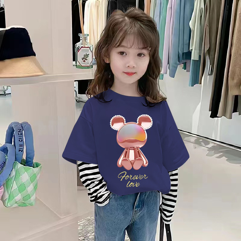 G2534 # 여자 긴팔 면화 티셔츠 가짜 두 가지 새로운 외국 스타일 어린이 가을 캐주얼 코트 봄과 가을 티셔츠스토어 가기