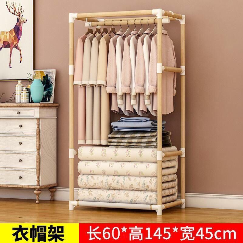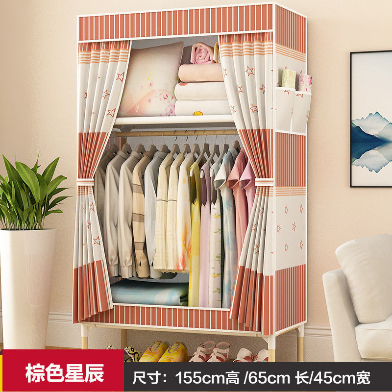 간단한 옷장 단단한 나무 옷감 보관 랙 조립 된 옷장 단일 두 배 큰 두꺼운 부직포 접이식 캐비닛