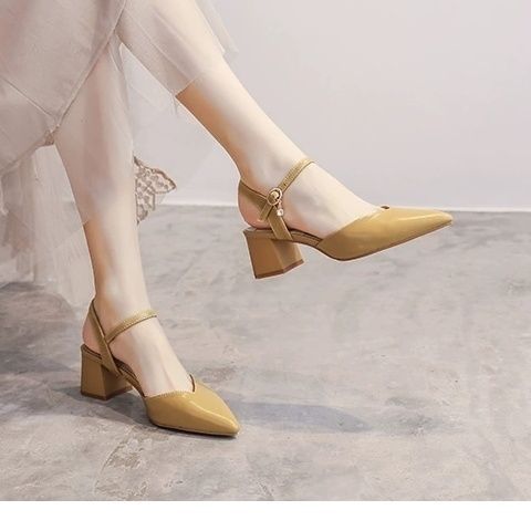 새로운 요정 스타일 뾰족한 두꺼운 발 바오터우 샌들 부드러운 저녁 하이힐 빈 신발 여성 스키니 신발 도매스토어 가기