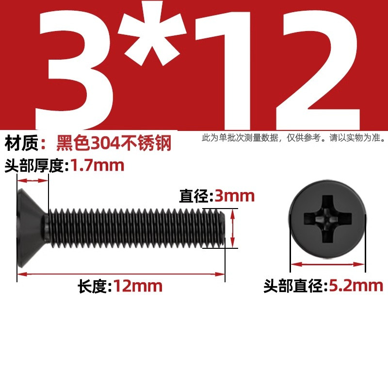 GB 블랙 304 스테인레스 스틸 카운터 침몰 헤드 필립스 스크류 플랫 헤드 블랙 아연 도금 작은 나사 M2M3M4M5M6M8M10