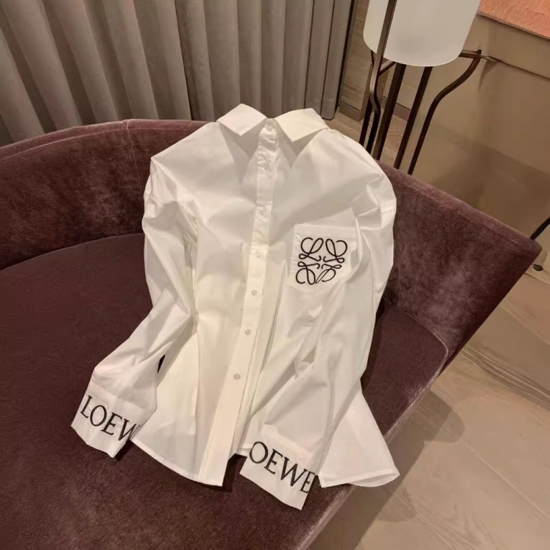 LA24loe 셔츠 중공업 하이 퀄리티 패션 캐주얼 루즈 자수 알파벳 올매치 우아한 봄과 가을 탑