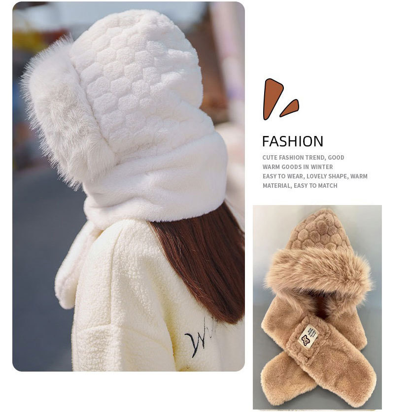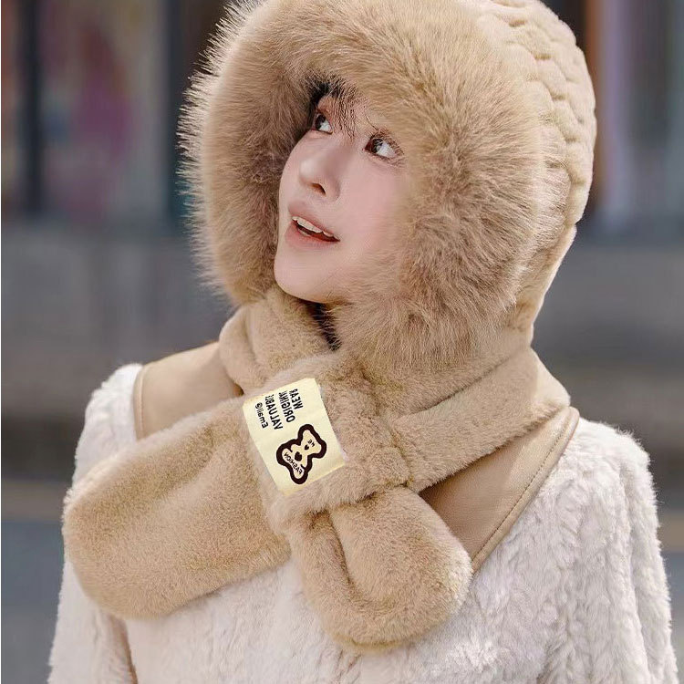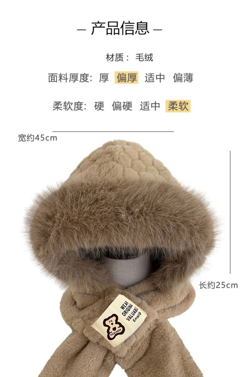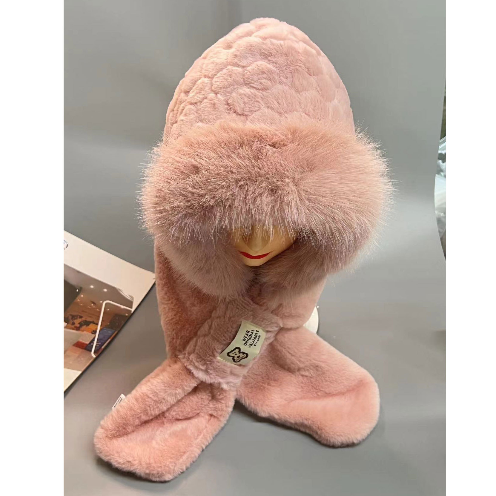 봉제 귀 보호 모자와 스카프 올인원 여성의 가을과 겨울 기모 따뜻한 모자 귀여운 승마 큰 머리 두 조각 세트 제조 업체스토어 가기