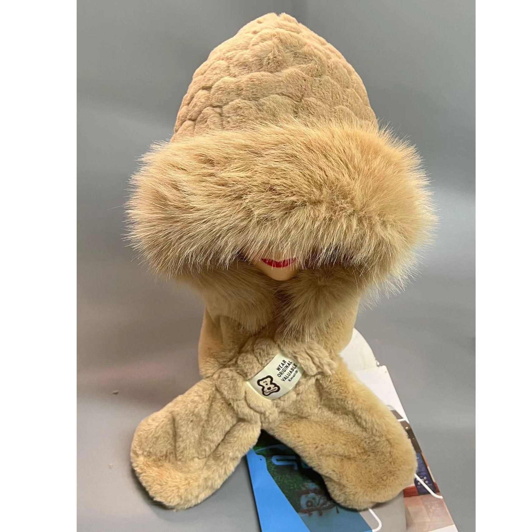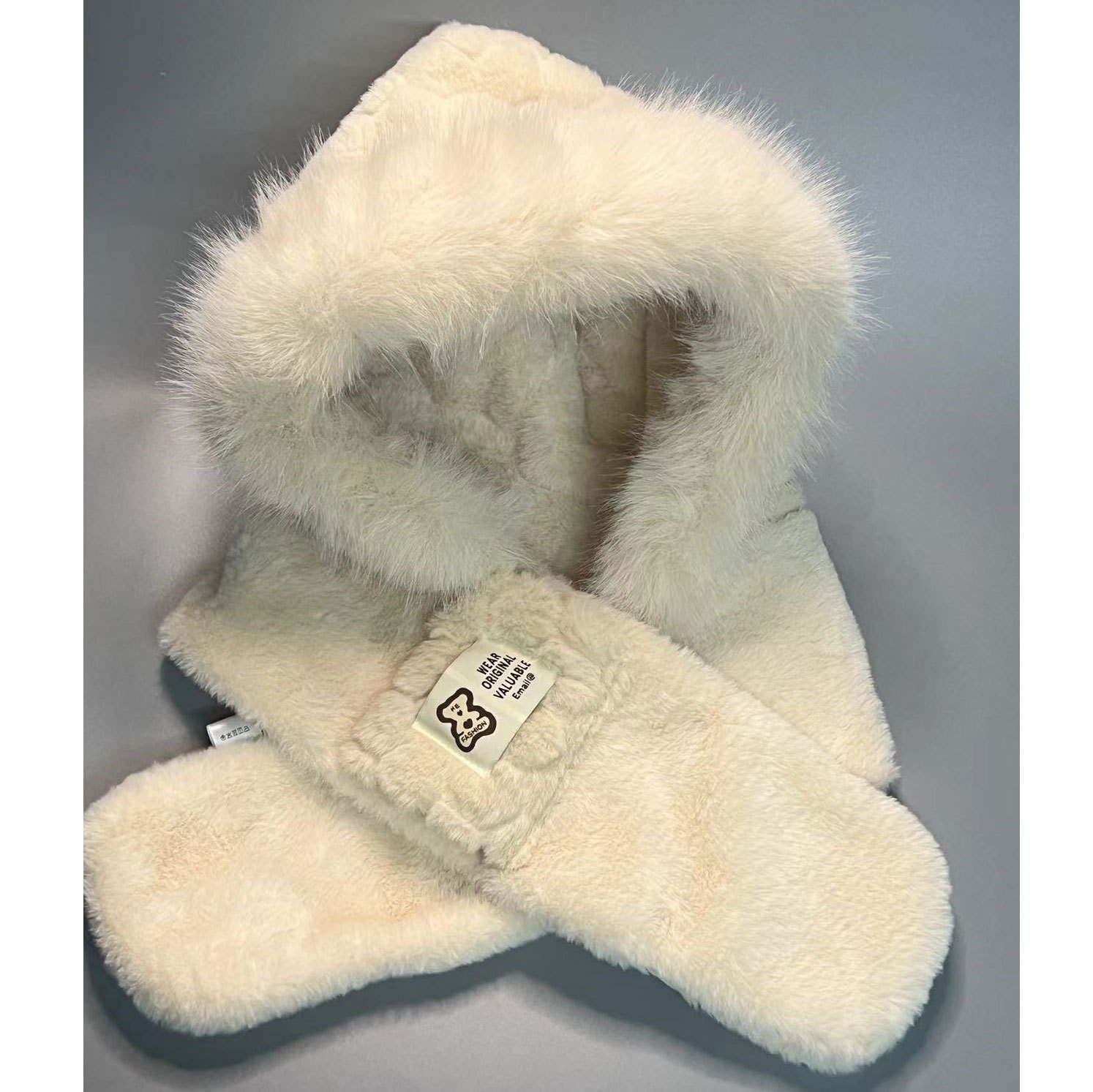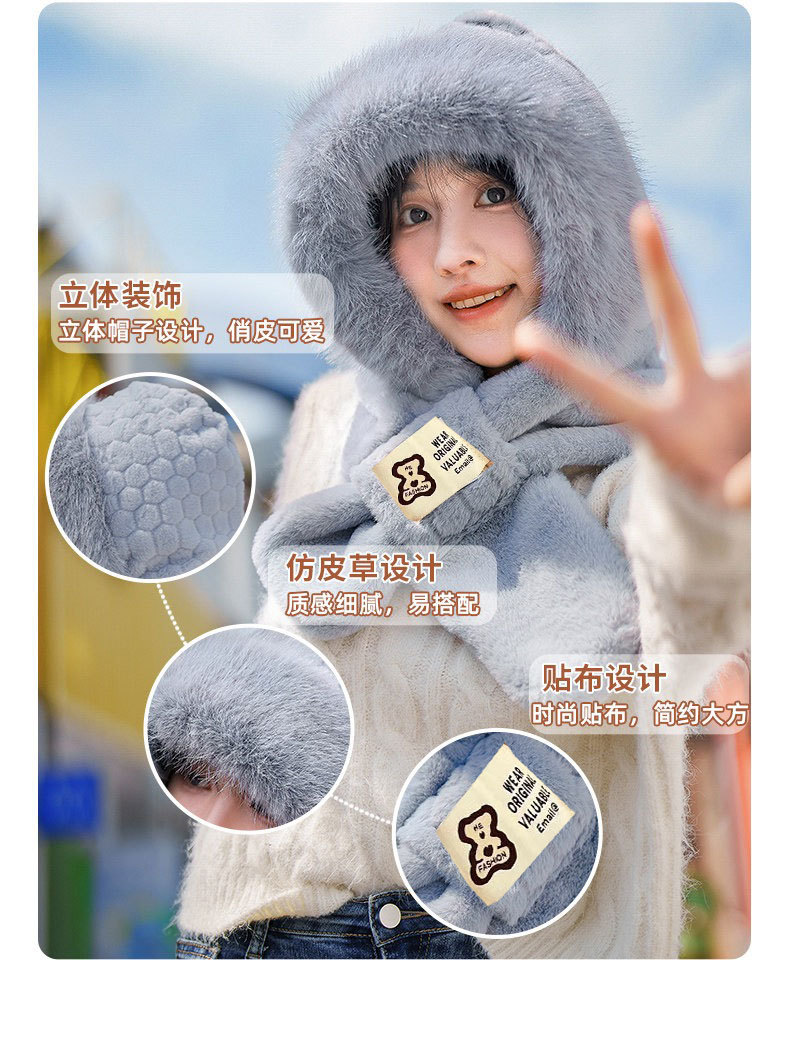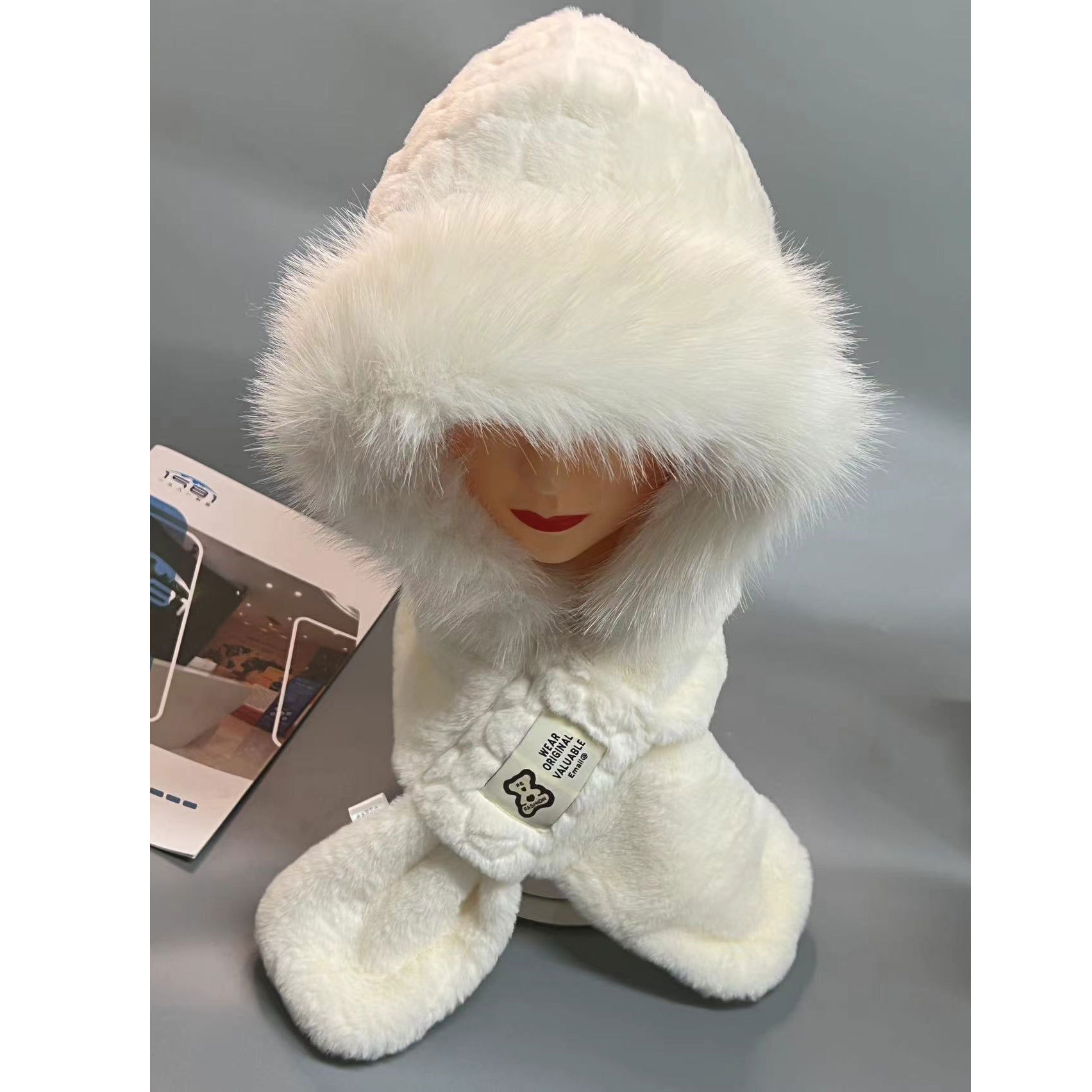 봉제 귀 보호 모자와 스카프 올인원 여성의 가을과 겨울 기모 따뜻한 모자 귀여운 승마 큰 머리 두 조각 세트 제조 업체스토어 가기