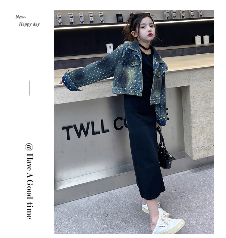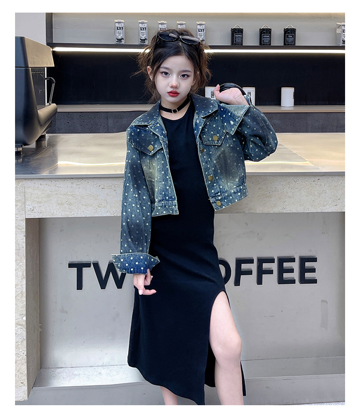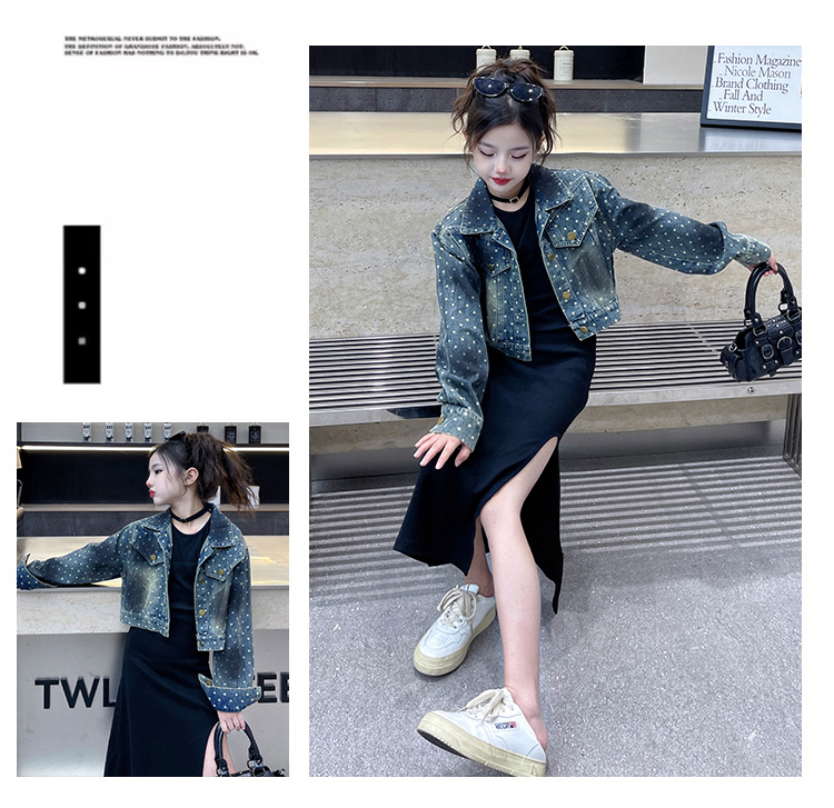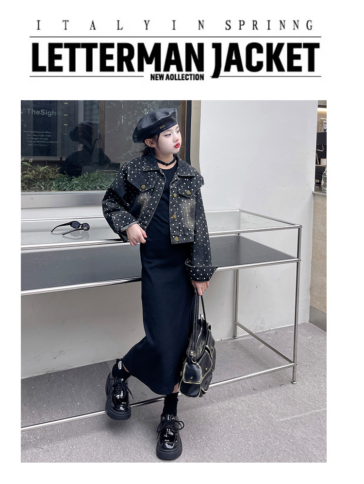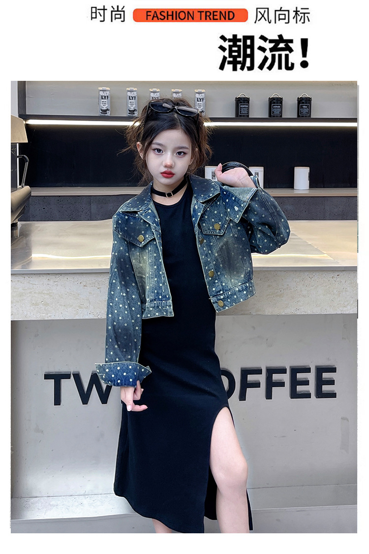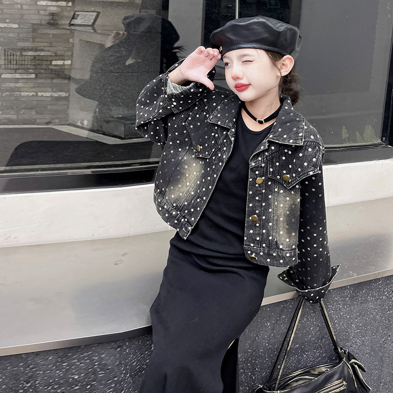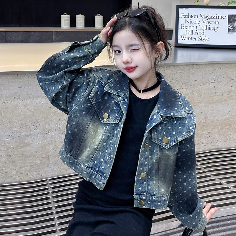 소녀 코트 봄과 가을 2024 새로운 가을 어린이 초가을 옷 여아 여성 의류 가을 데님 재킷스토어 가기