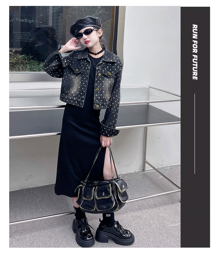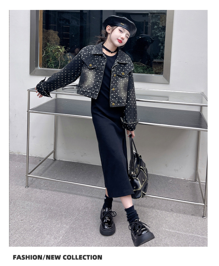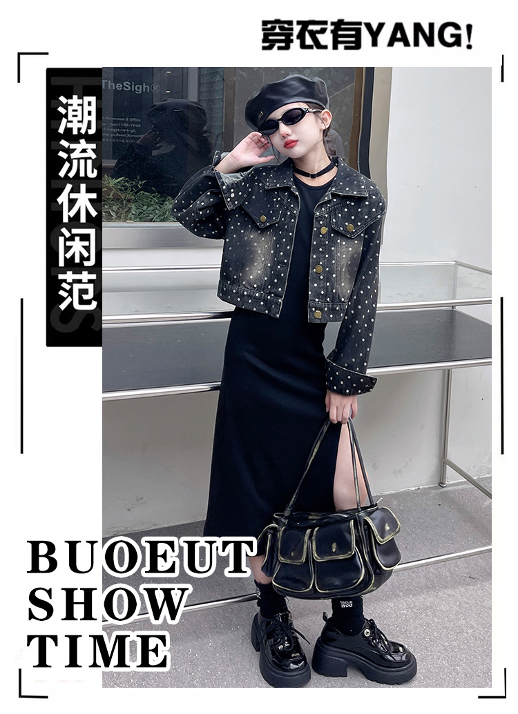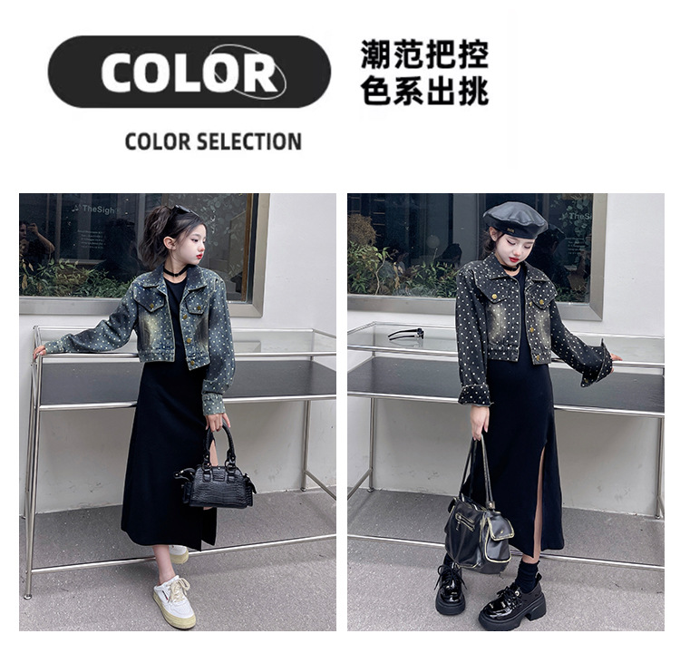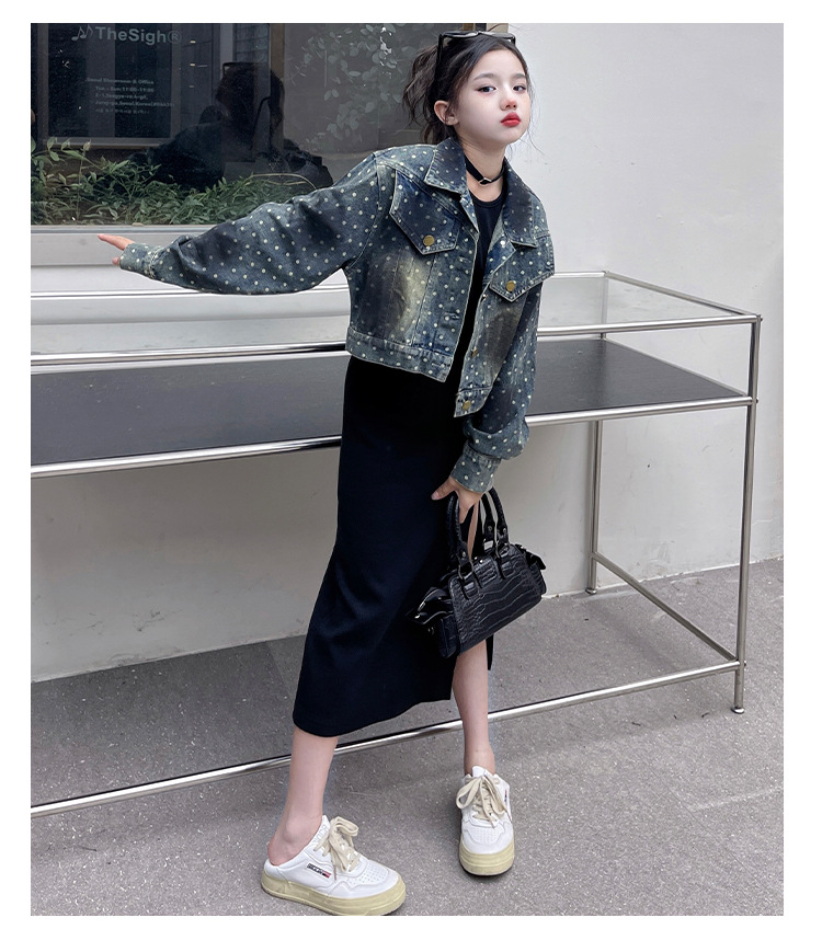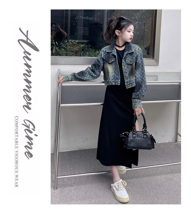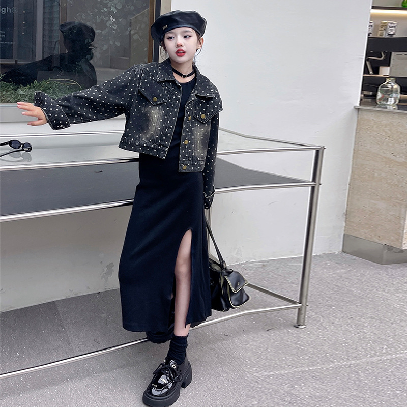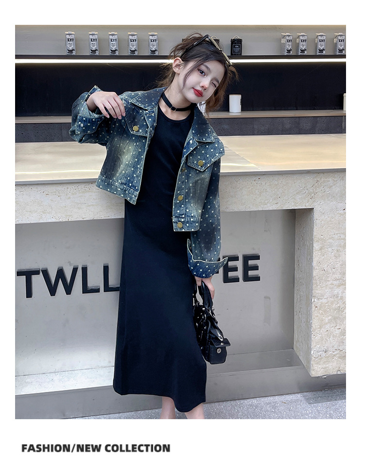 소녀 코트 봄과 가을 2024 새로운 가을 어린이 초가을 옷 여아 여성 의류 가을 데님 재킷스토어 가기