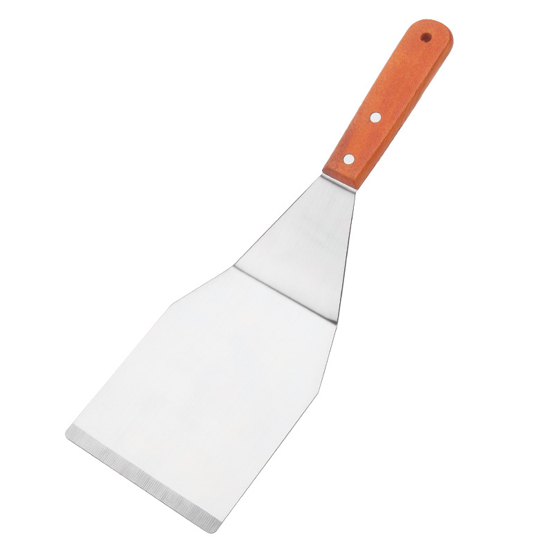 공장 재고 도매 스테인레스 스틸 삽 스테이크 삽 상업 튀긴 가방 철판 가키 핸드 헬드 케이크 토스트 나무 요리