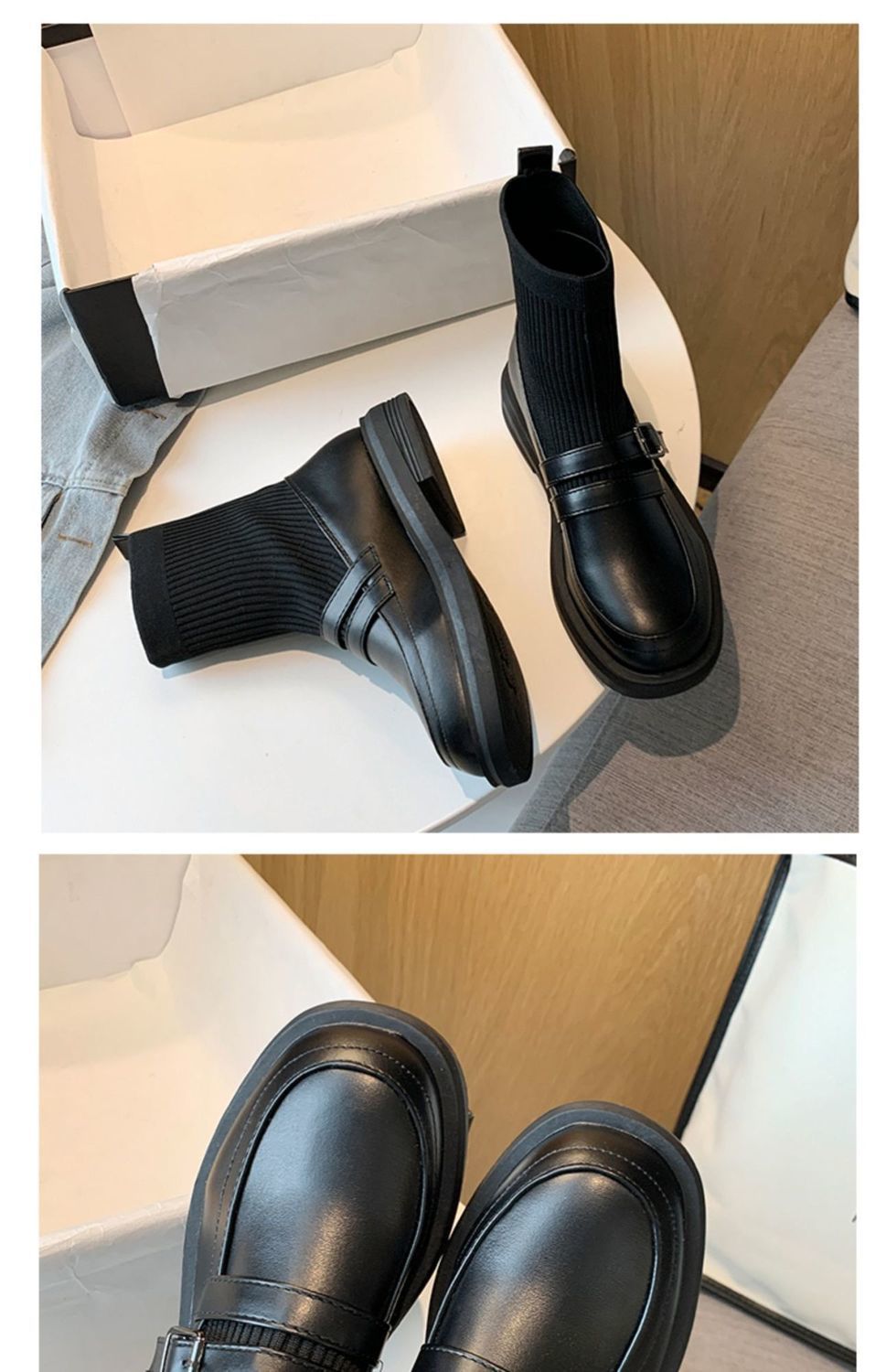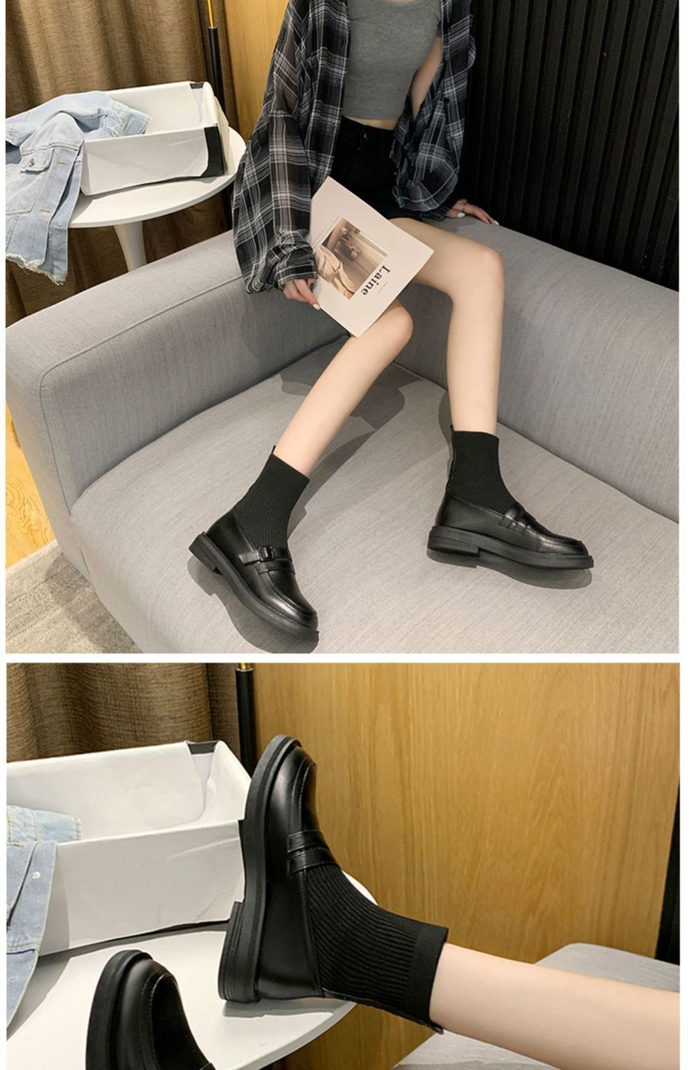 얇은 양말 부츠 작은 짧은 부츠 여성용 봄과 가을 싱글 부츠 새로운 스타킹 마틴 부츠 니트 탄성 작은 가죽 신발 트렌디스토어 가기