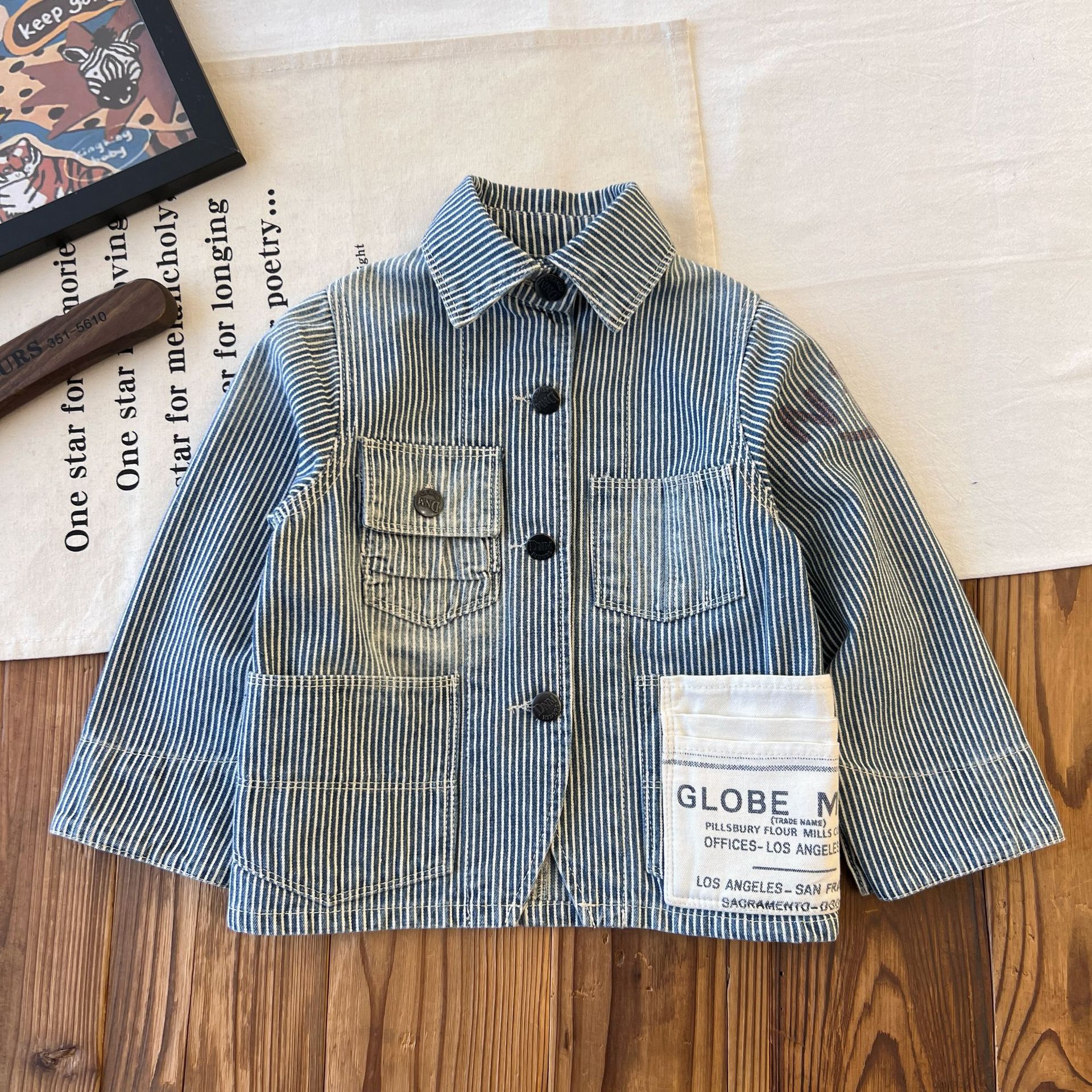 [재고] 일본 중년 아동복 DD 세로 줄무늬 데님 코트 어린이 정상스토어 가기