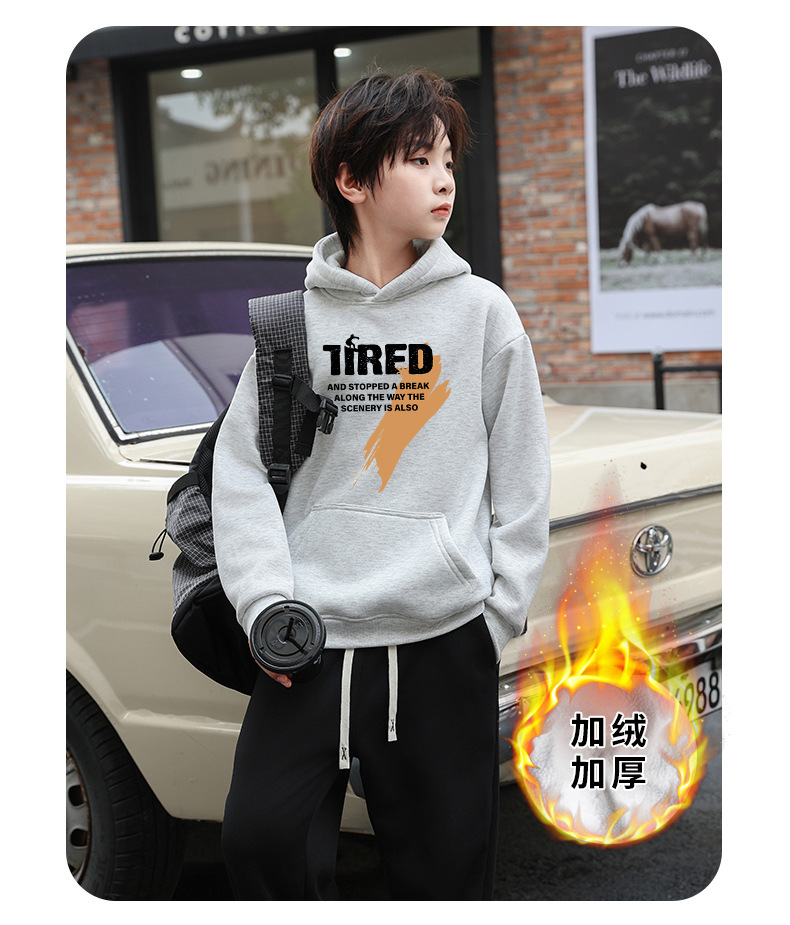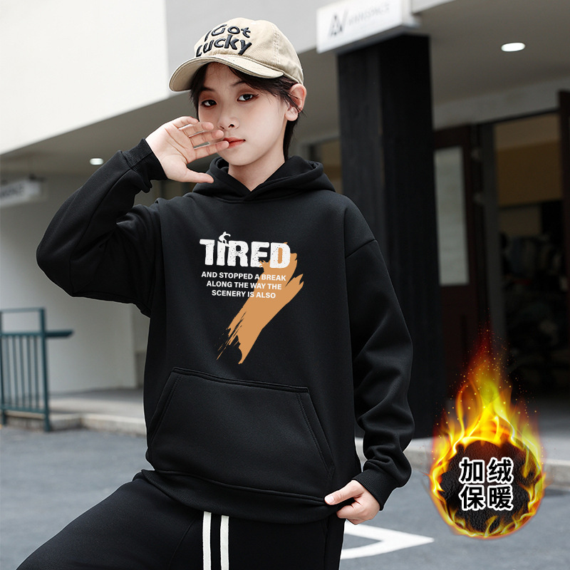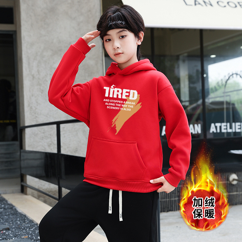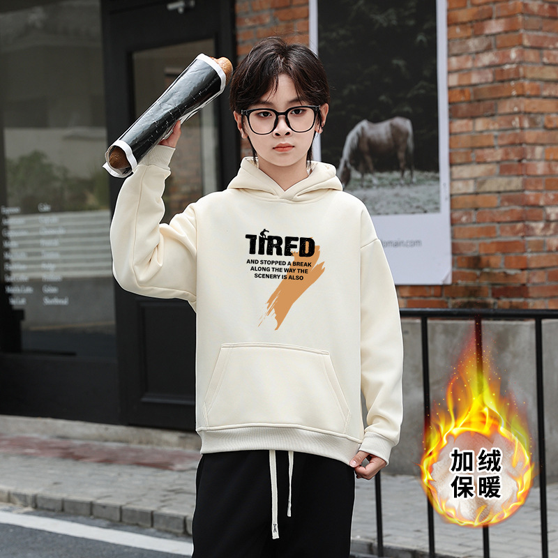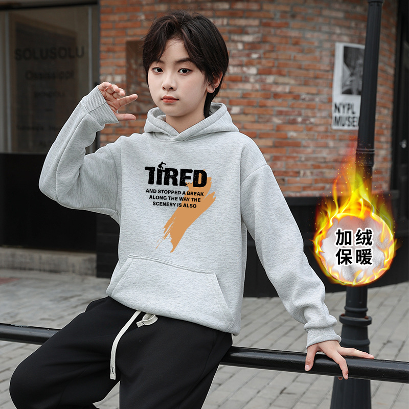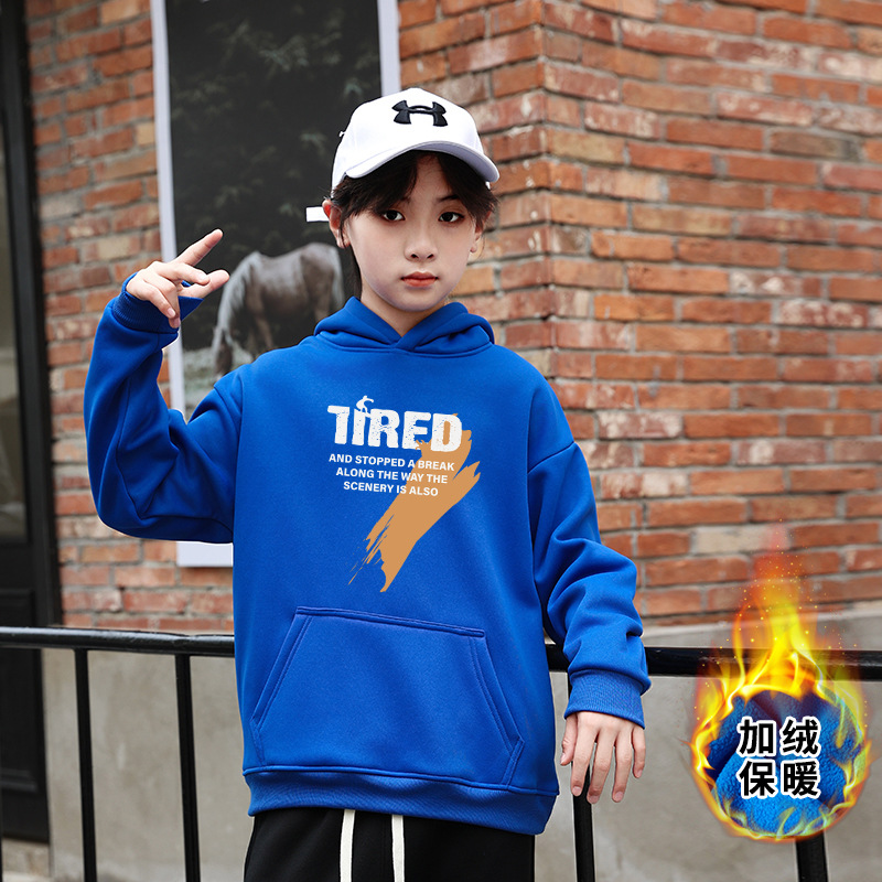 소년의 가을과 겨울 후드 스웨터 대형 어린이 기모 두꺼운 풀오버 후디 루즈 올 매치 어린이 숄더 코튼 재킷스토어 가기