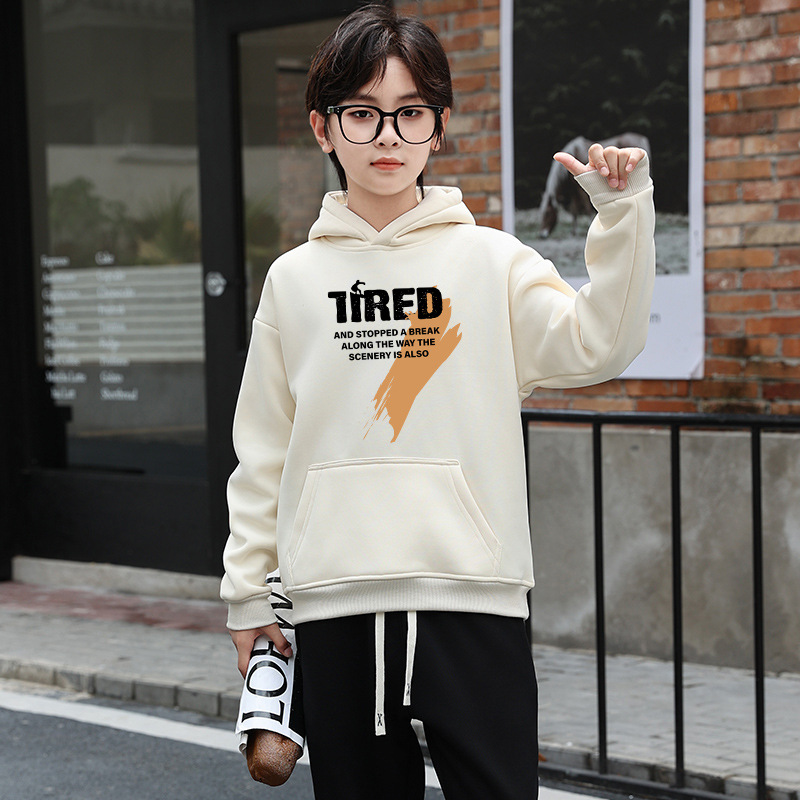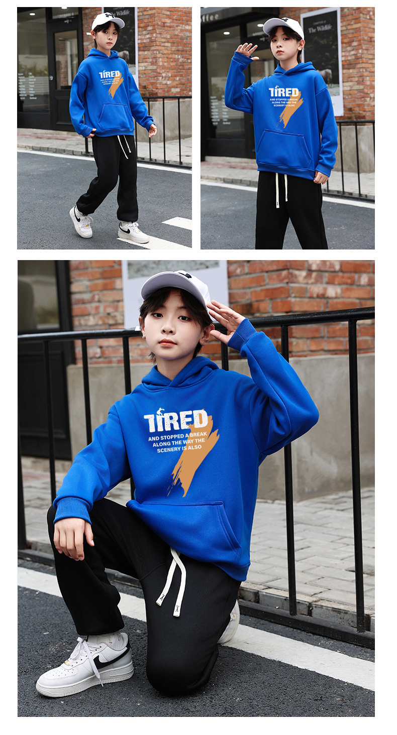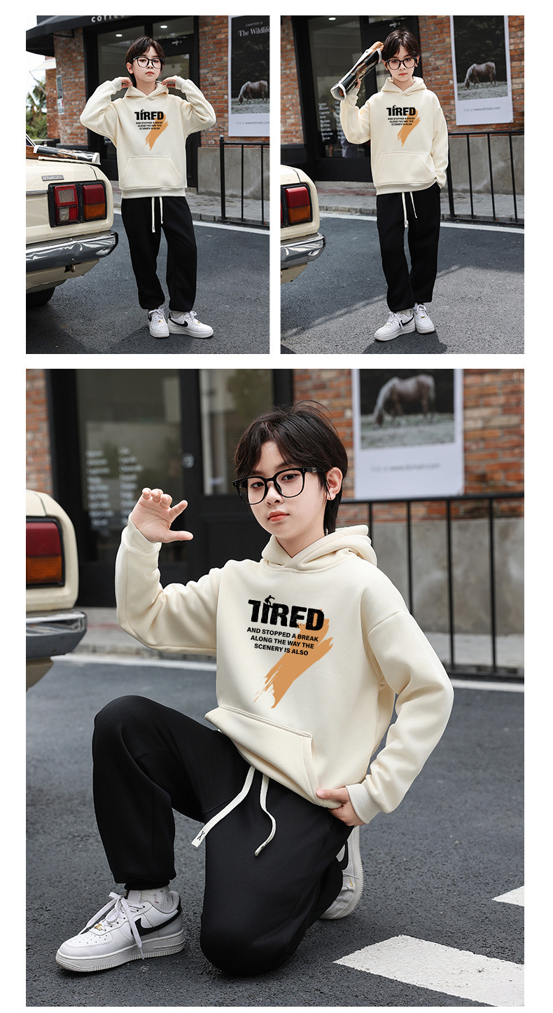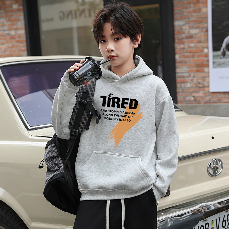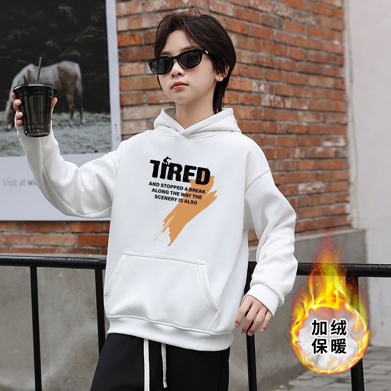 소년의 가을과 겨울 후드 스웨터 대형 어린이 기모 두꺼운 풀오버 후디 루즈 올 매치 어린이 숄더 코튼 재킷스토어 가기