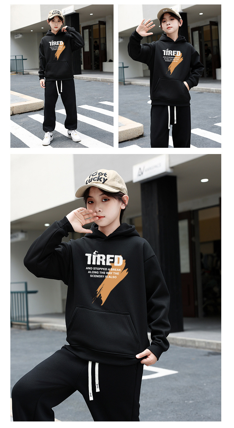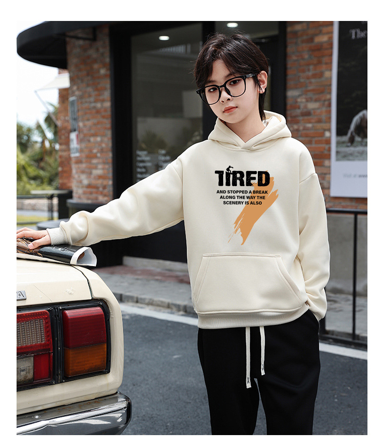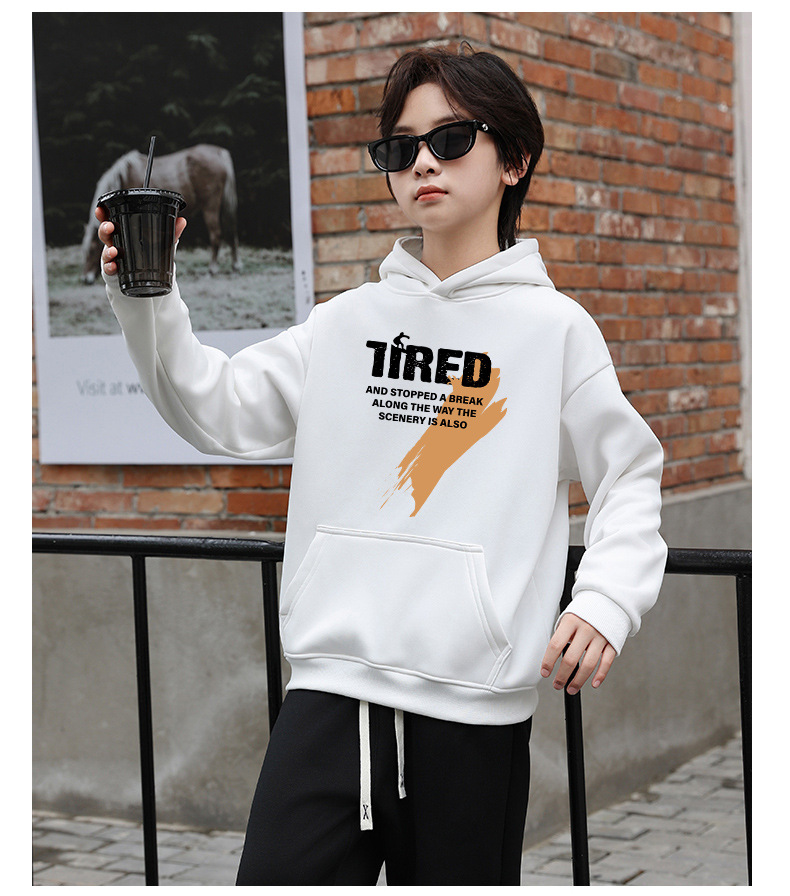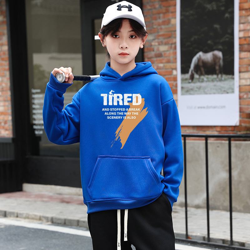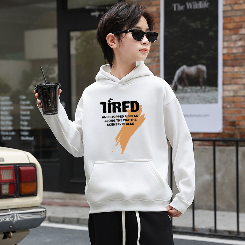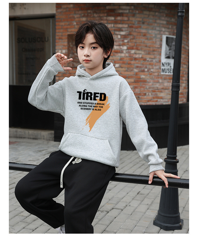 소년의 가을과 겨울 후드 스웨터 대형 어린이 기모 두꺼운 풀오버 후디 루즈 올 매치 어린이 숄더 코튼 재킷스토어 가기
