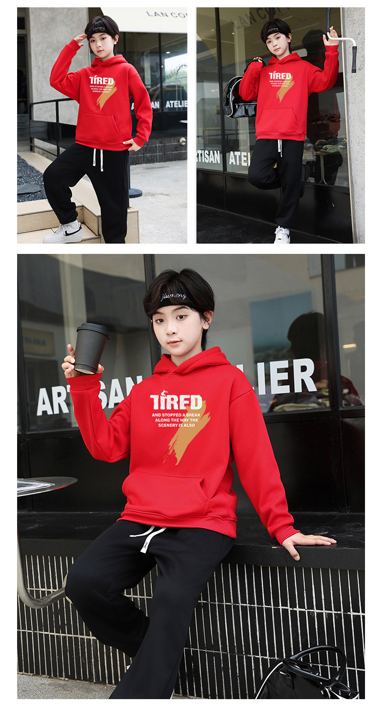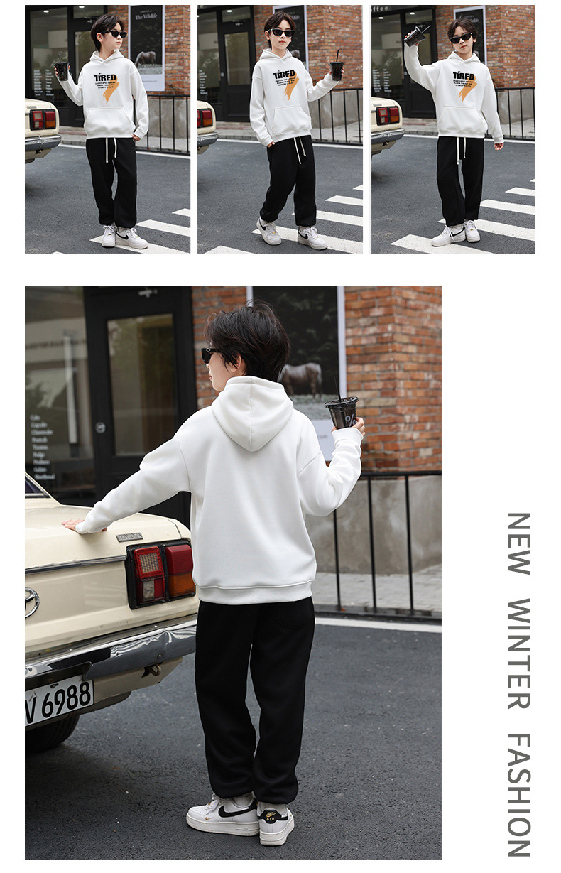 소년의 가을과 겨울 후드 스웨터 대형 어린이 기모 두꺼운 풀오버 후디 루즈 올 매치 어린이 숄더 코튼 재킷