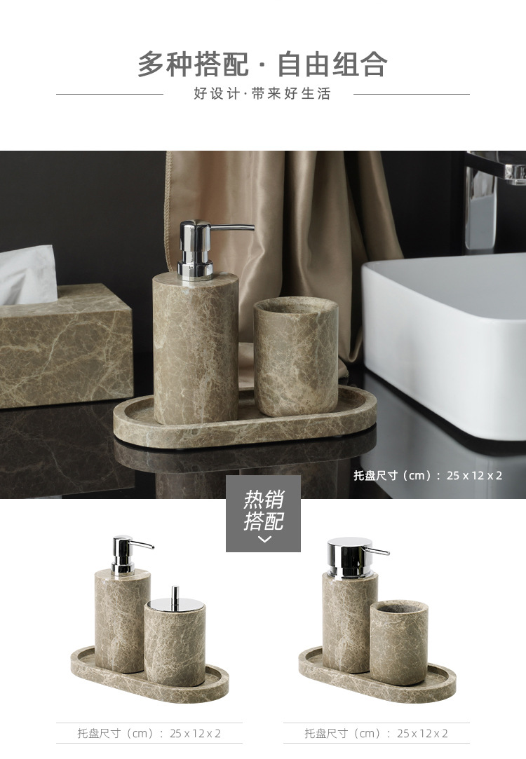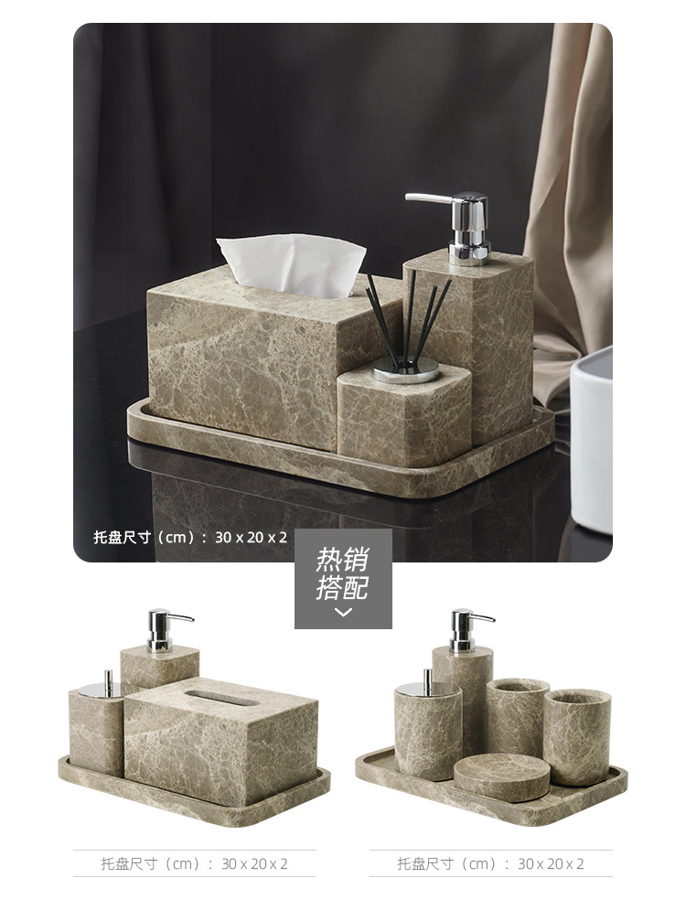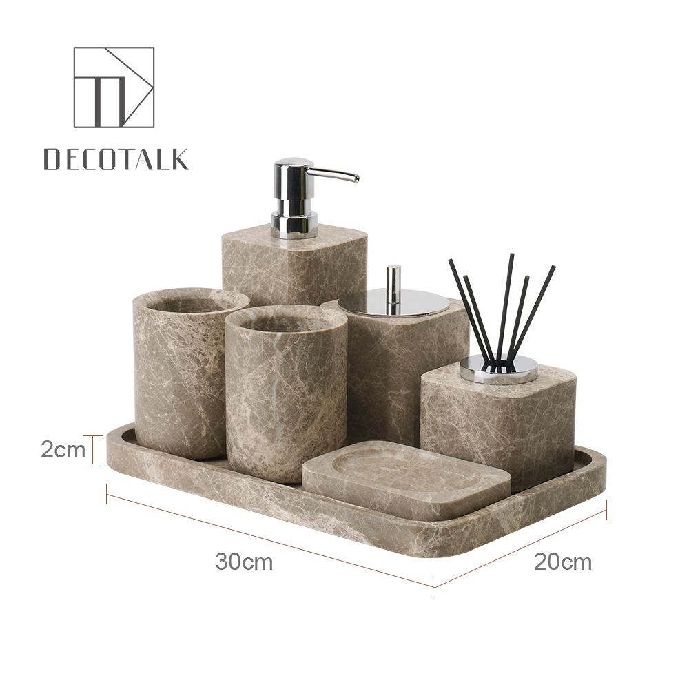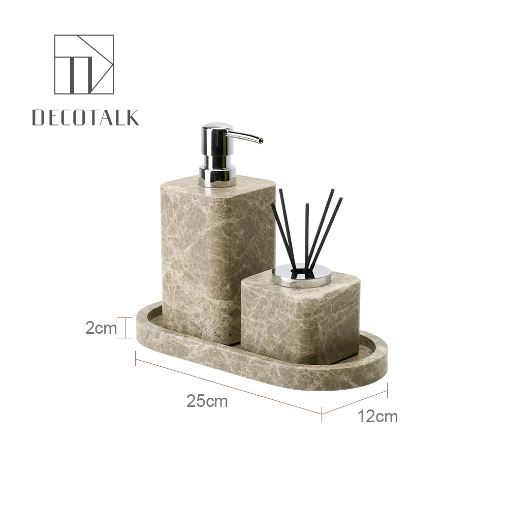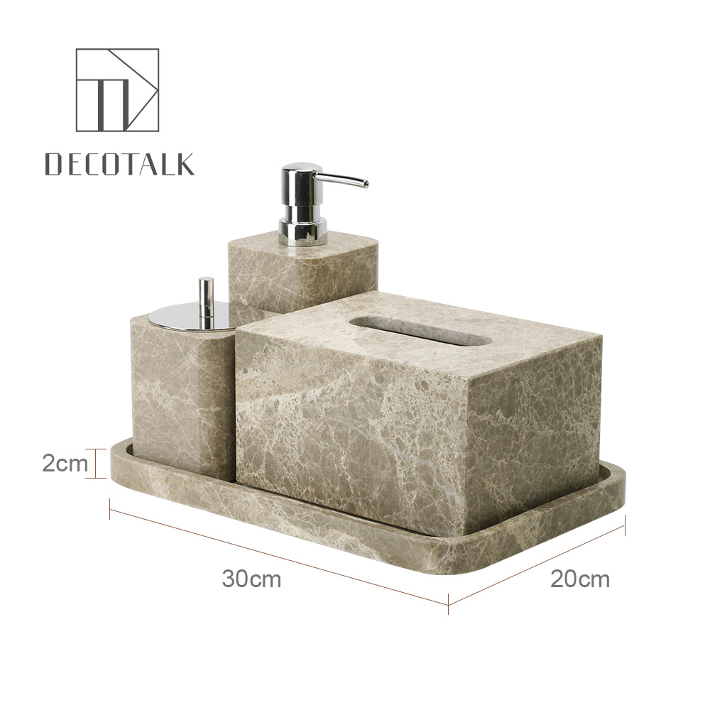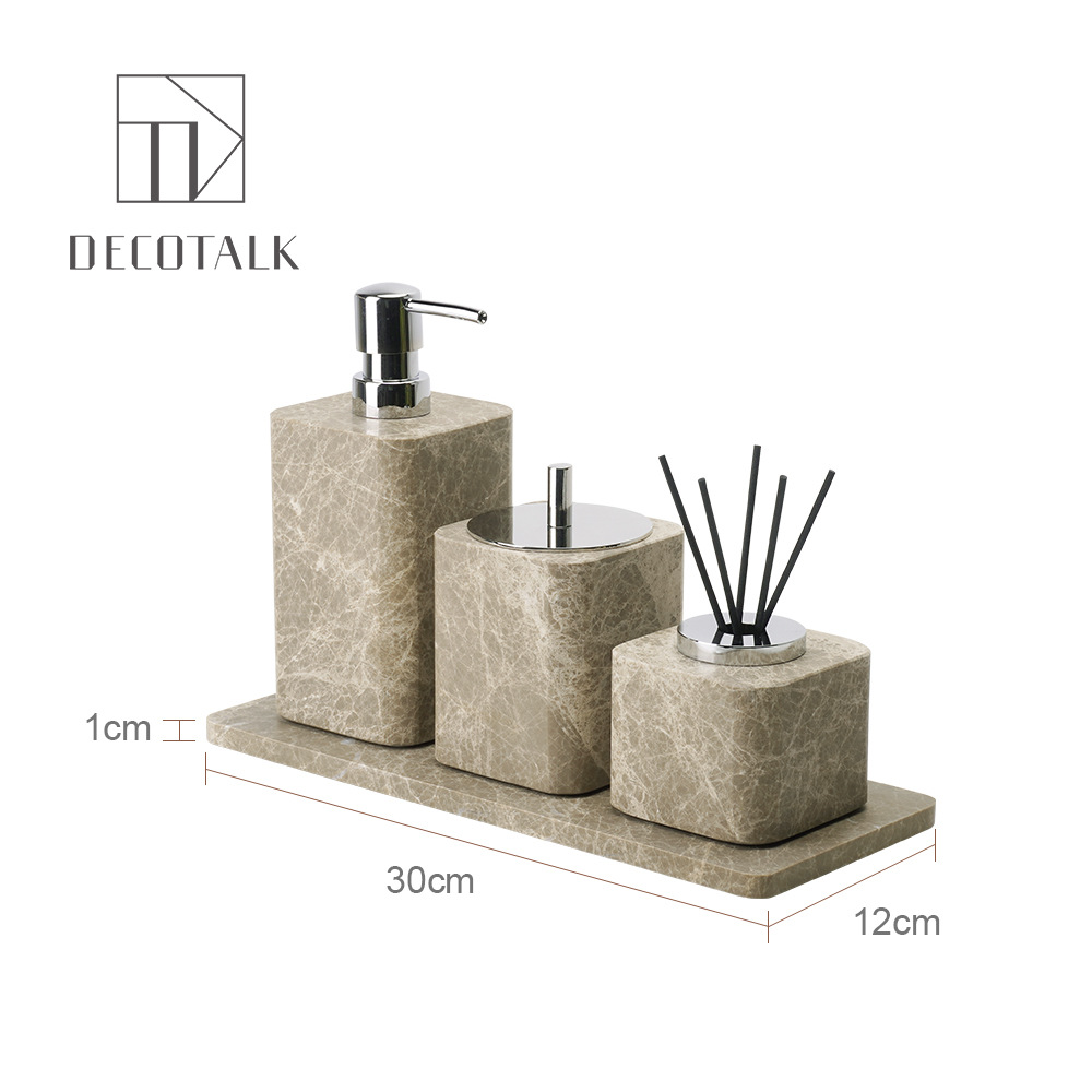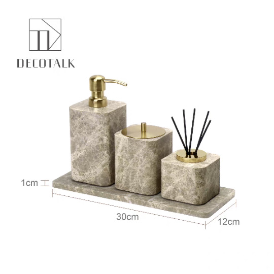 데코톡 오리지널 디자인 천연 대리석 욕실 워시 키트 매트 실크 스타일 아로마 테라피 병 티슈 박스