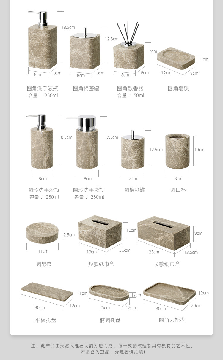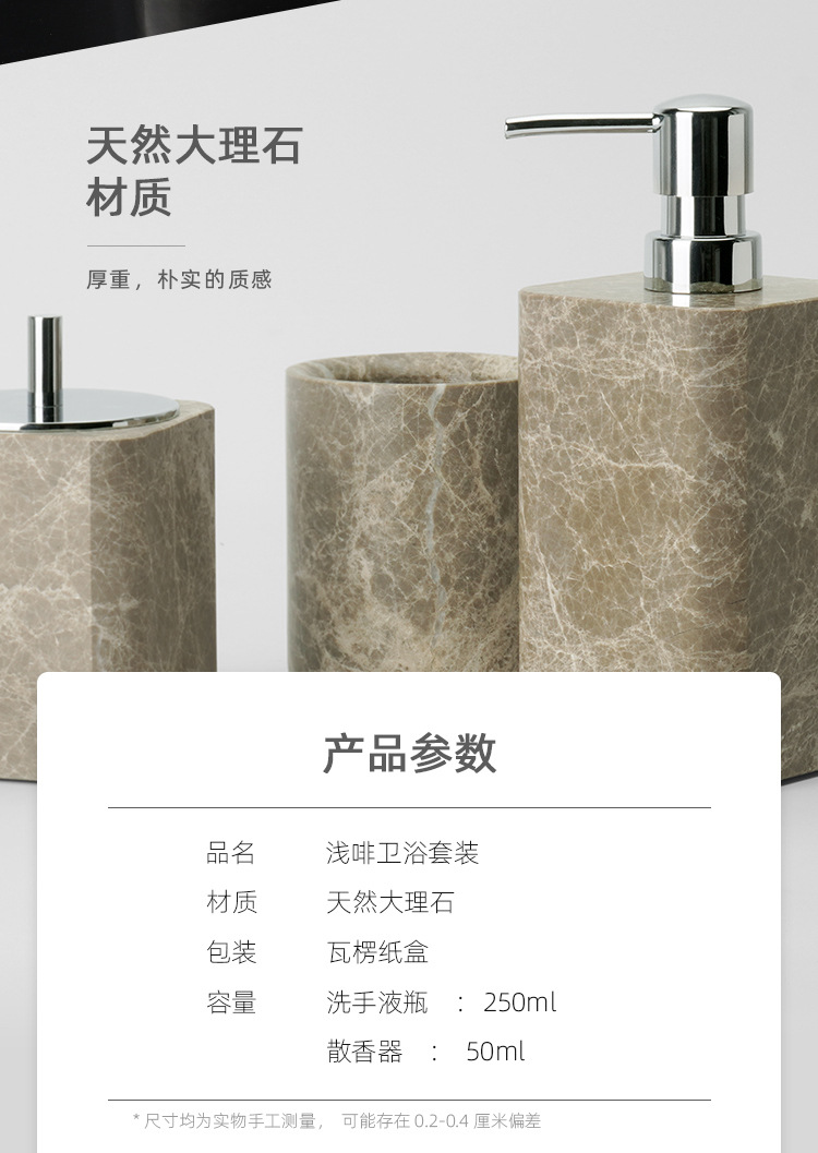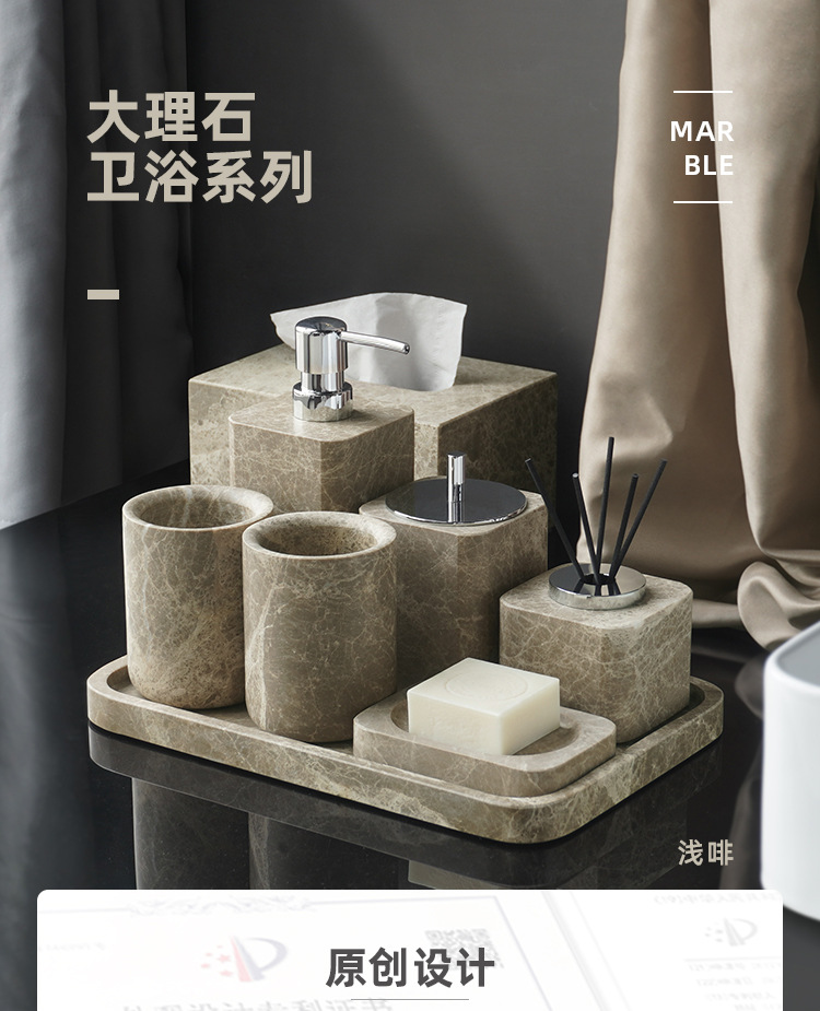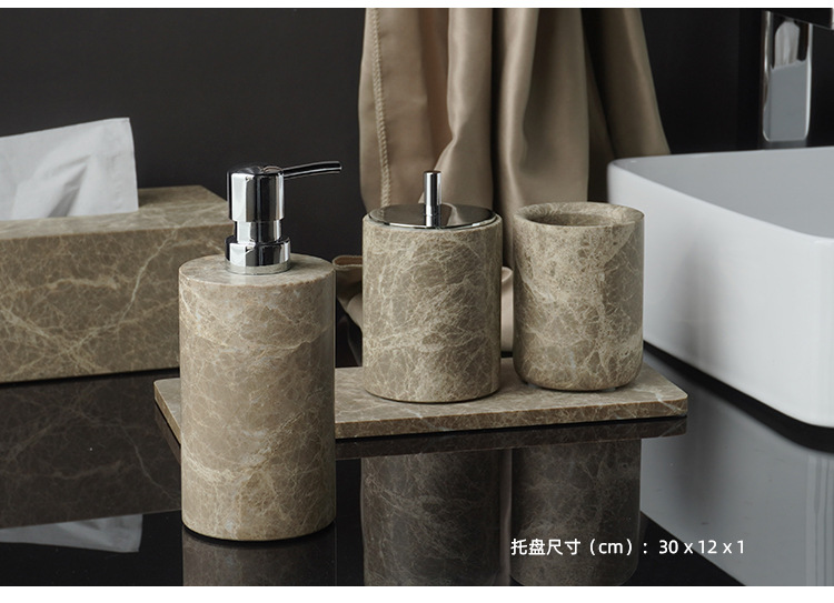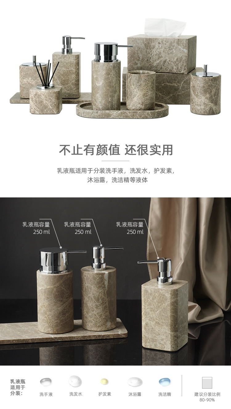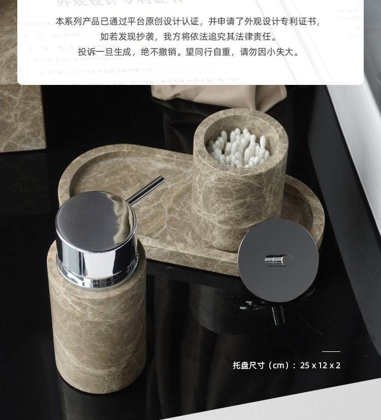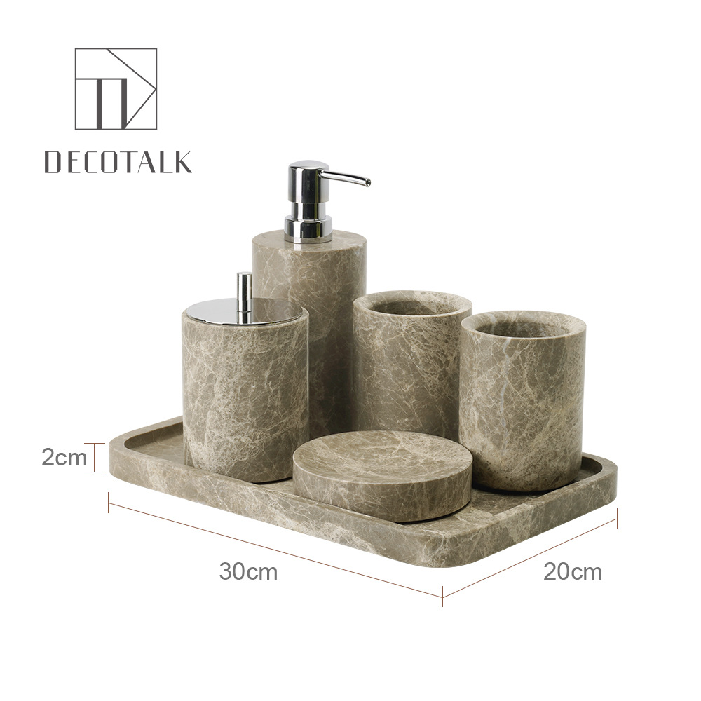 데코톡 오리지널 디자인 천연 대리석 욕실 워시 키트 매트 실크 스타일 아로마 테라피 병 티슈 박스