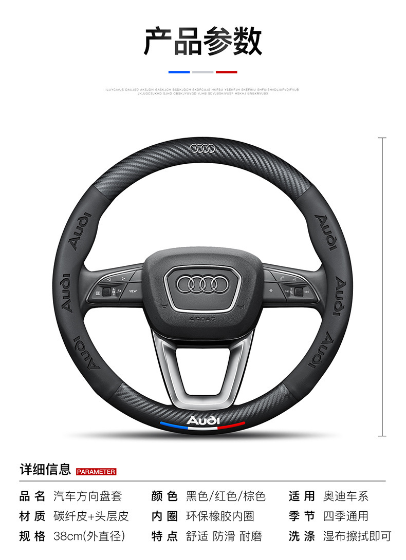 탄소 섬유 양각 자동차 로고 스티어링 휠 커버 가죽 핸들 바 커버 3D 양각 로고 로고 가죽 스티어링 휠 커버 도매