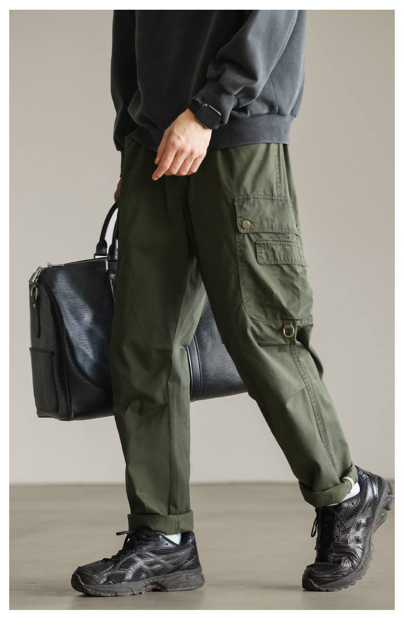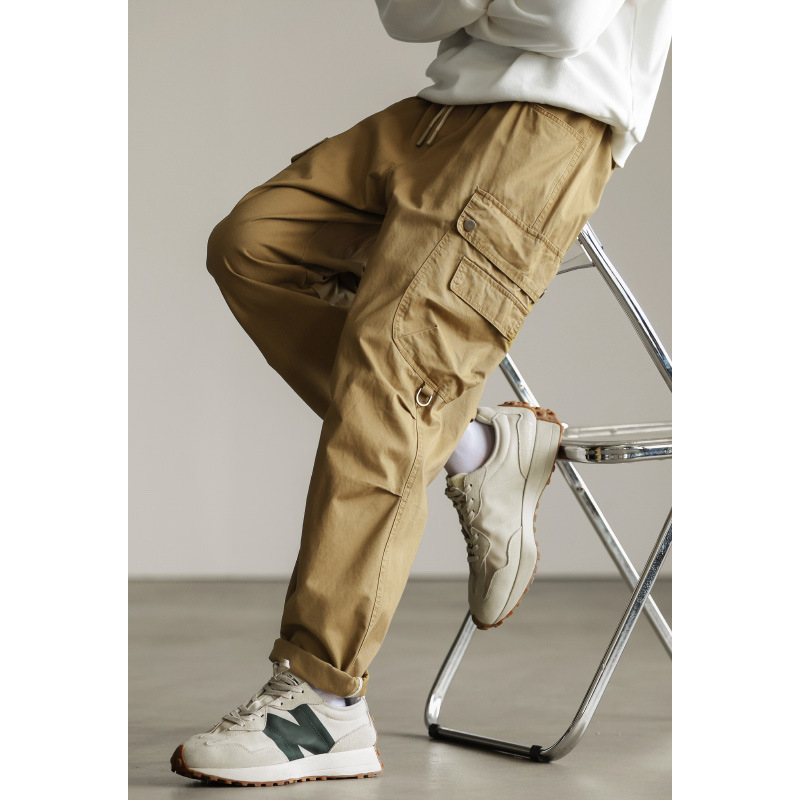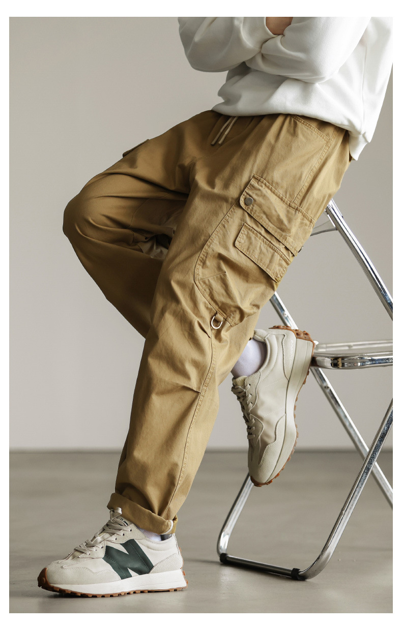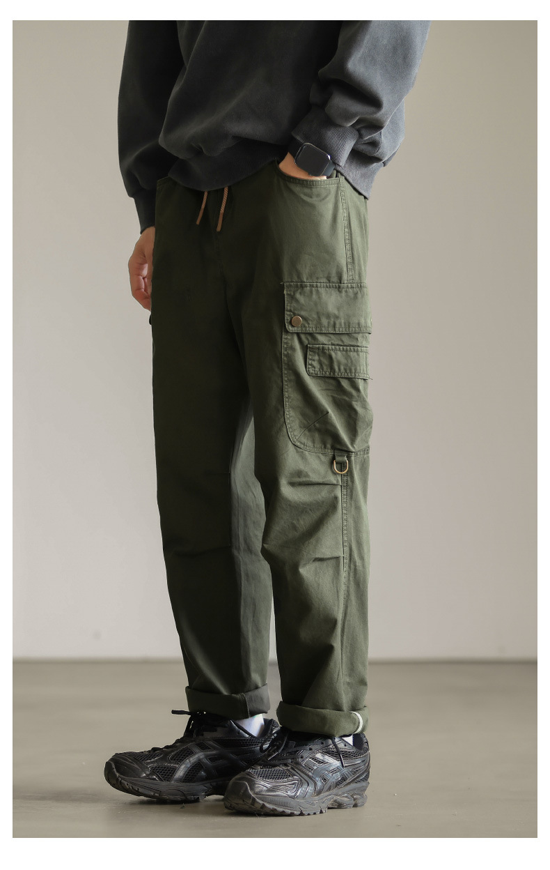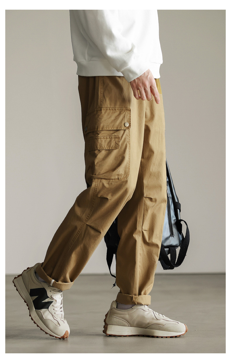 무거운 세탁물 산 야외 카키 바지 남자의 2024 가을 새로운 느슨한 캐주얼 바지스토어 가기