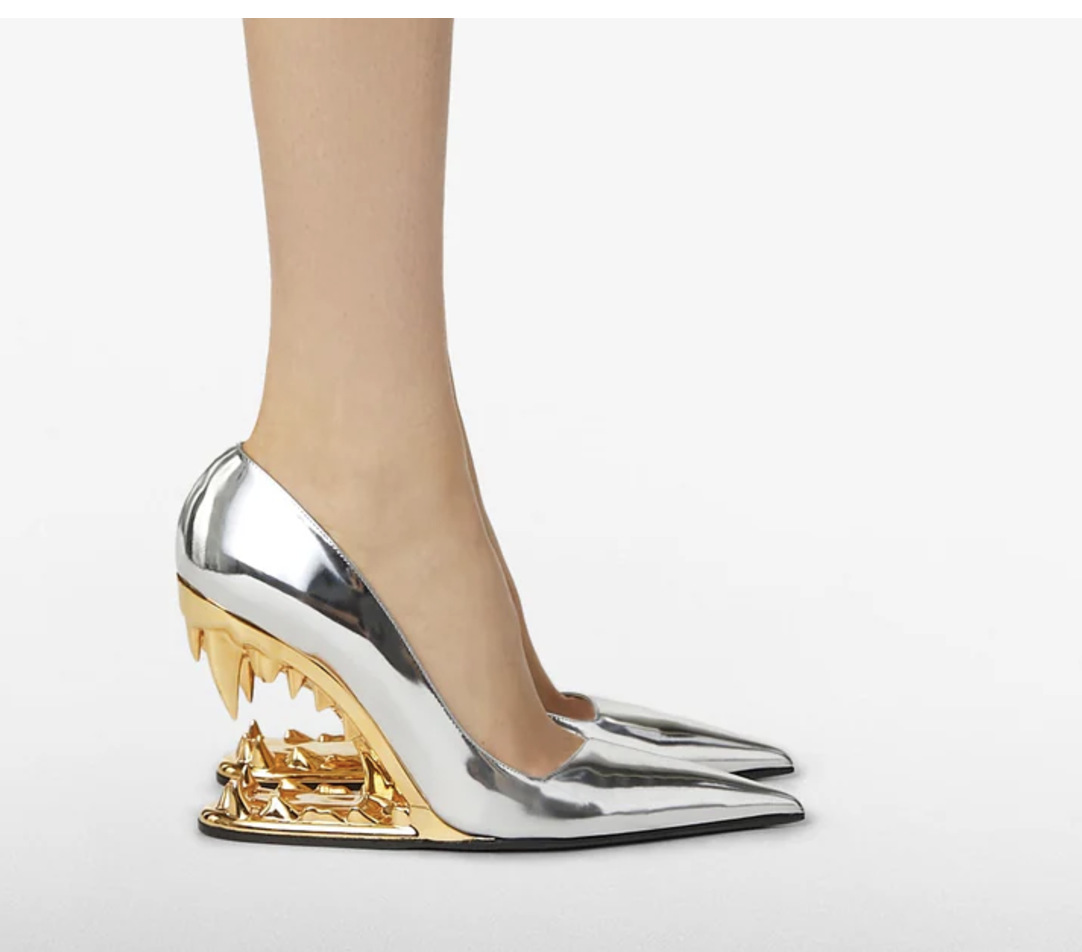 25 대외 무역 새로운 포인팅 바오 터우 원 페달 금속 치아 하이힐 패션 싱글 레이어 신발 모양의 플러스 사이즈 여성용 신발